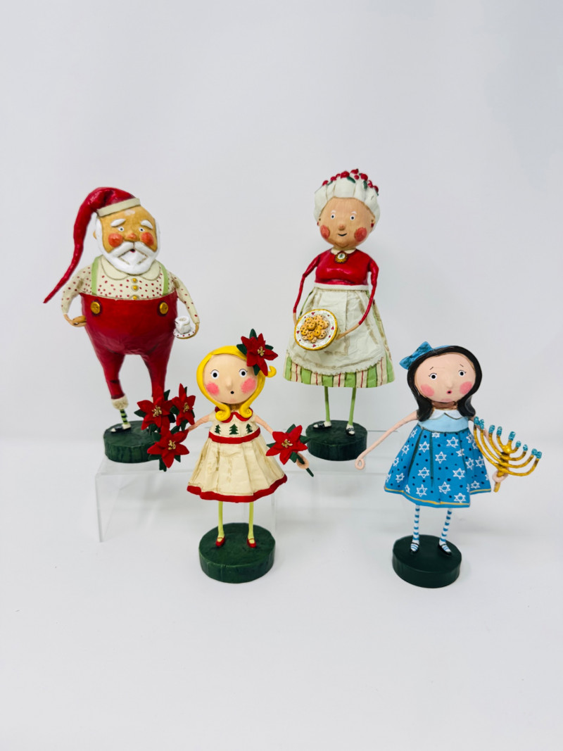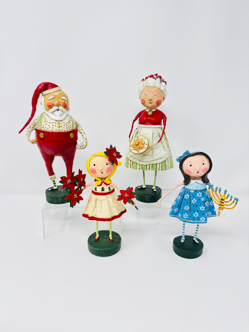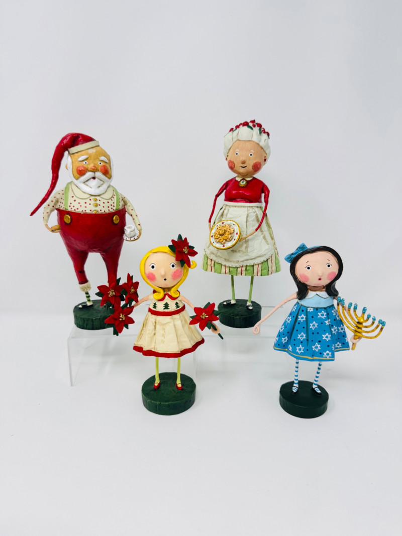 Lori Mitchell Holiday Figures – Santa, Mrs. Claus, Poinsettia, Menorah.