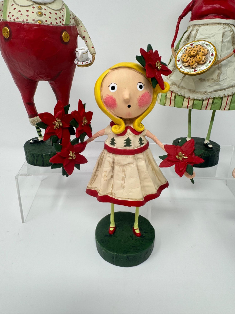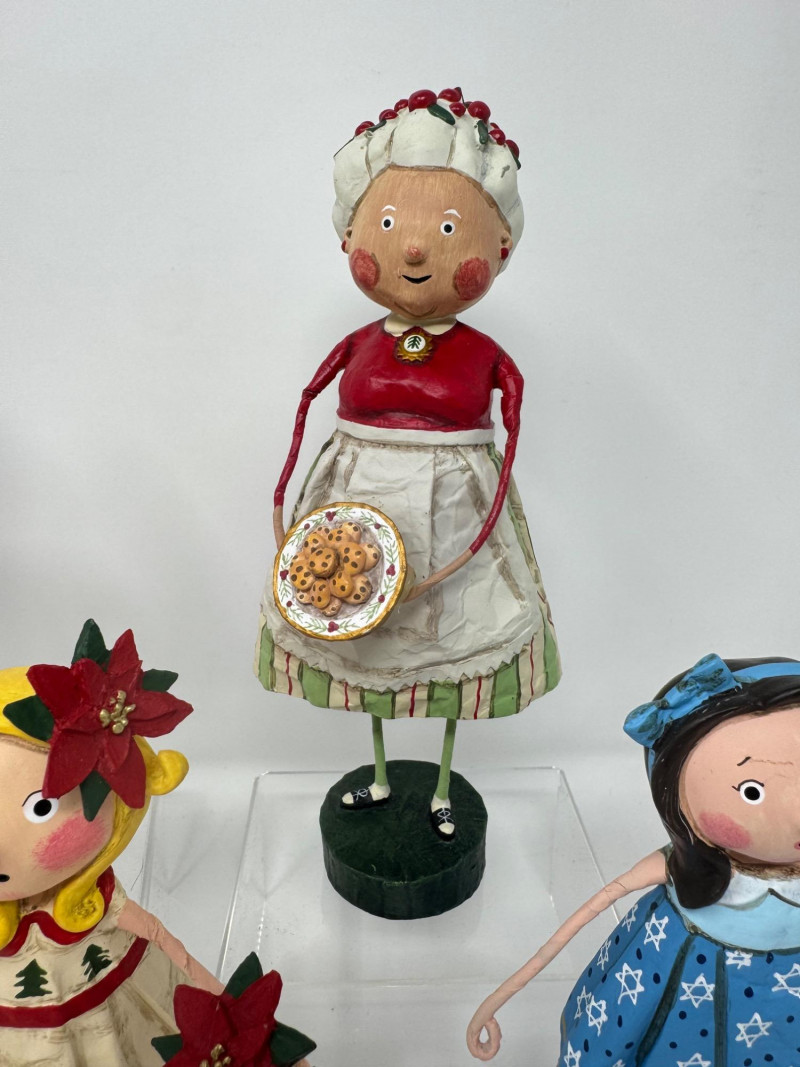 Lot # 51 - Lori Mitchell Holiday Figures – Santa, Mrs. Claus, Poinsettia, Menorah
