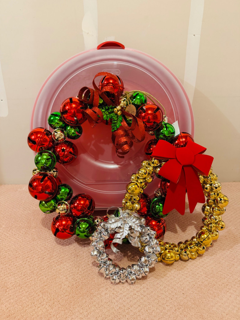 Molbak’s “Let It Jingle” Wreath + 2 Gold & Silver Bell Wreaths.