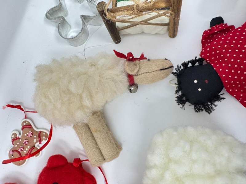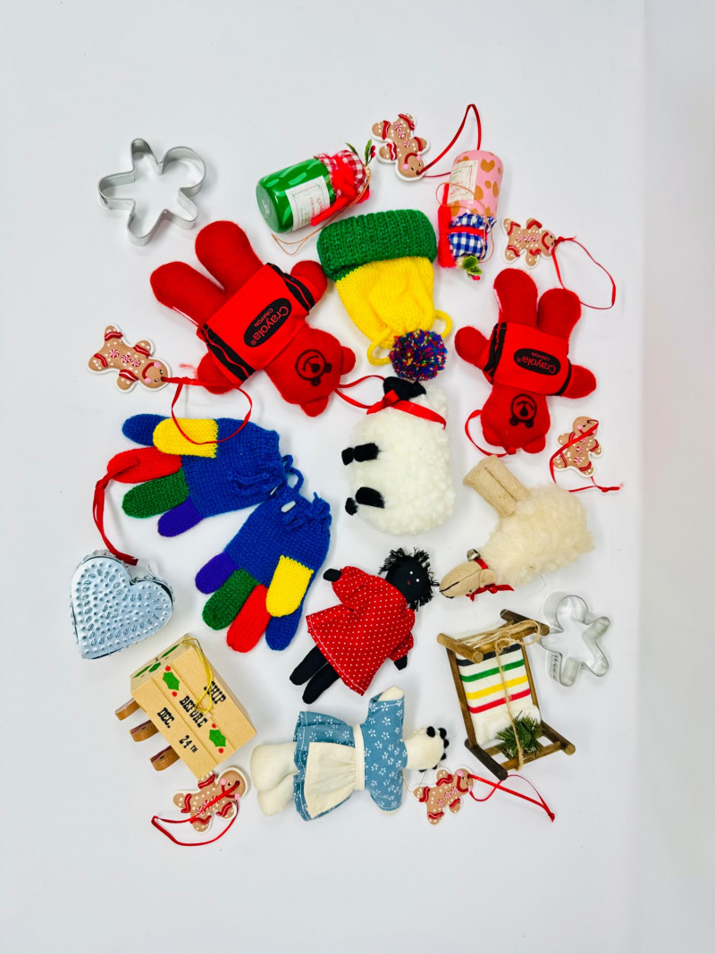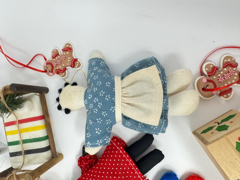 Lot # 55 - Vintage Christmas Ornaments – Mittens, Fabric Dolls, Felted Animals