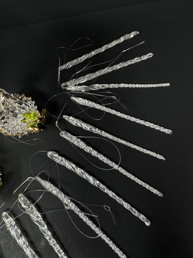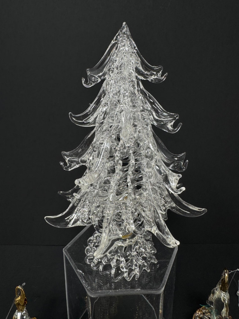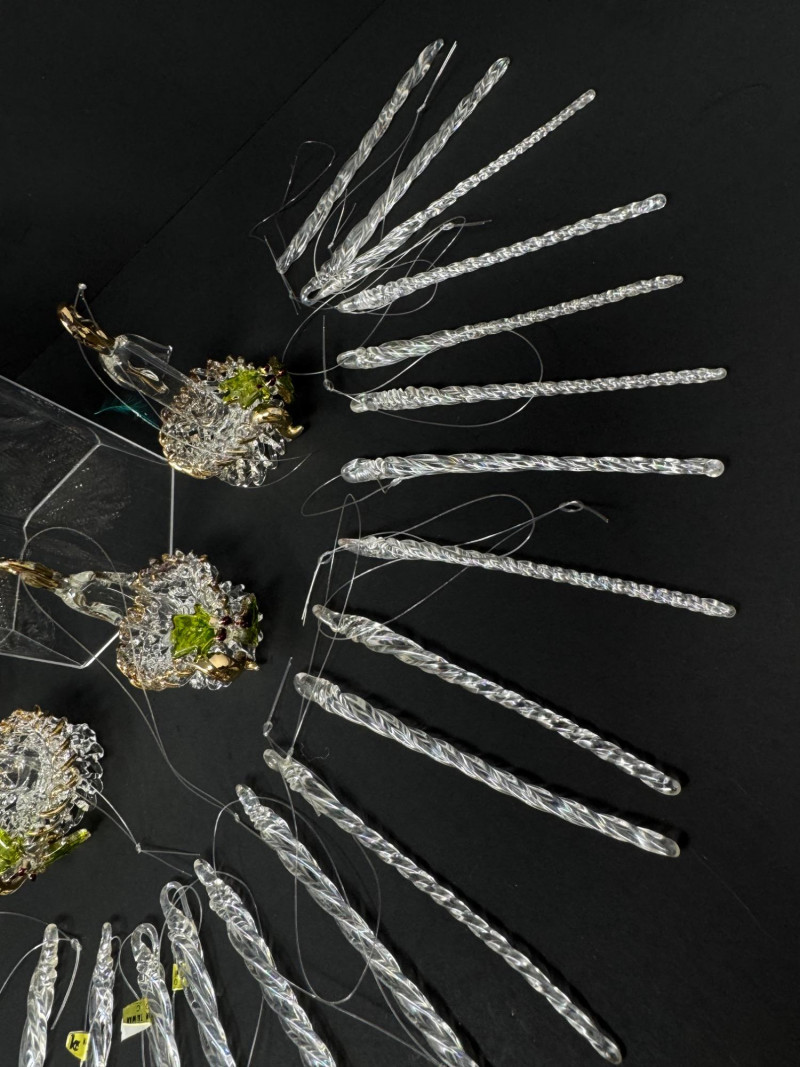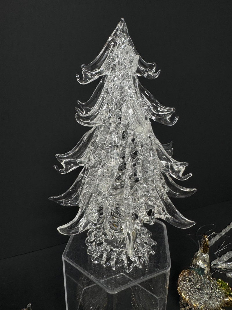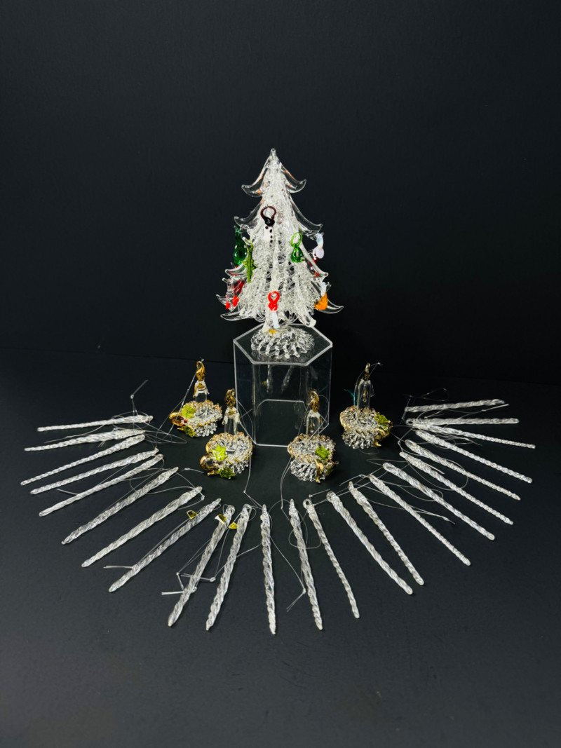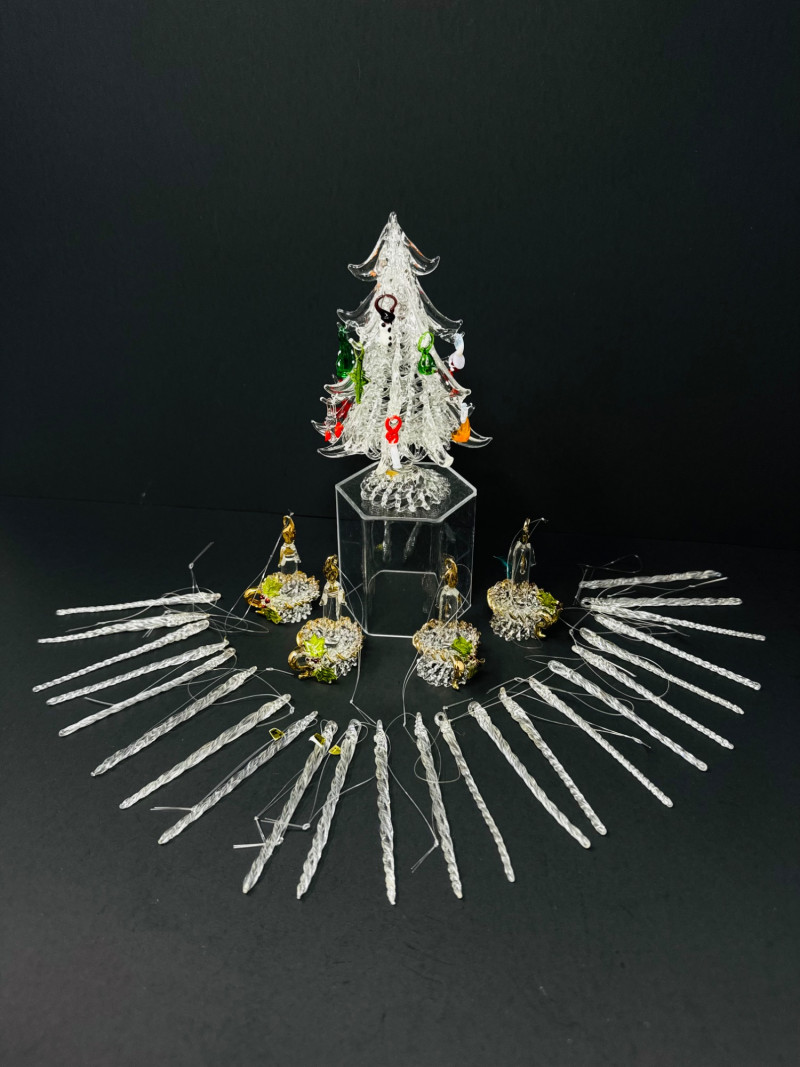 Blown Glass Tree w/ Mini Ornaments, Icicles & Decorative Glass Rings.