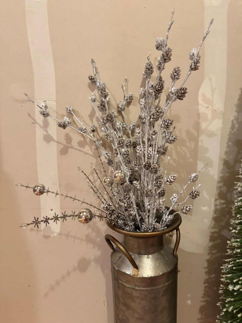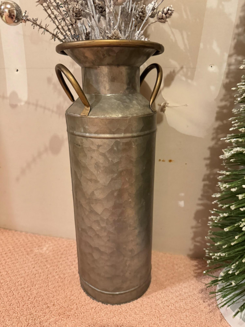Tall Metal Vase with frosted pine branches