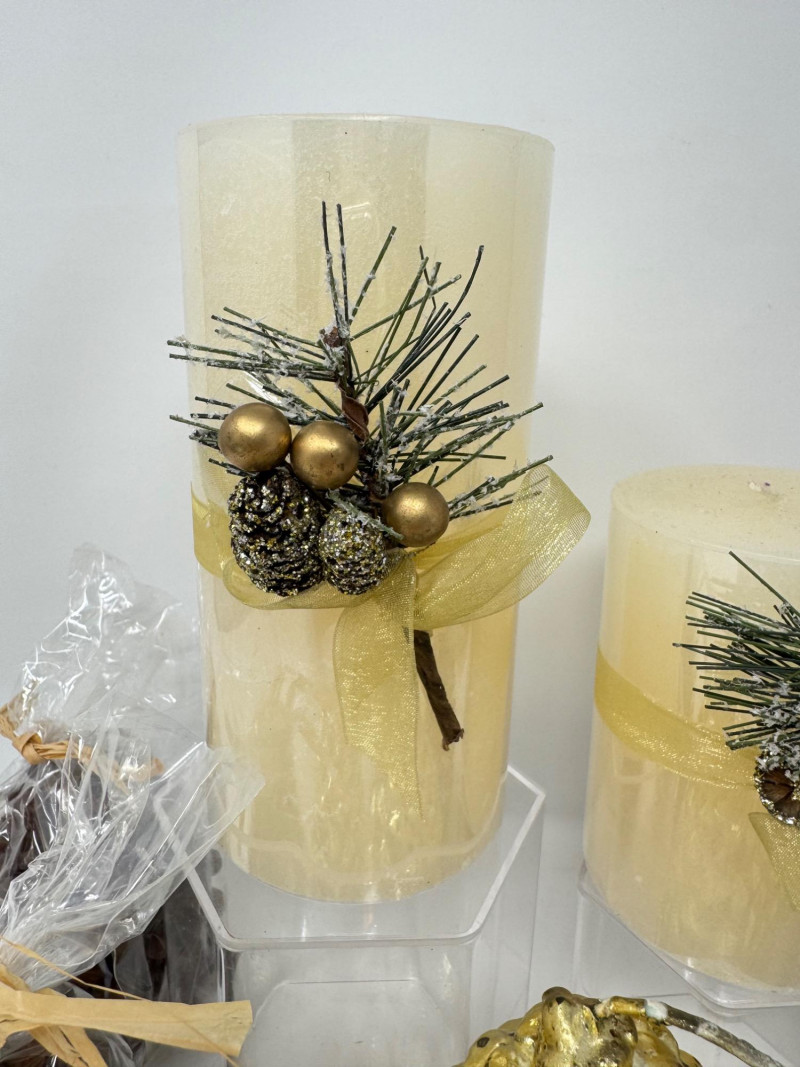 Lot # 69 - Pinecone & Pillar Candles Holiday Set – Molbak’s, Italy, & More