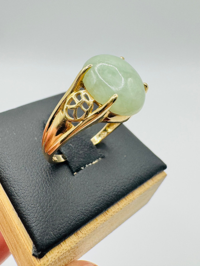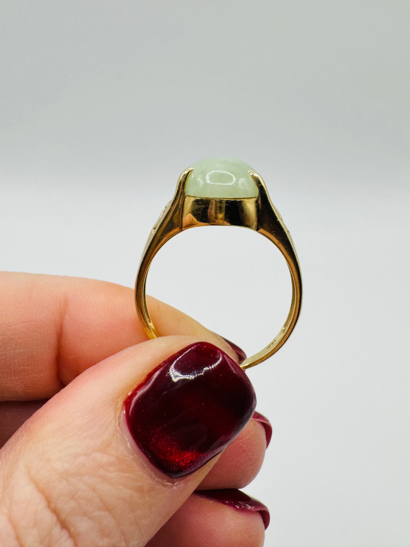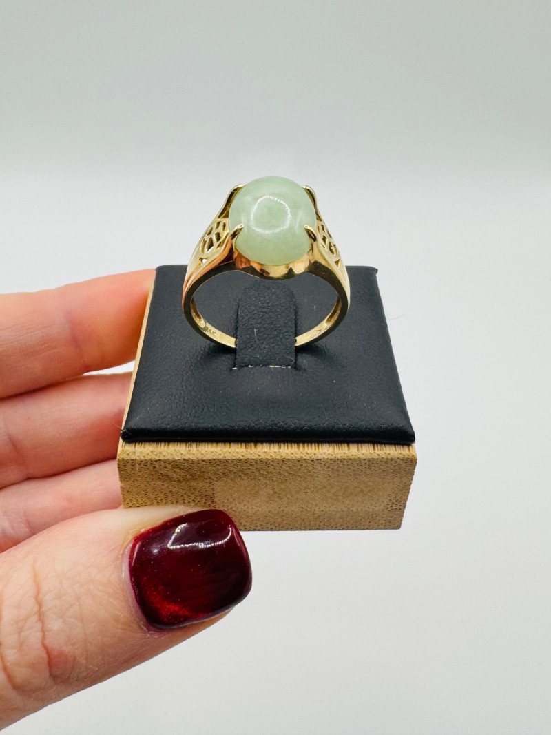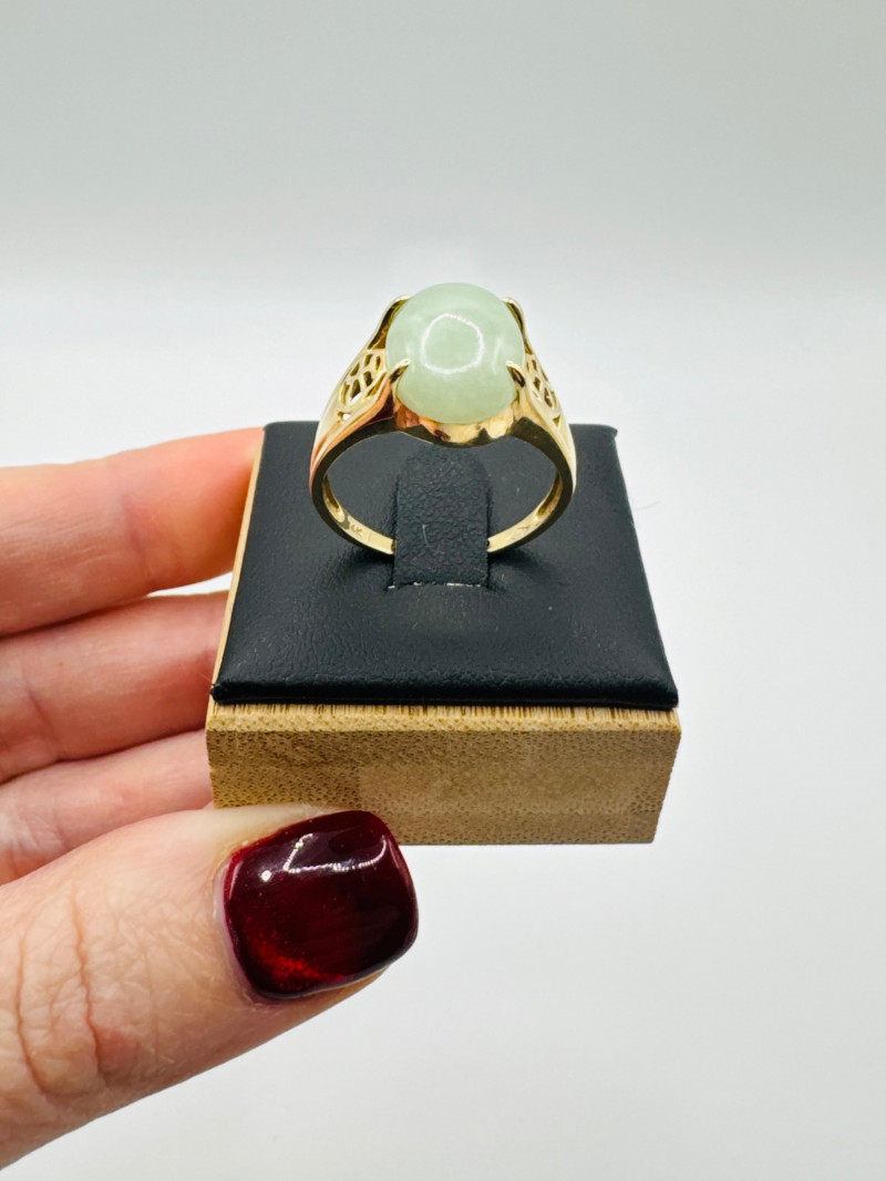 14K Gold Ring w/ Light Green Polished Stone, Sz 9 – 4.06g.