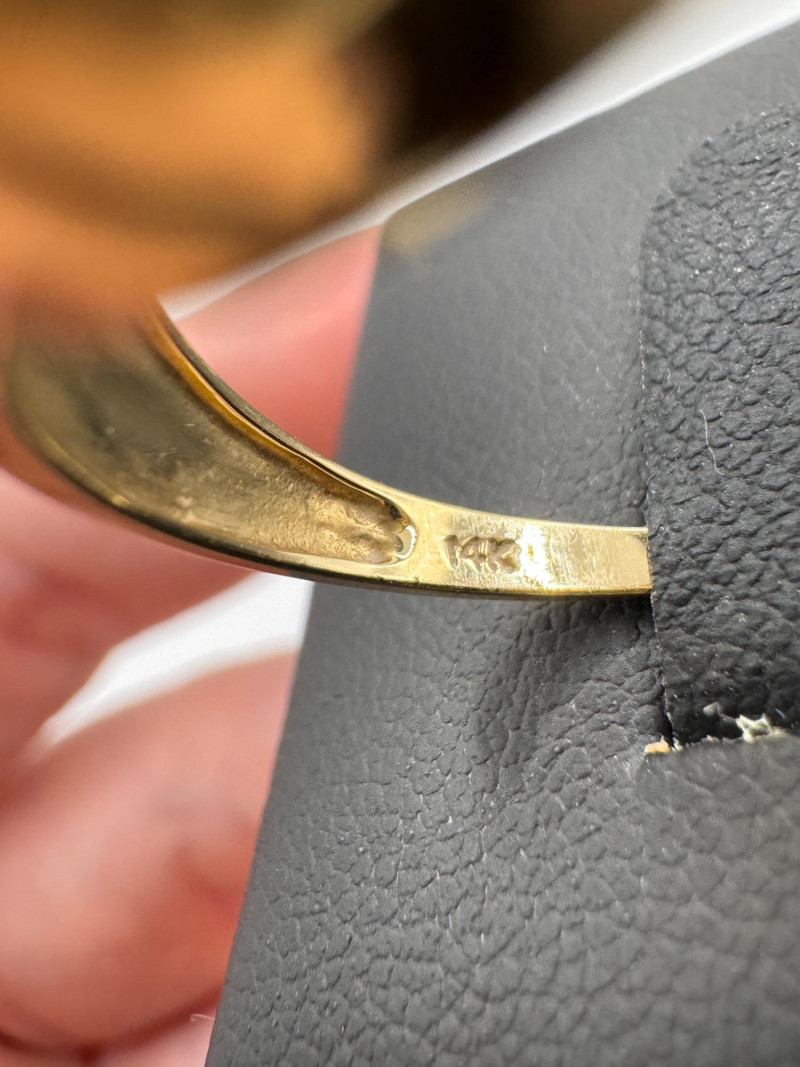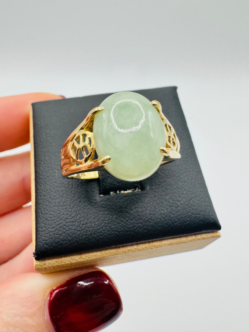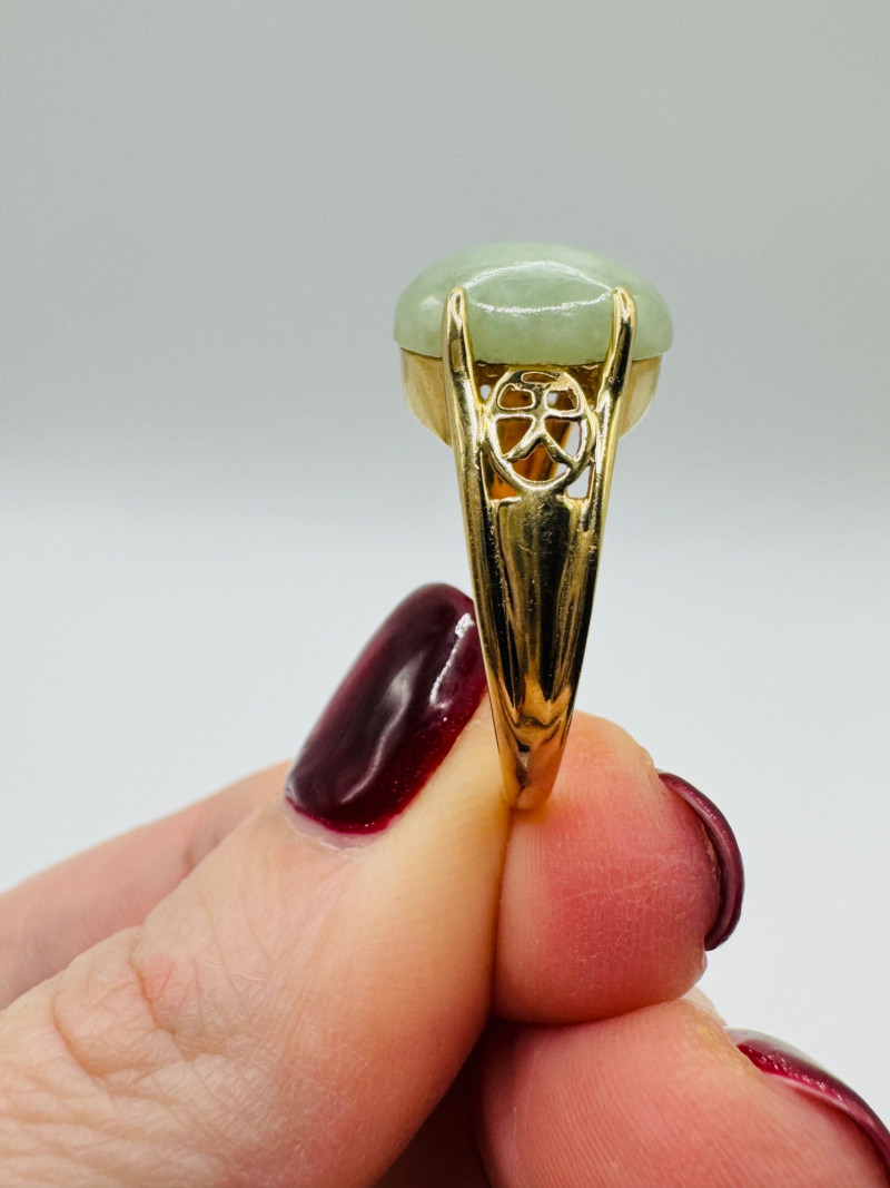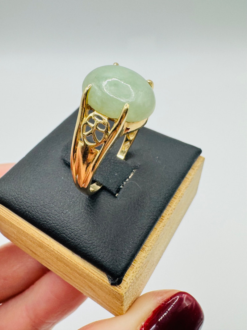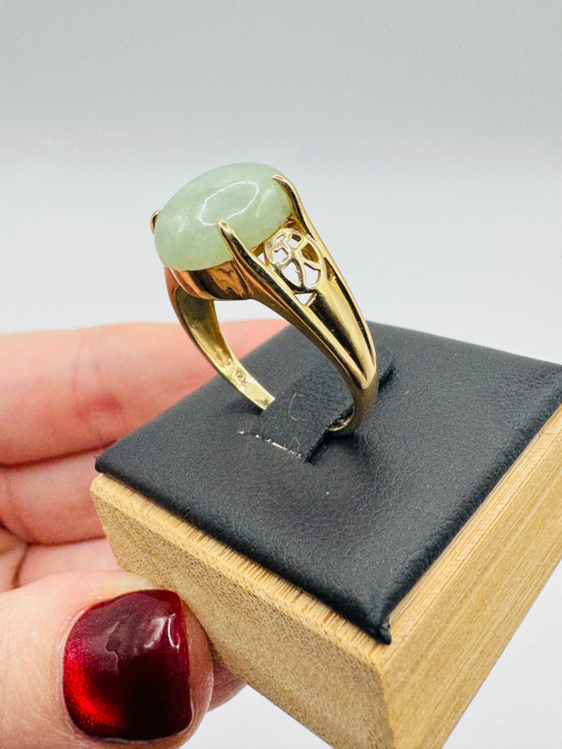 14K Gold Ring w/ Light Green Polished Stone, Sz 9 – 4.06g.