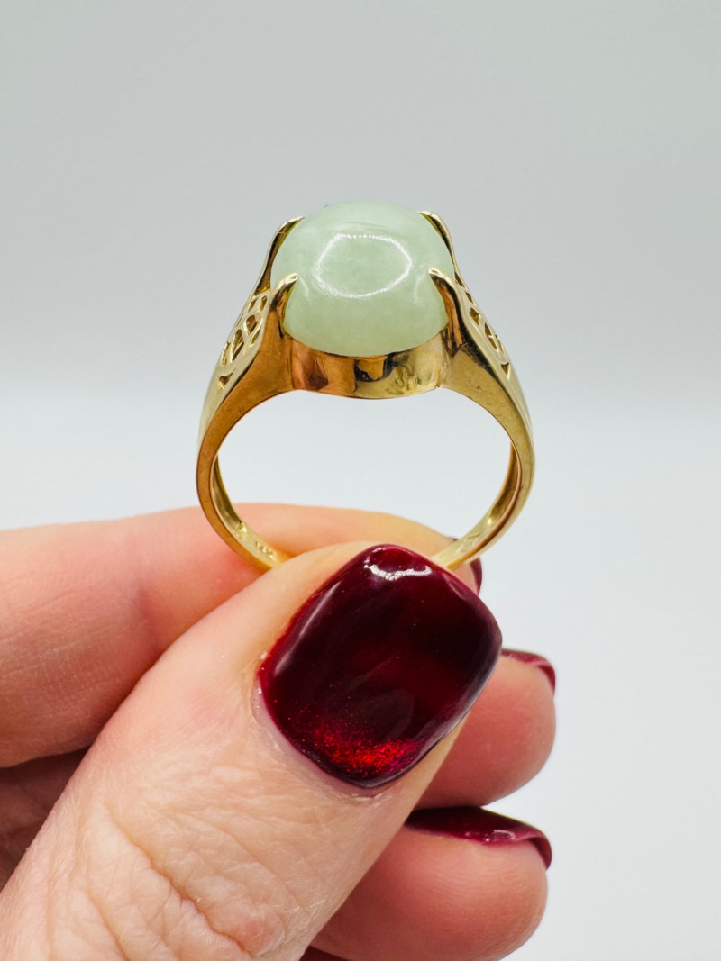 Lot # 7 - 14K Gold Ring w/ Light Green Polished Stone, Sz 9 – 4.06g
