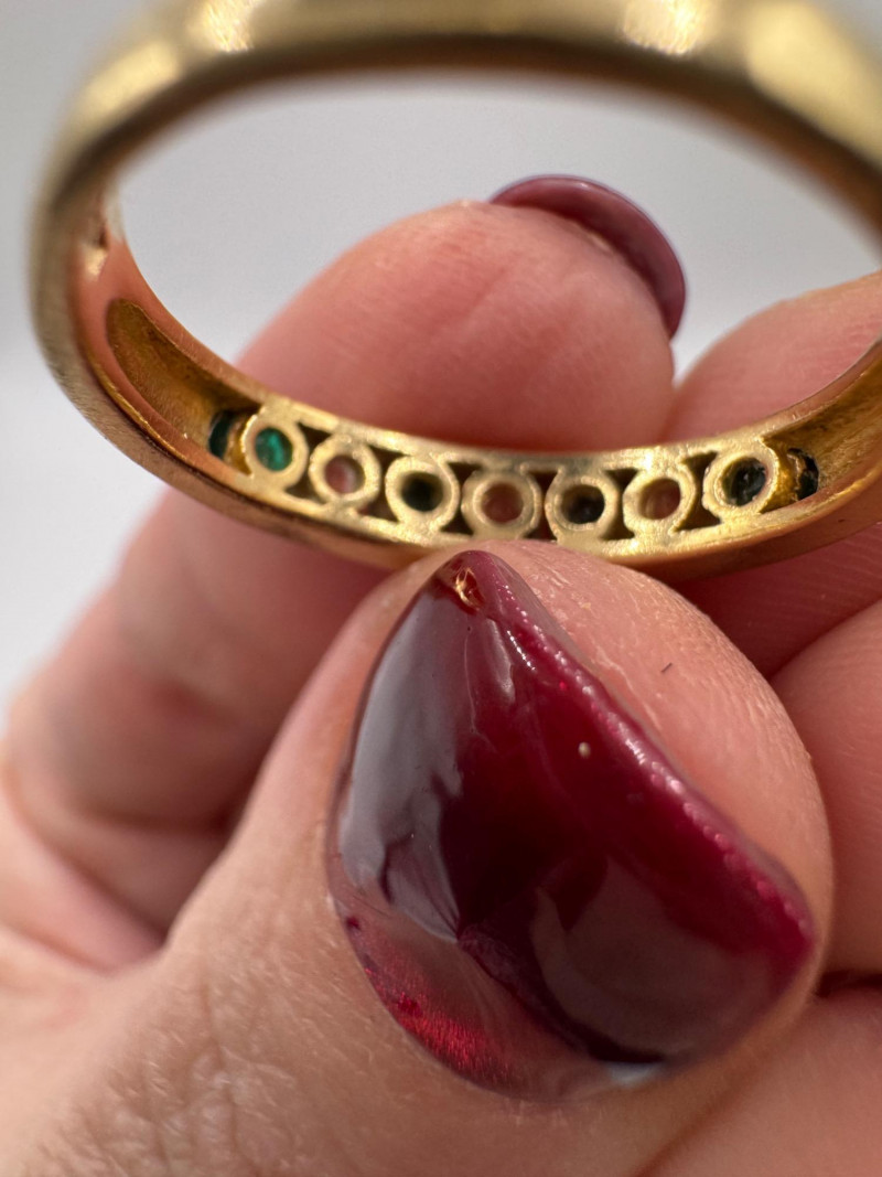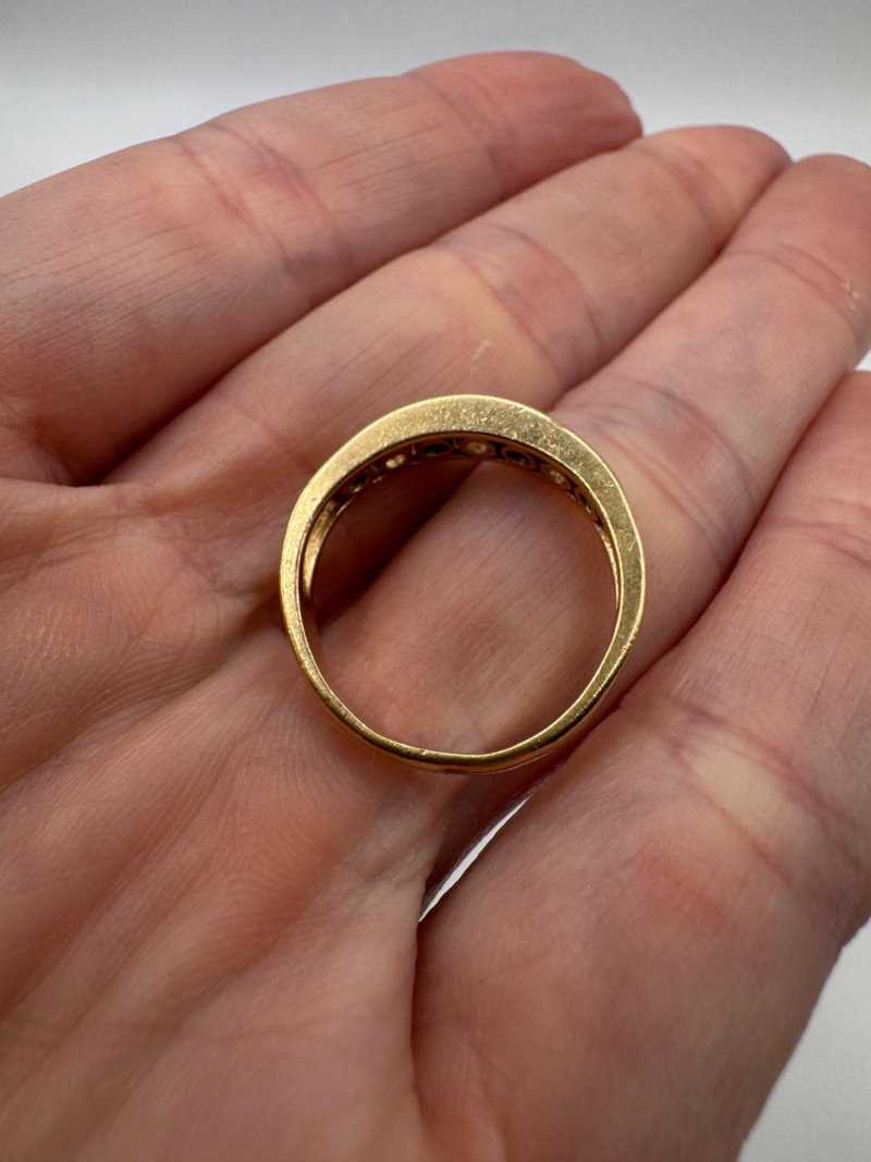 Lot # 8 - 14K Gold Band Ring w/ Green & Clear Stones, Sz 6.5 – 3g
