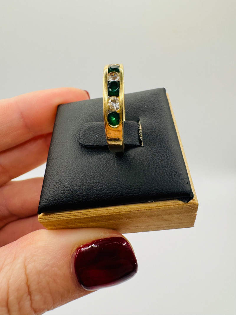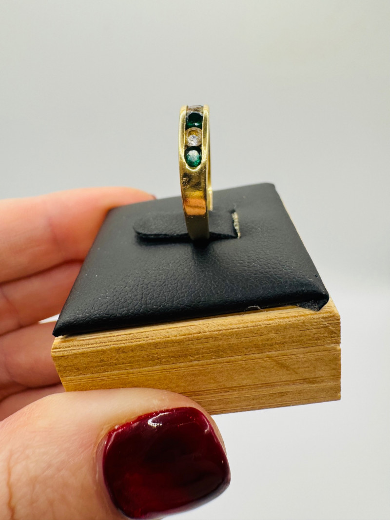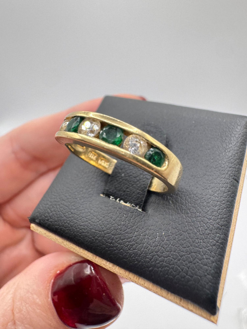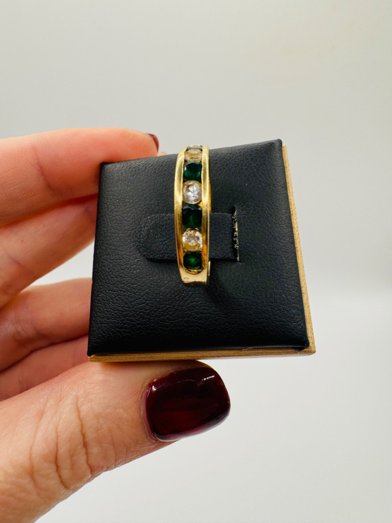 14K Gold Band Ring w/ Green & Clear Stones, Sz 6.5 – 3g.