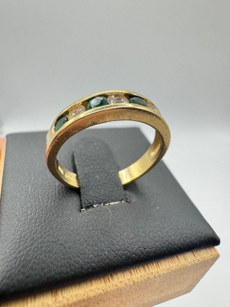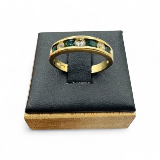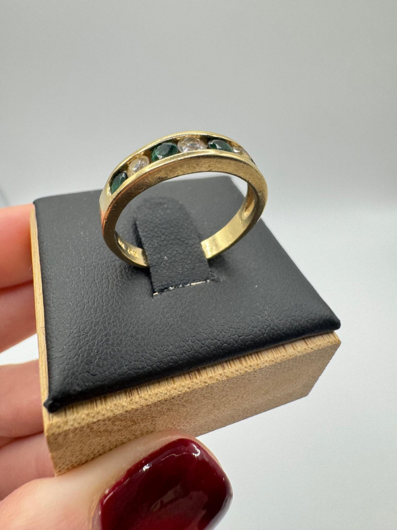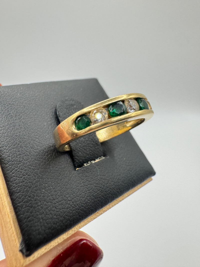 14K Gold Band Ring w/ Green & Clear Stones, Sz 6.5 – 3g.