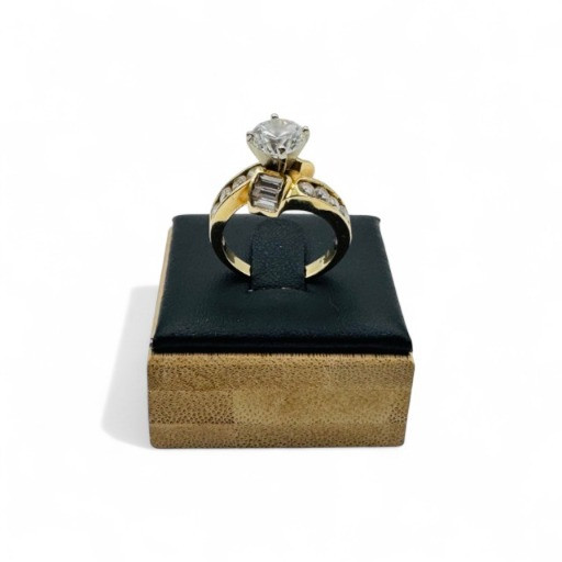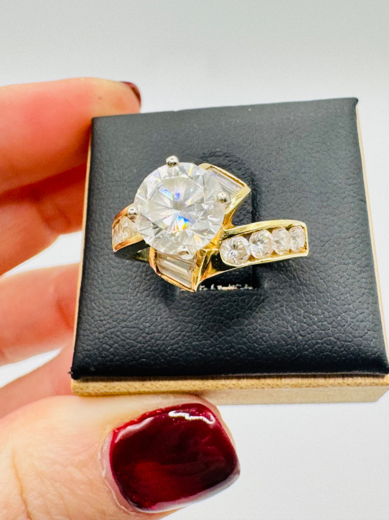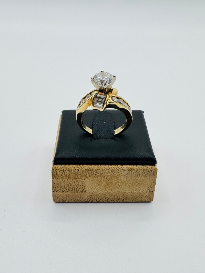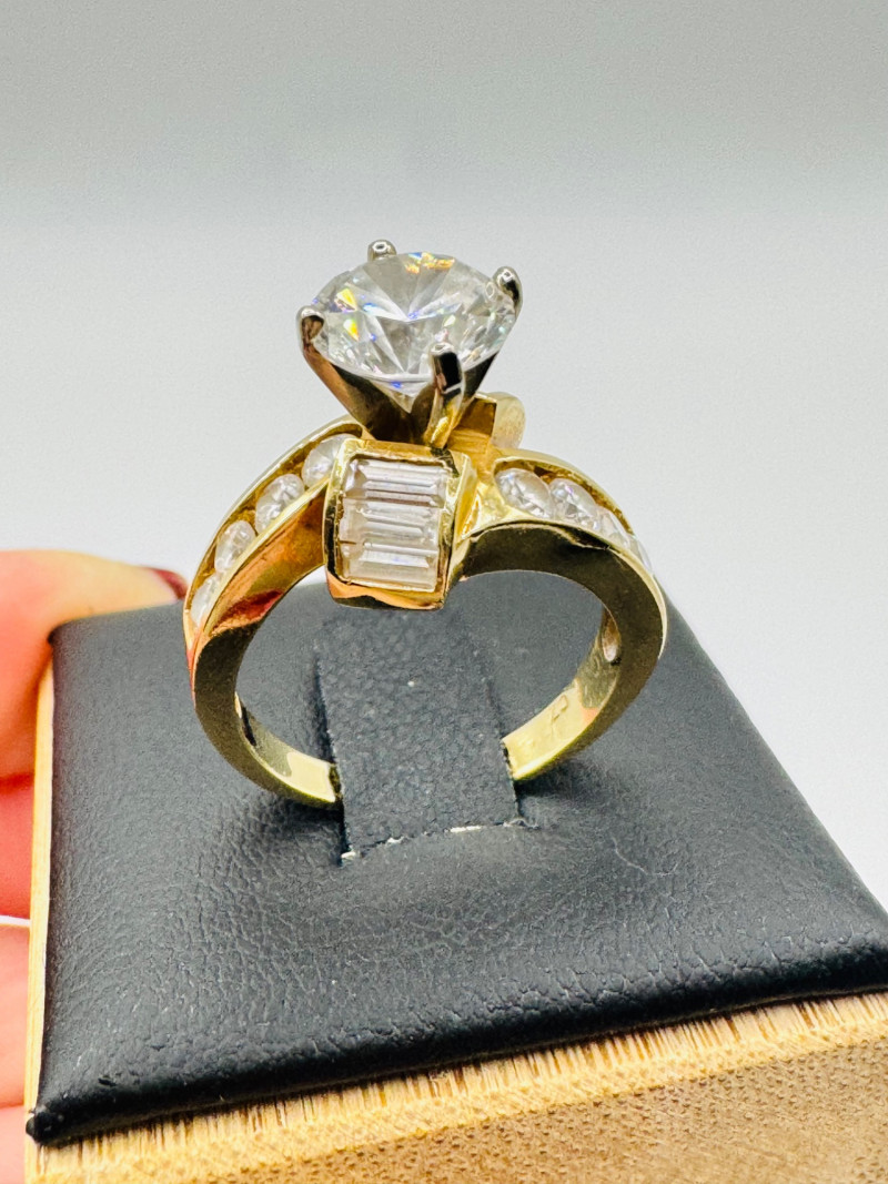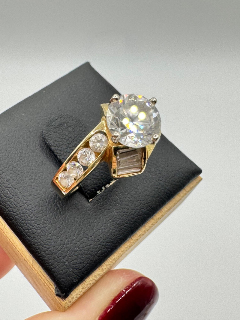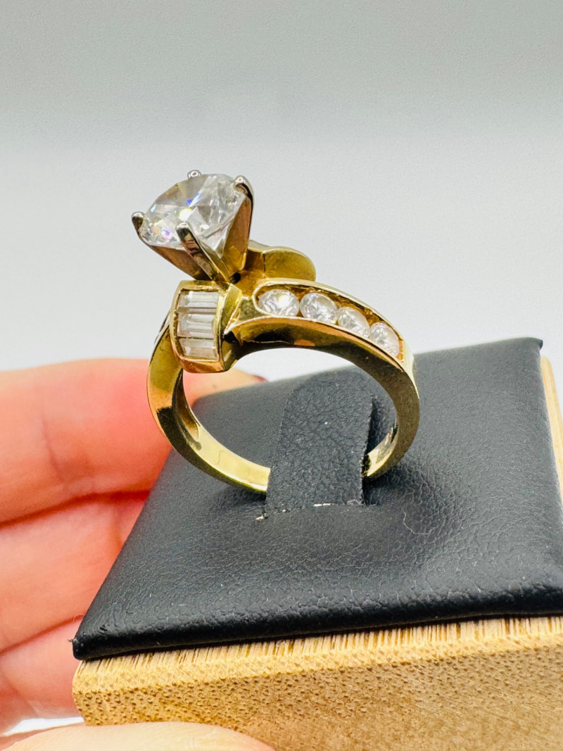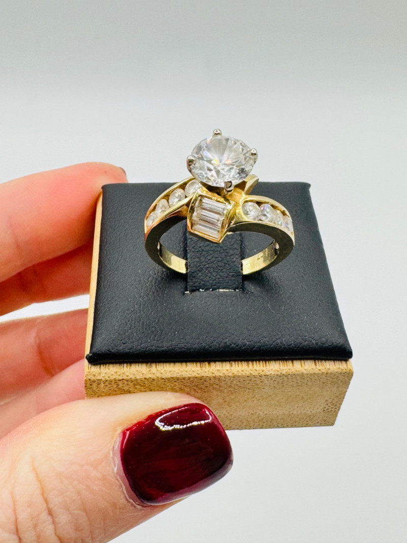 10K Gold Ring – Round & Baguette CZ Stones, 5.52g.