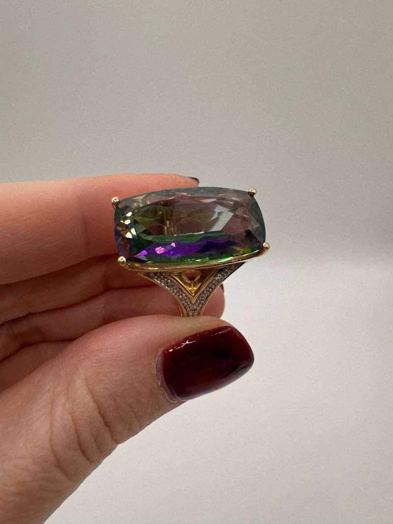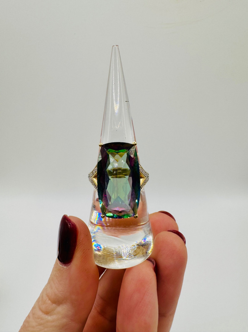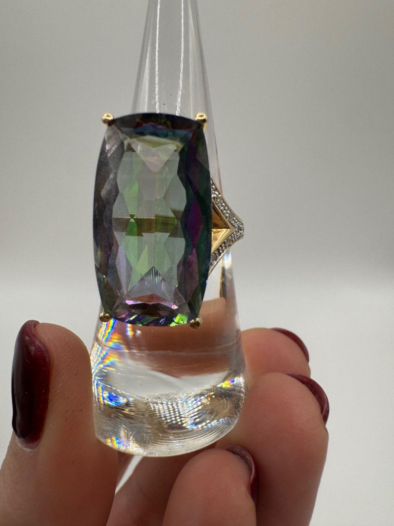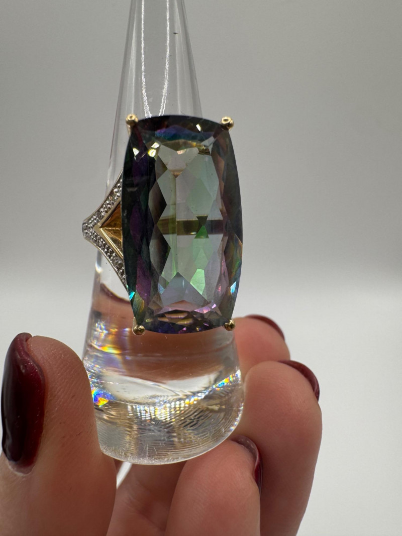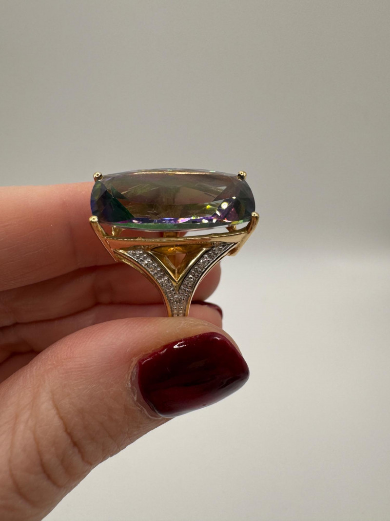 10K Gold Ring w/ Large Mystic Topaz & Diamond Accents – Size 7, 7.84g.