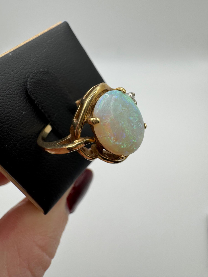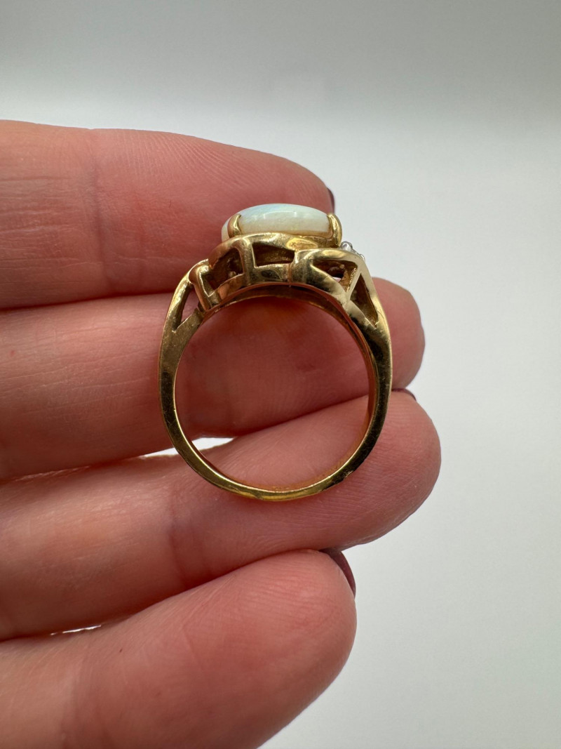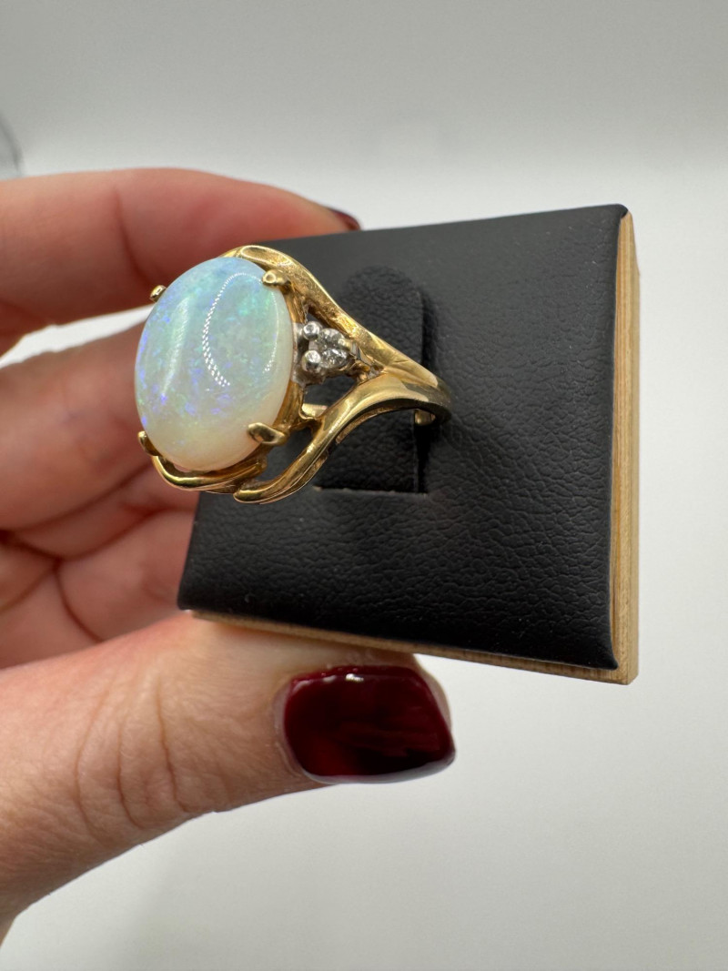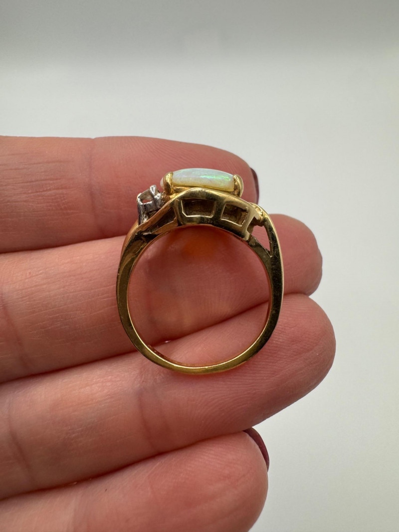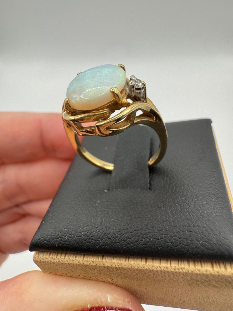 14K Gold Ring w/ Large Opal & Diamond Accent – Size 6, 4.5g.