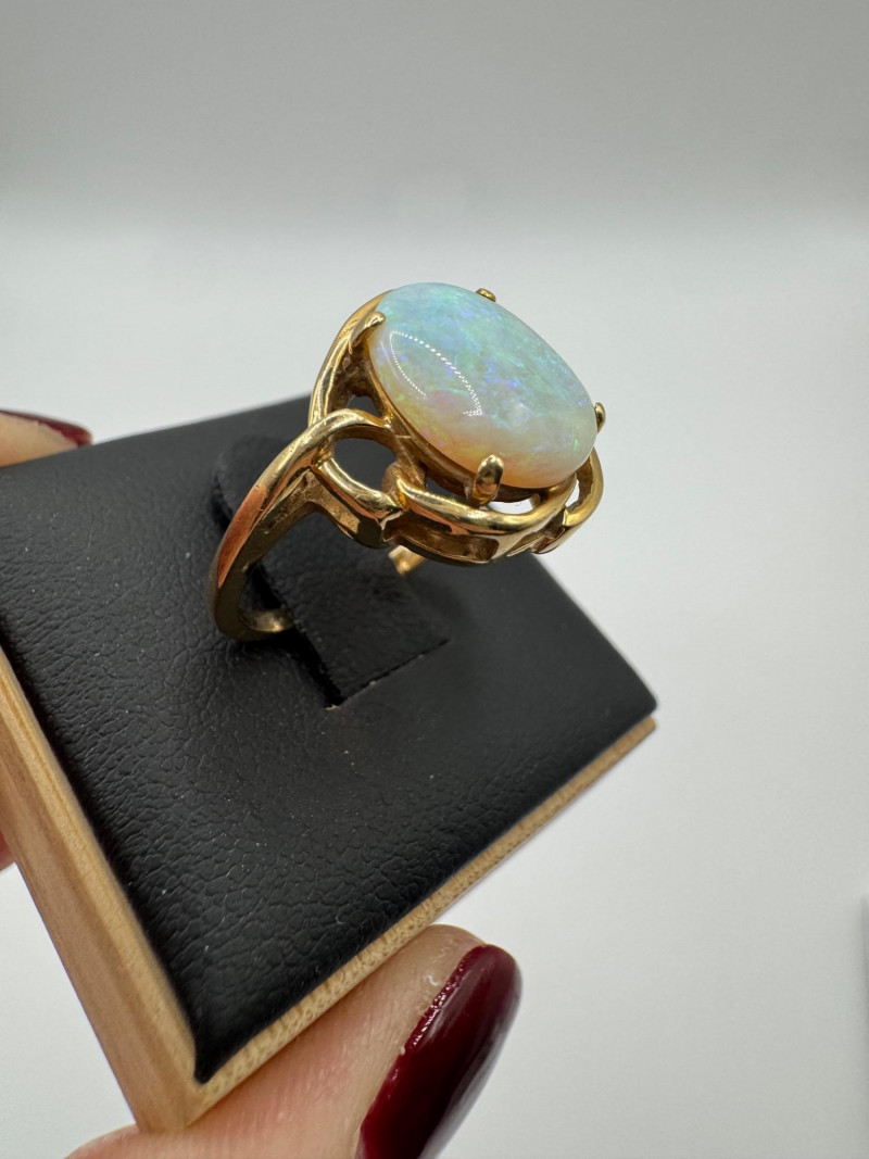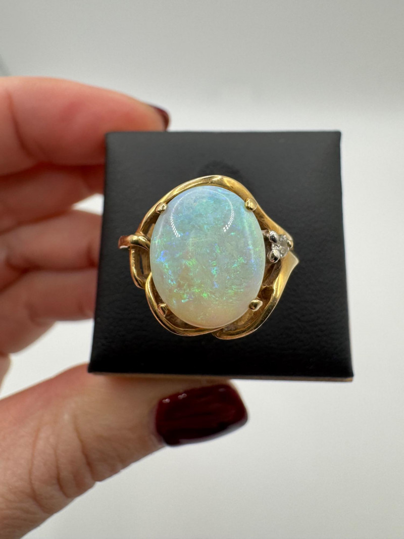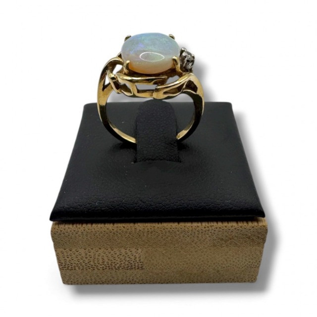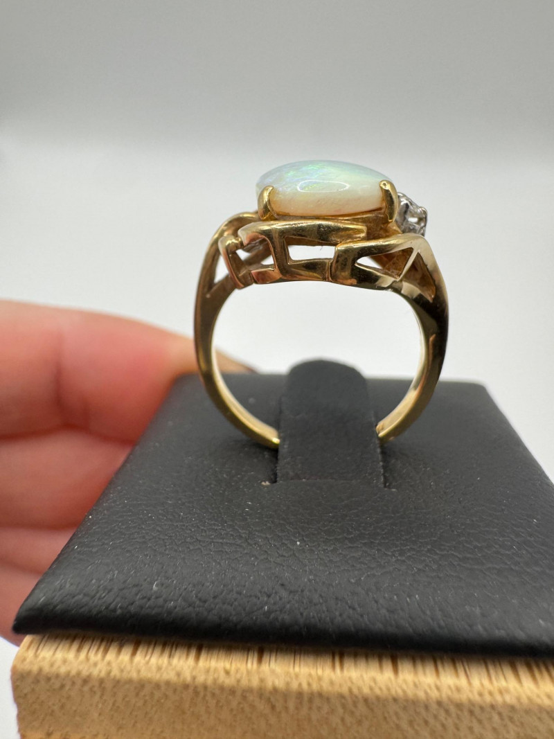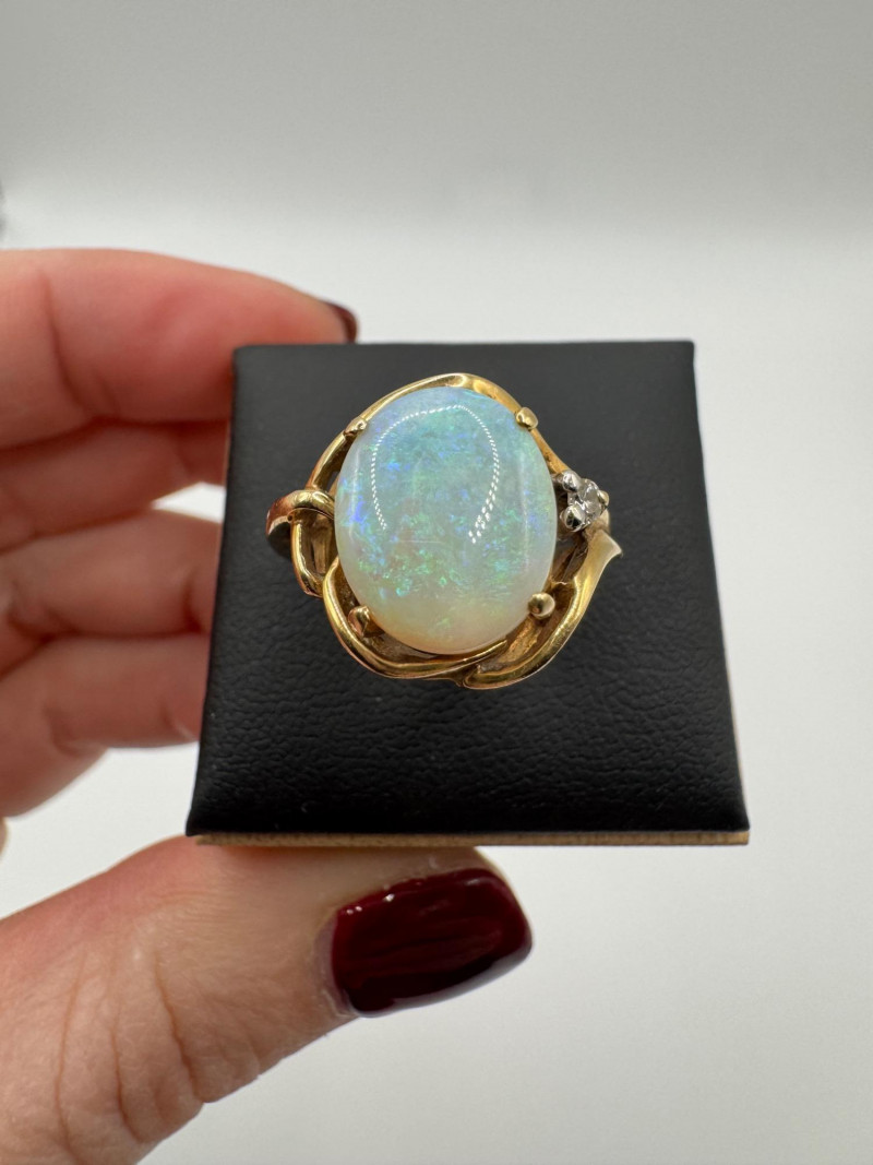 14K Gold Ring w/ Large Opal & Diamond Accent – Size 6, 4.5g.