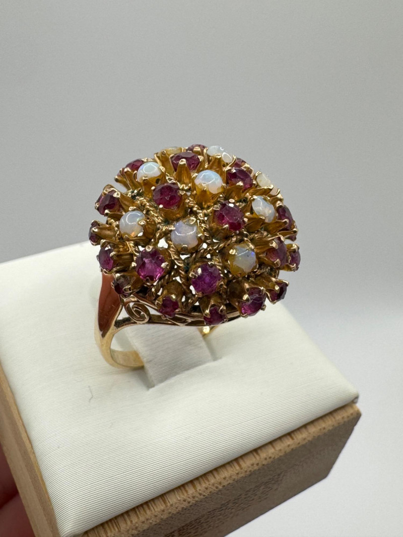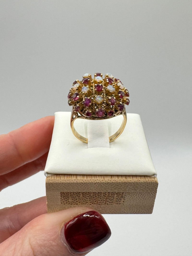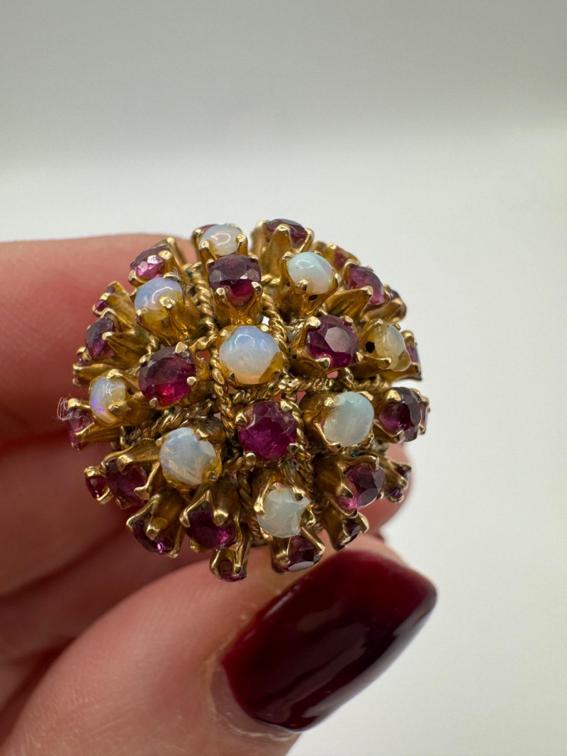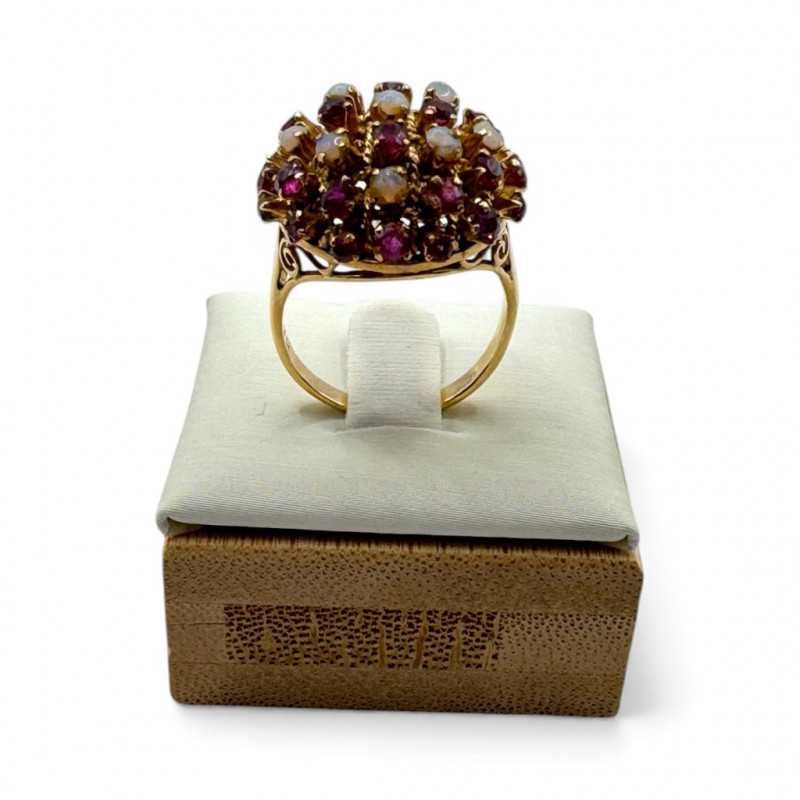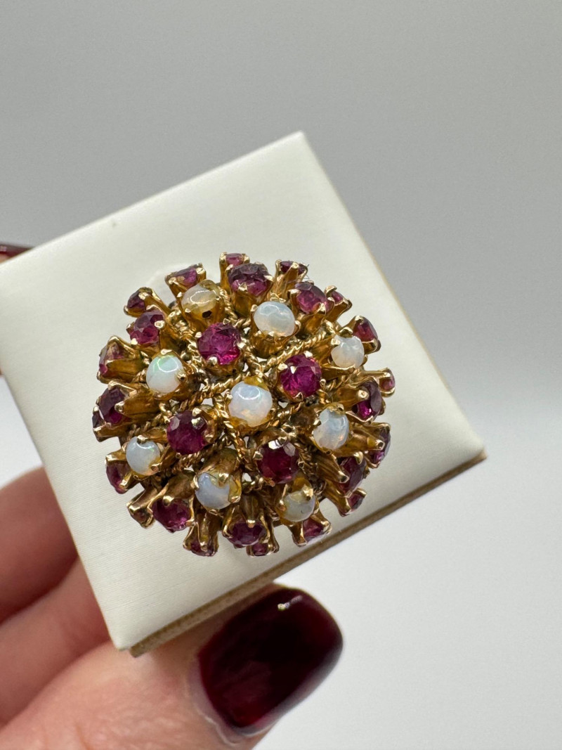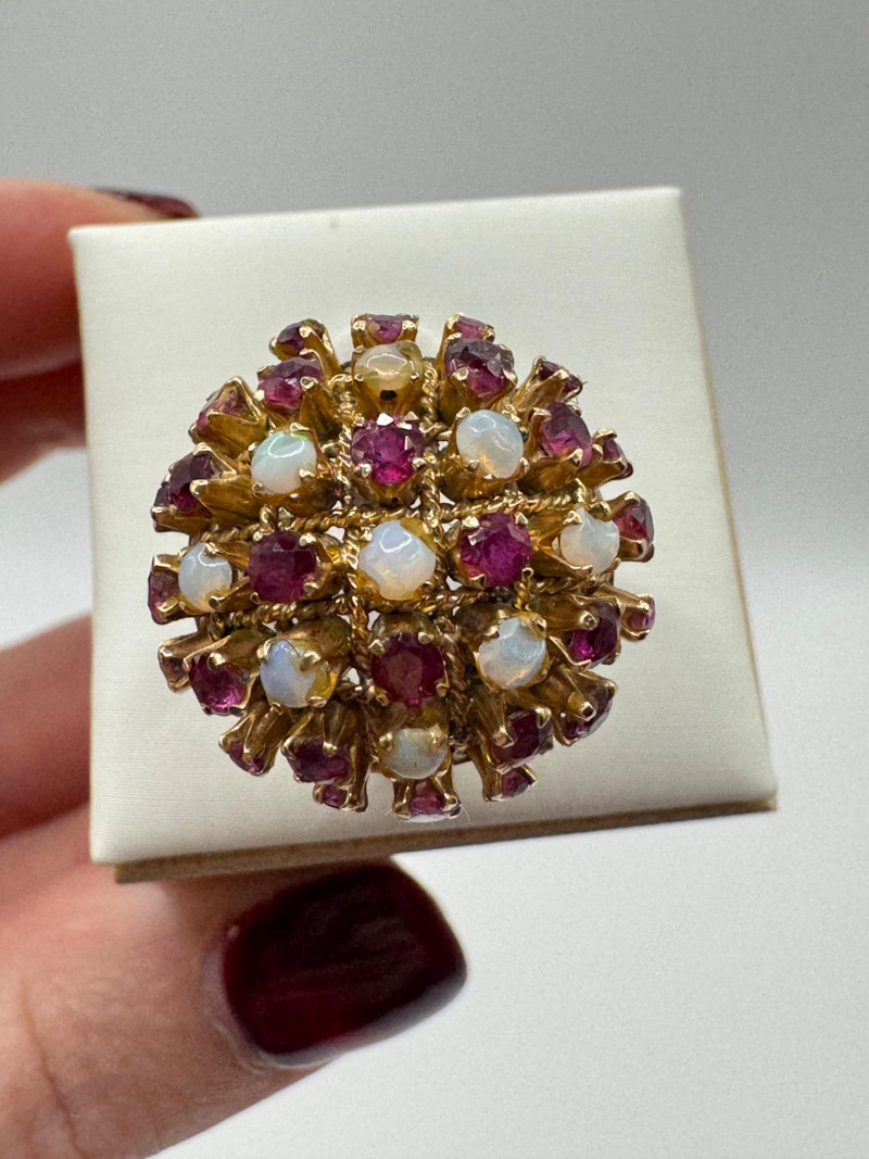 14K Gold Opal & Ruby Cluster Ring – Size 7, 6.14g.