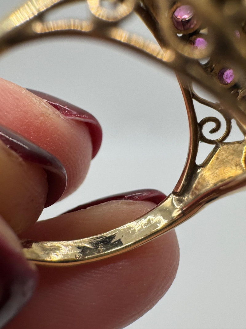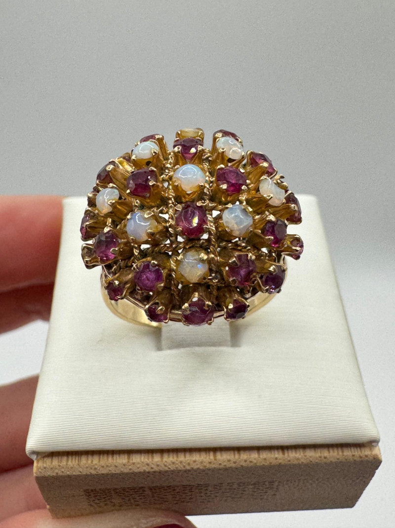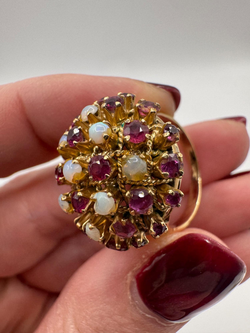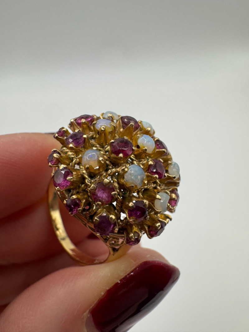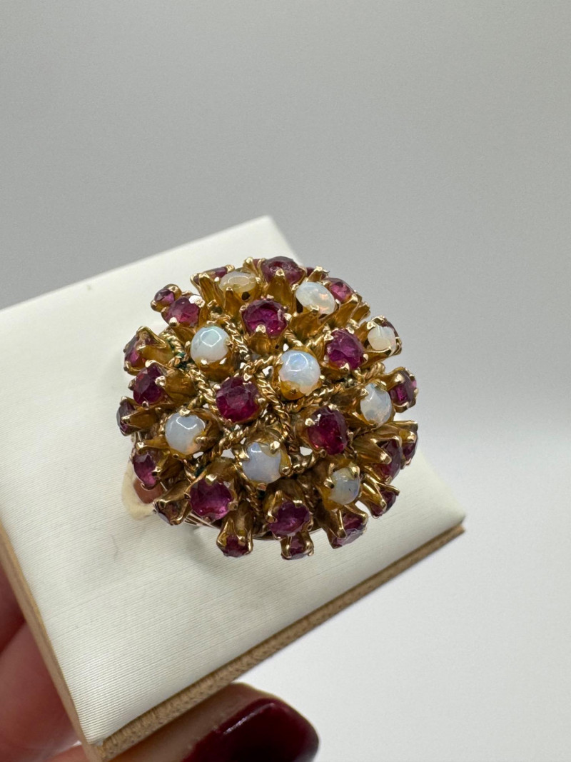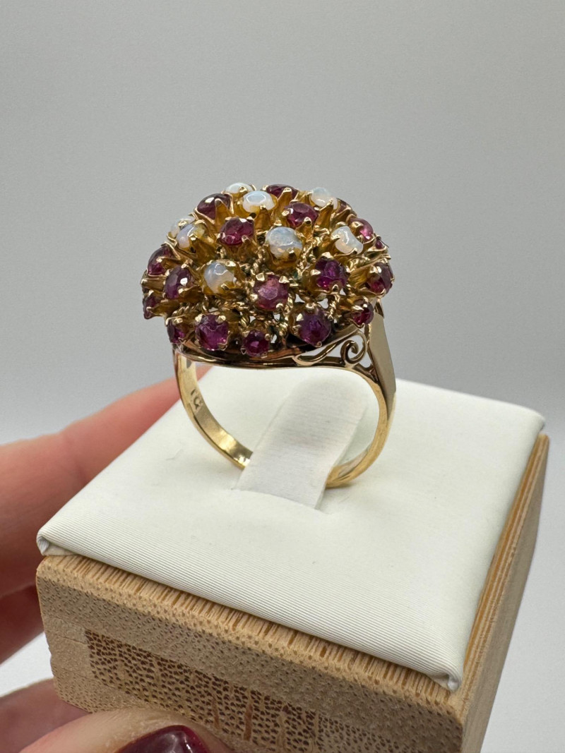 14K Gold Opal & Ruby Cluster Ring – Size 7, 6.14g.