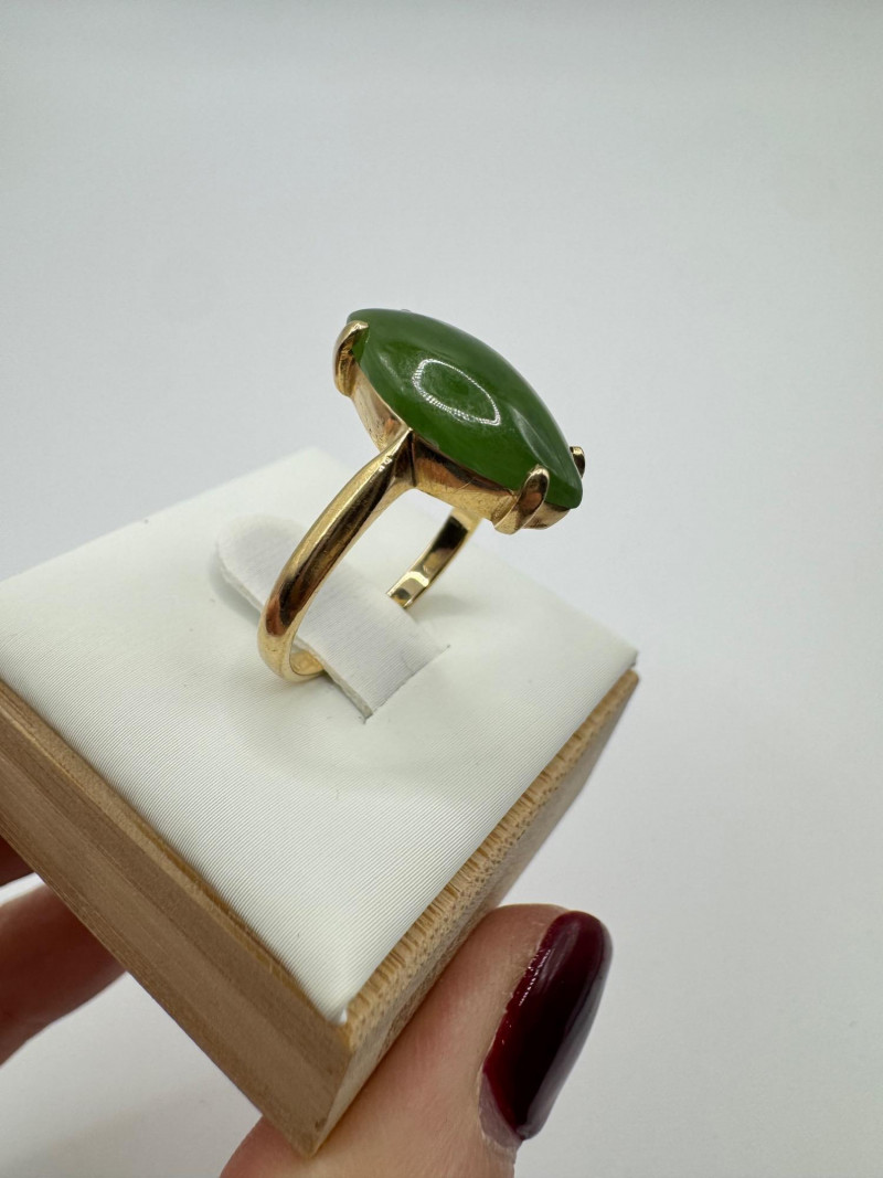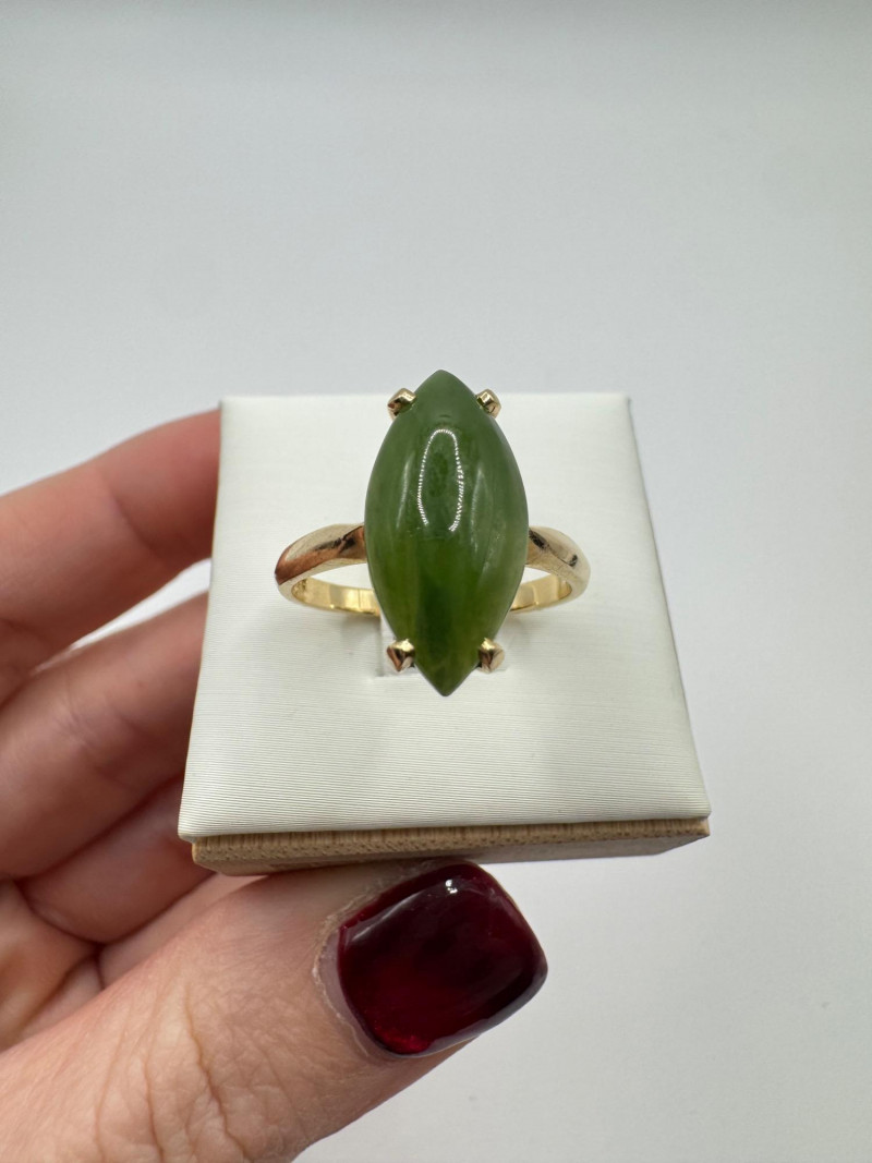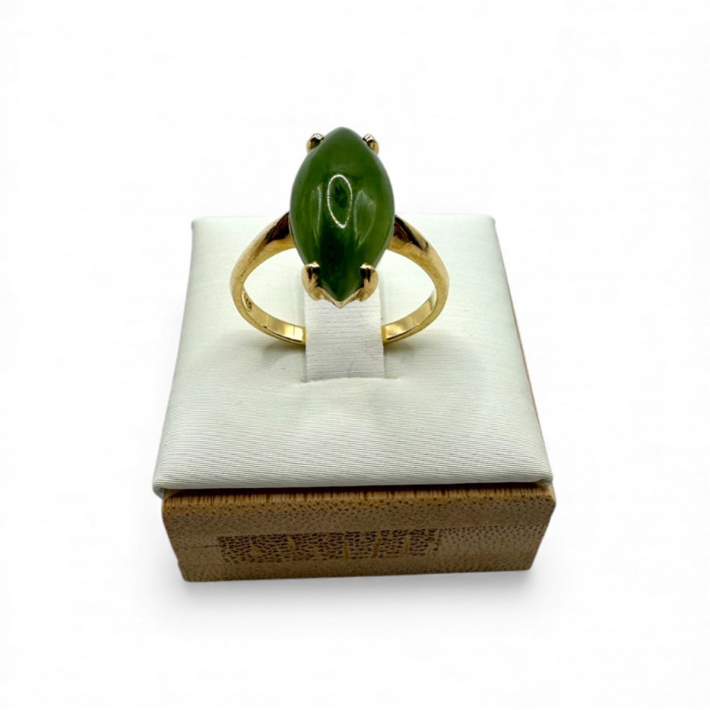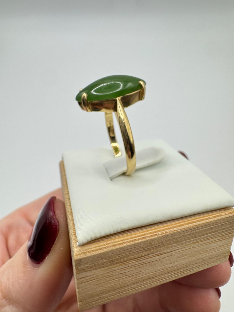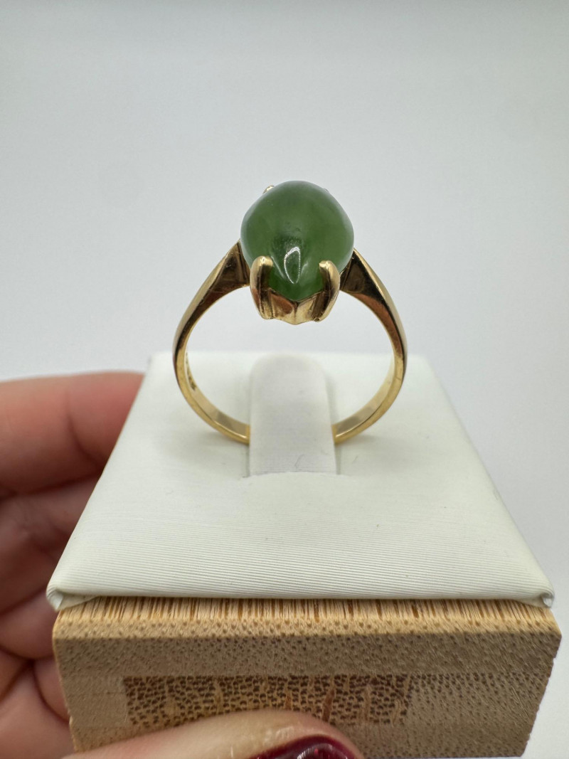 14K Gold Jade Cabochon Ring – Size 8, 4.12g.