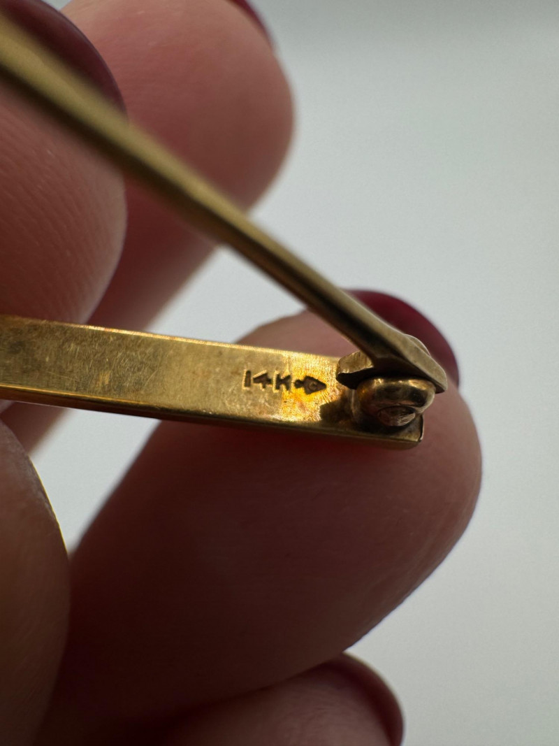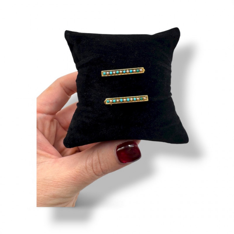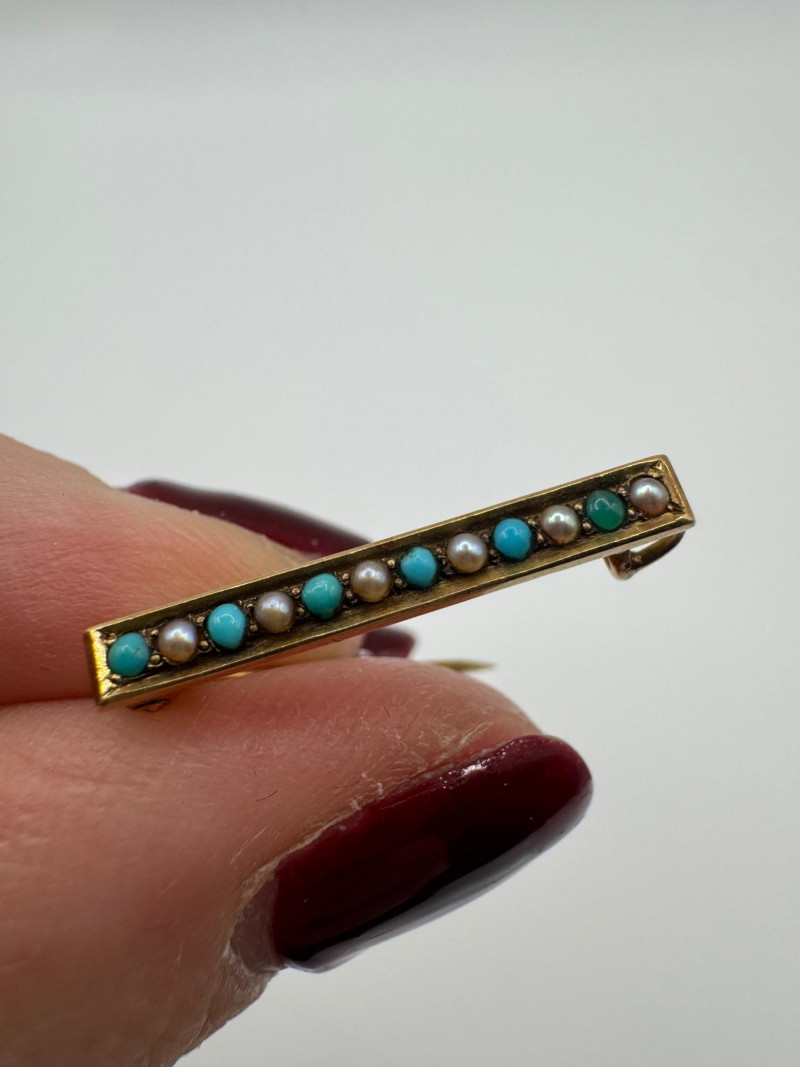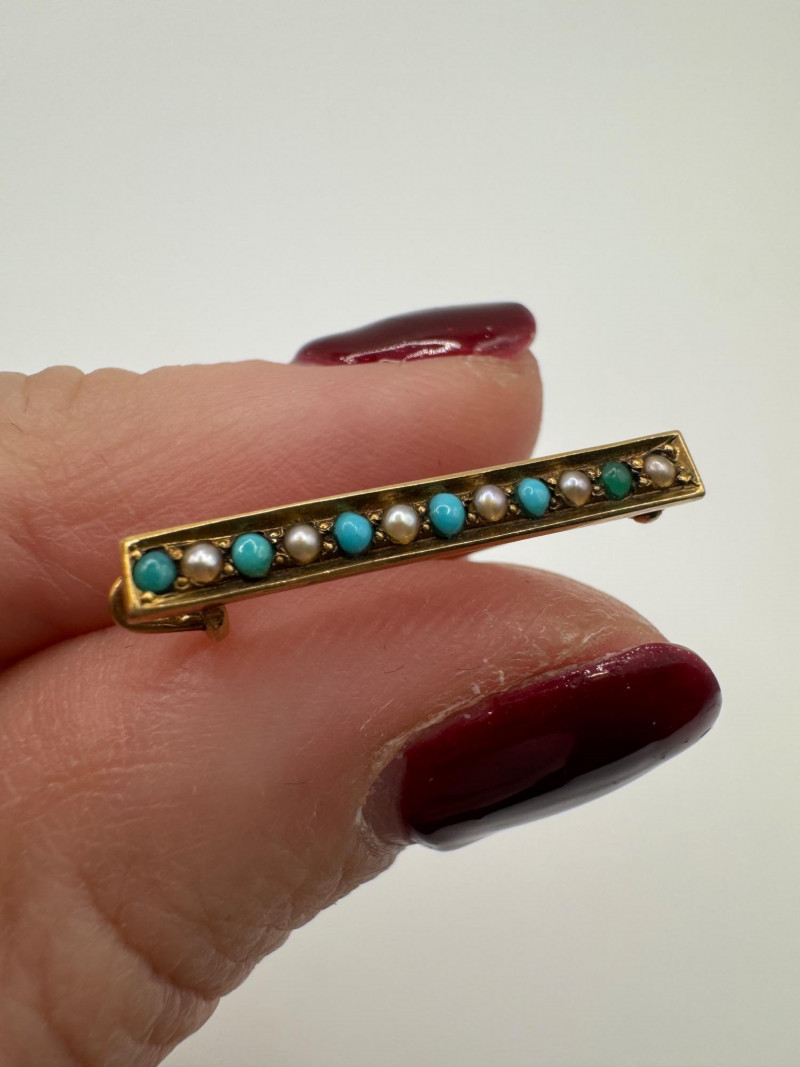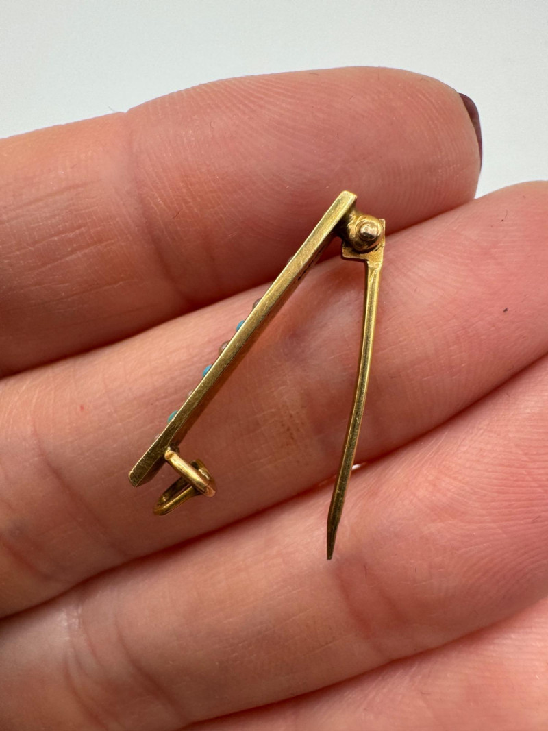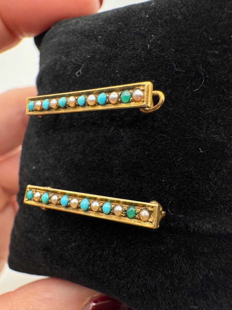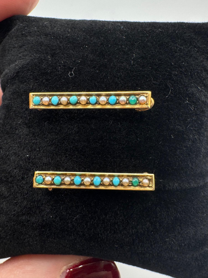 14K Gold Bar Pins w/ Turquoise & Seed Pearls – 2.05g.