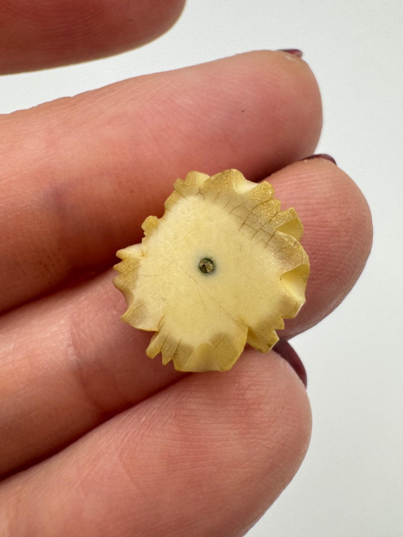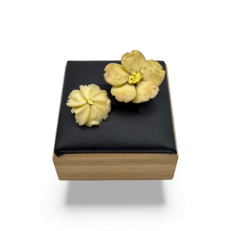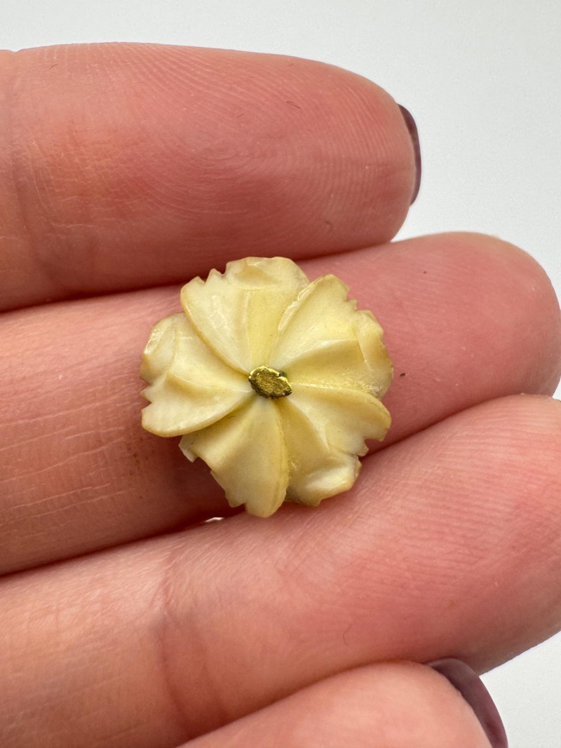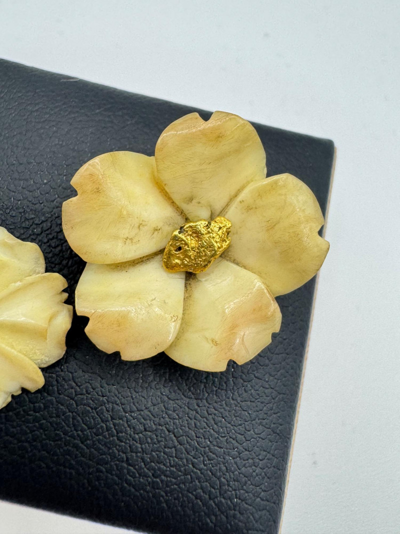 Lot # 52 - Carved Bone Flower Brooches w/ Gold Nugget Centers – 2pcs