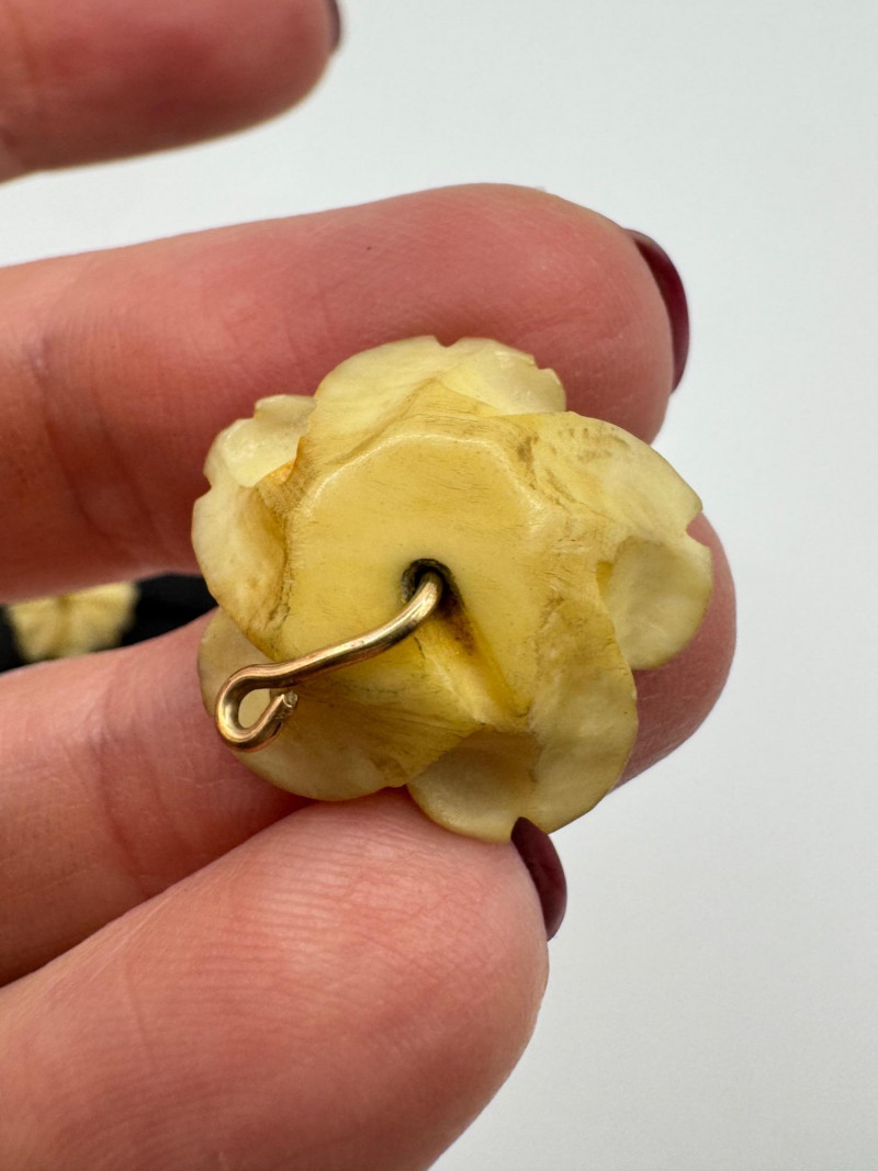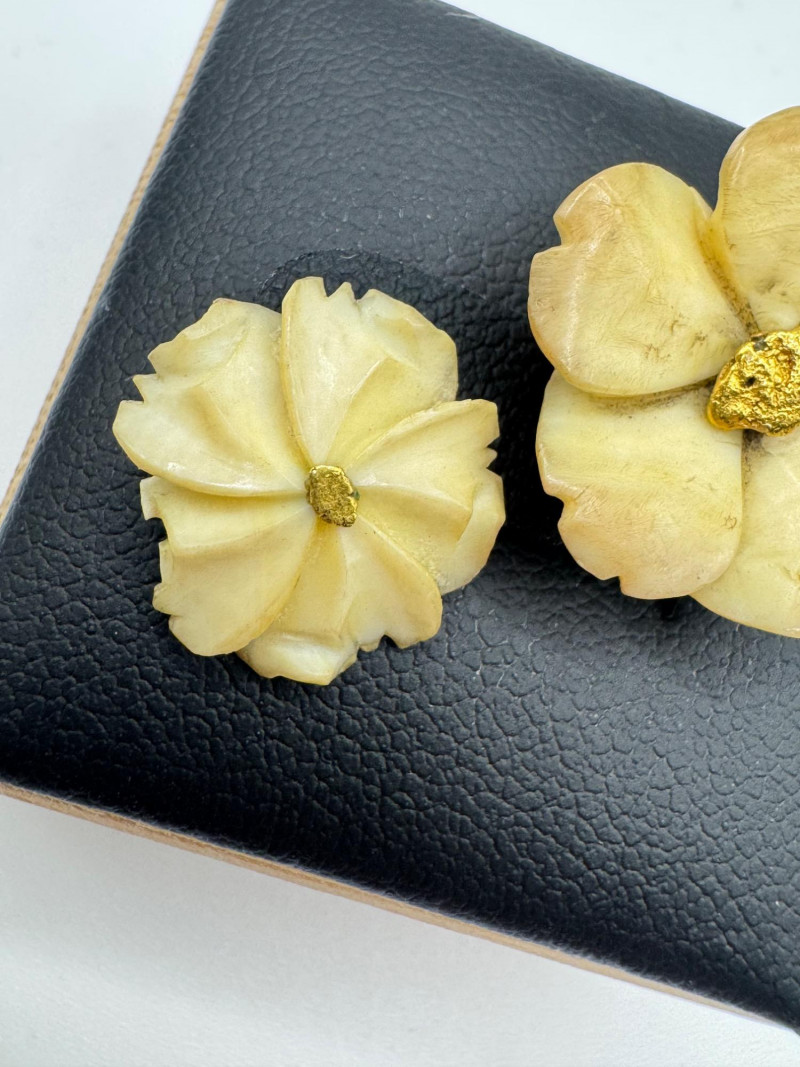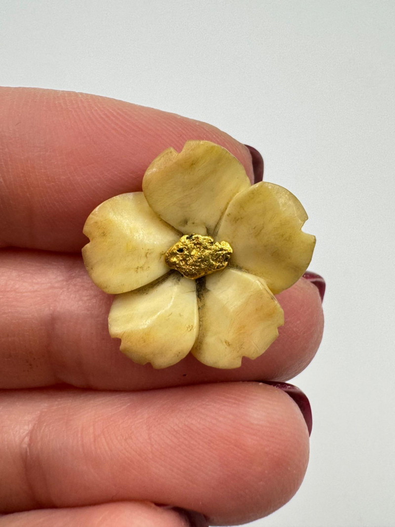 Carved Bone Flower Brooches w/ Gold Nugget Centers – 2pcs.