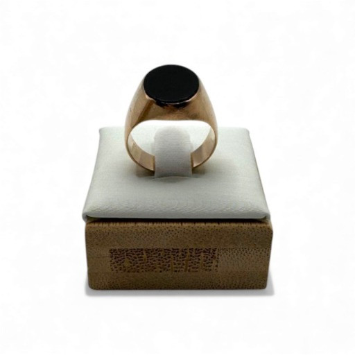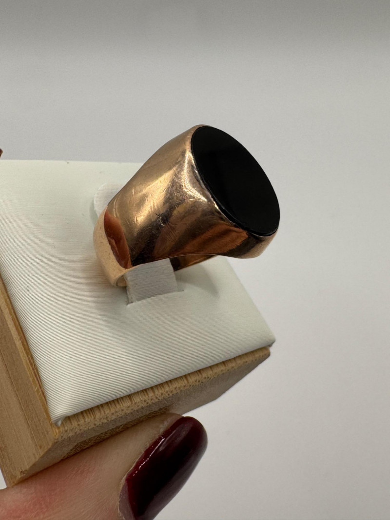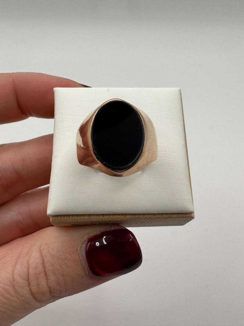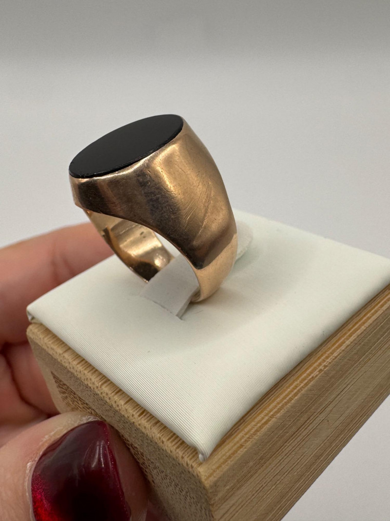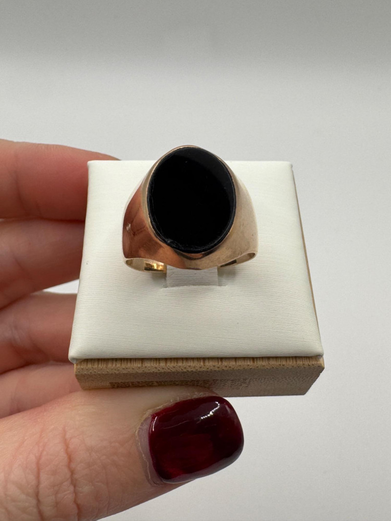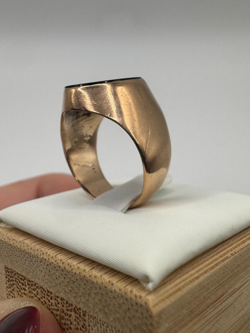 10K Gold Signet Ring w/ Black Stone – Size 7, Approx 6g.