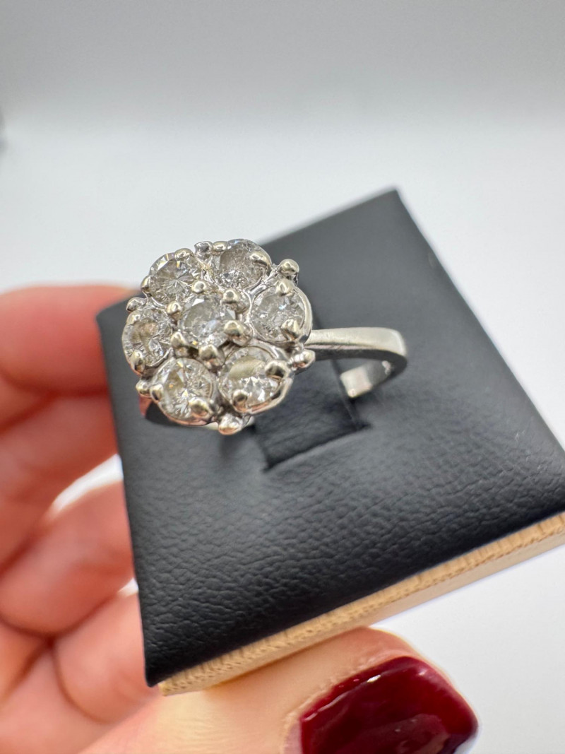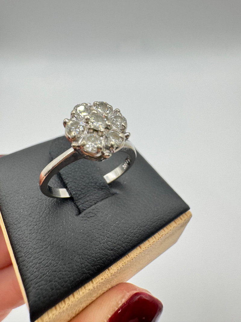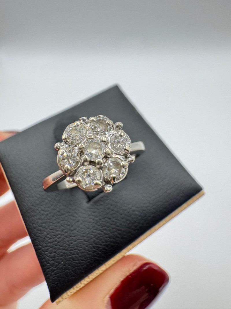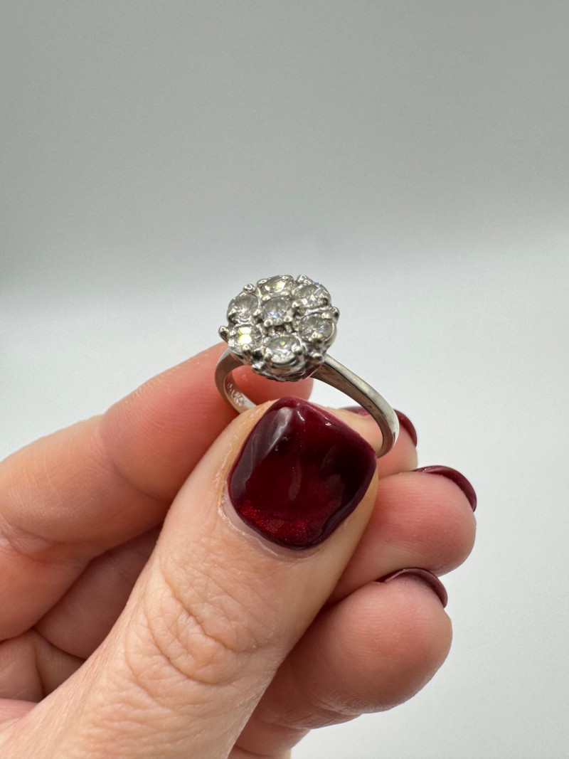 14K White Gold Cluster Ring w/ 7 Diamonds, 3.2g.