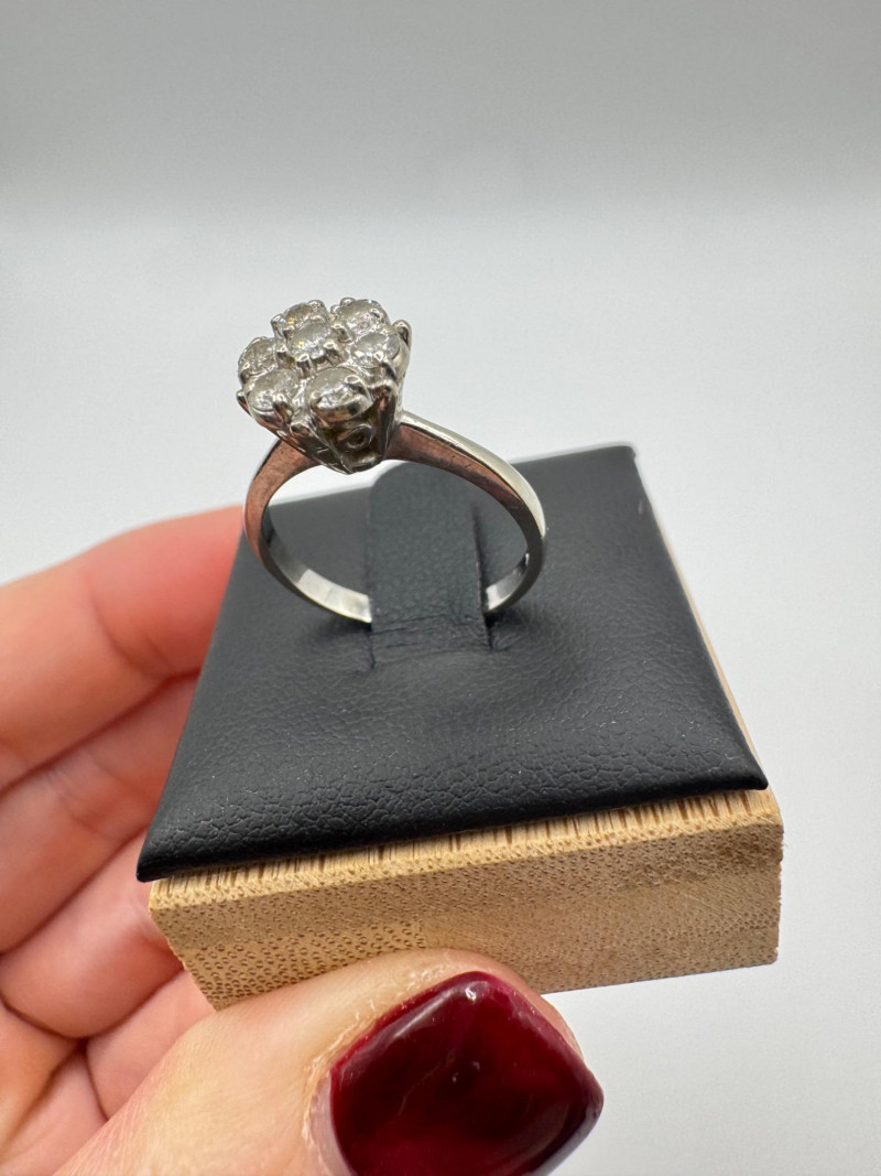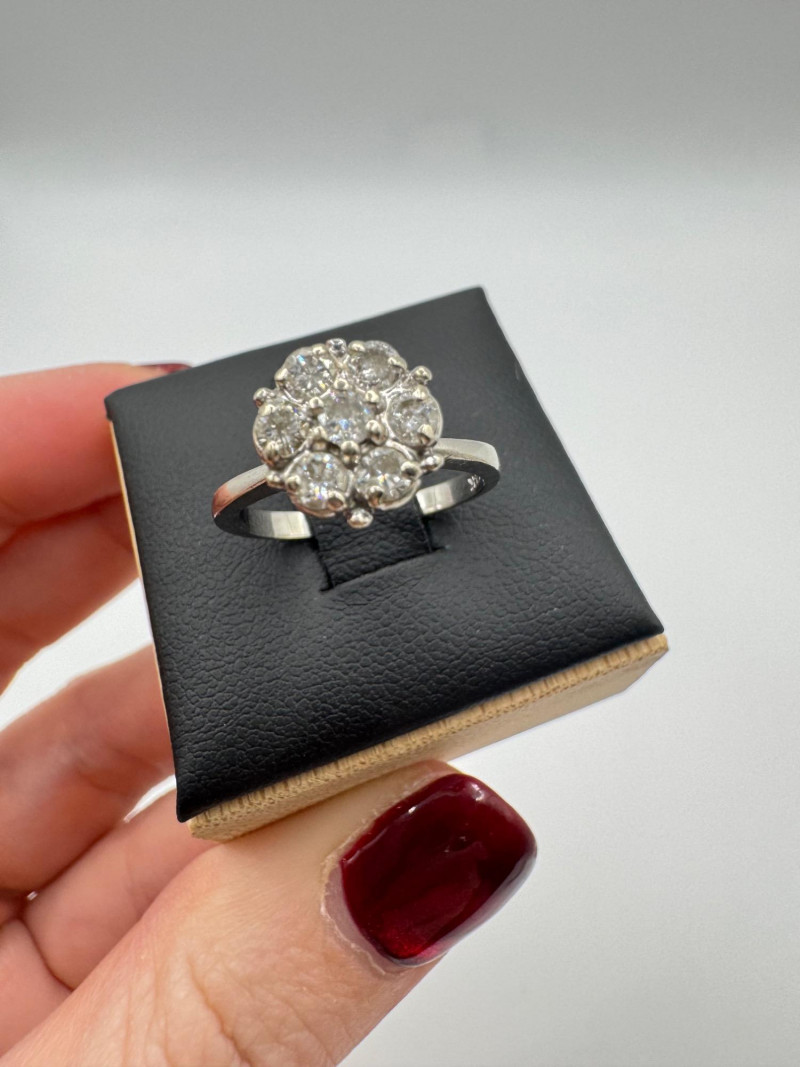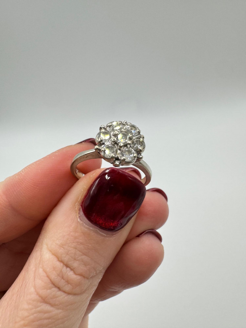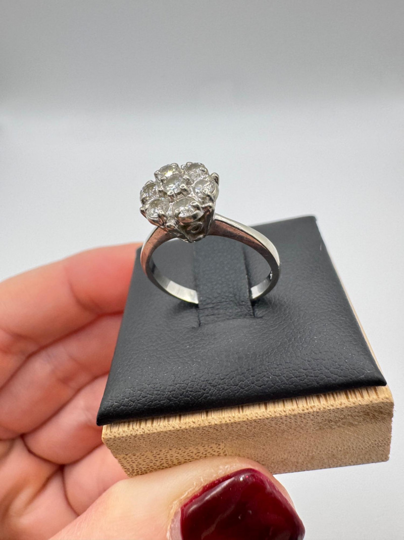14K White Gold Cluster Ring w/ 7 Diamonds, 3.2g.
