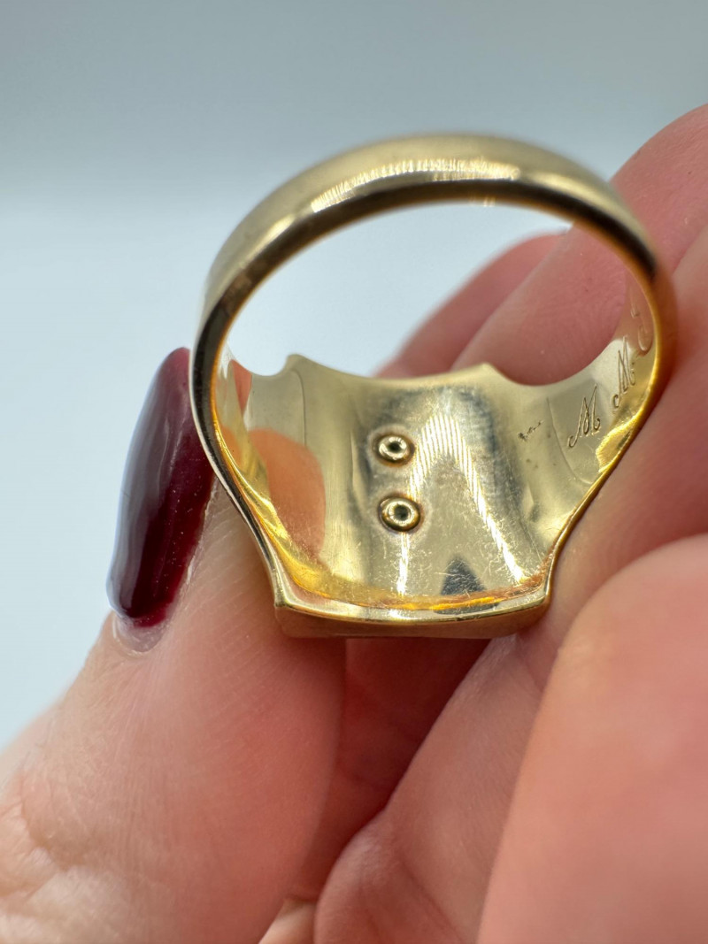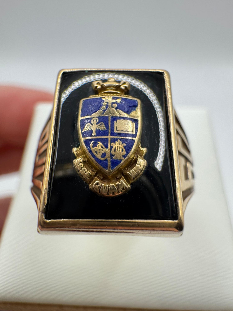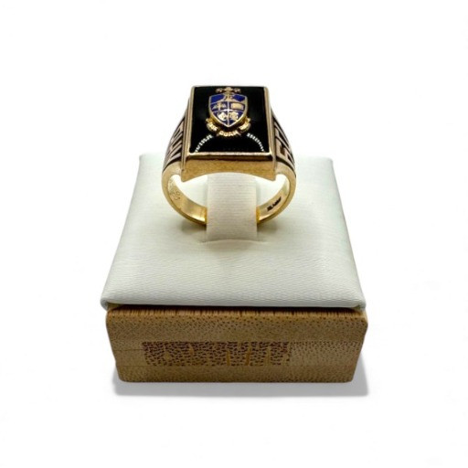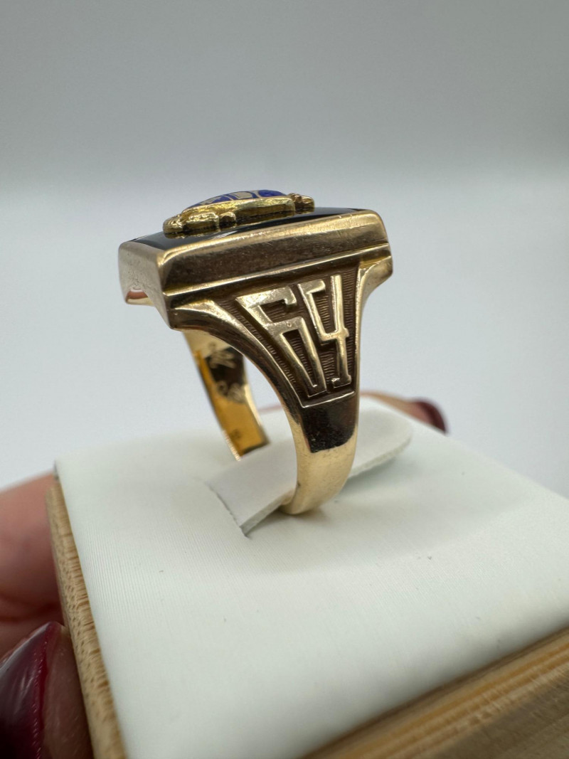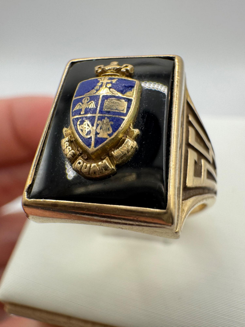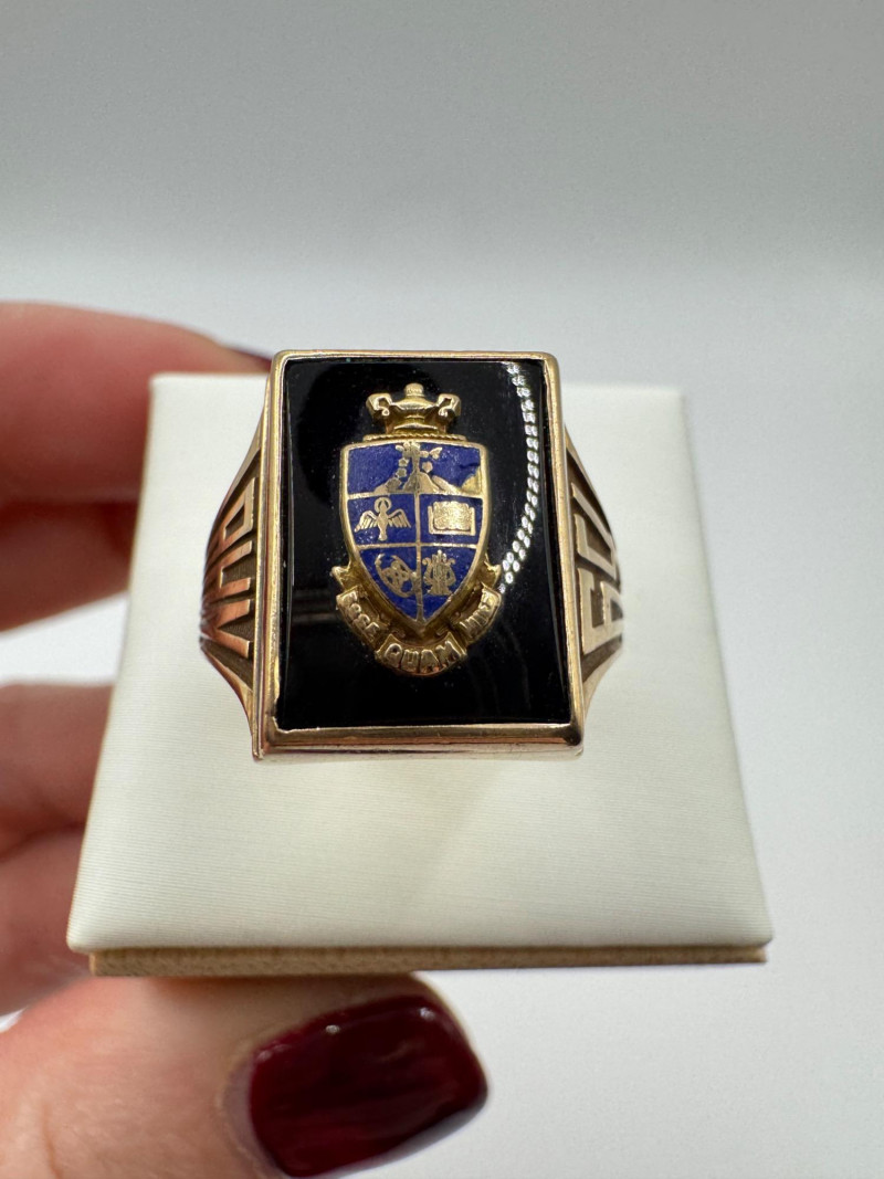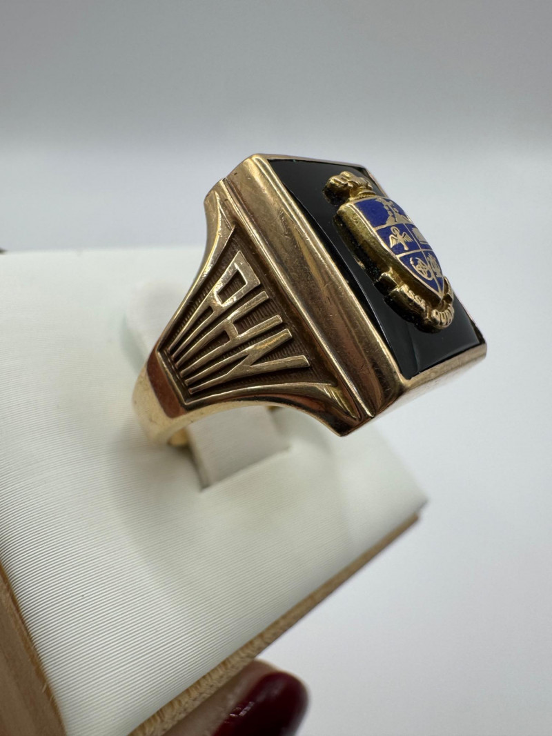 Lot # 64 - 14K Gold Class Ring w/ Enamel Crest & Initials “M.M.G.”, 7.23g