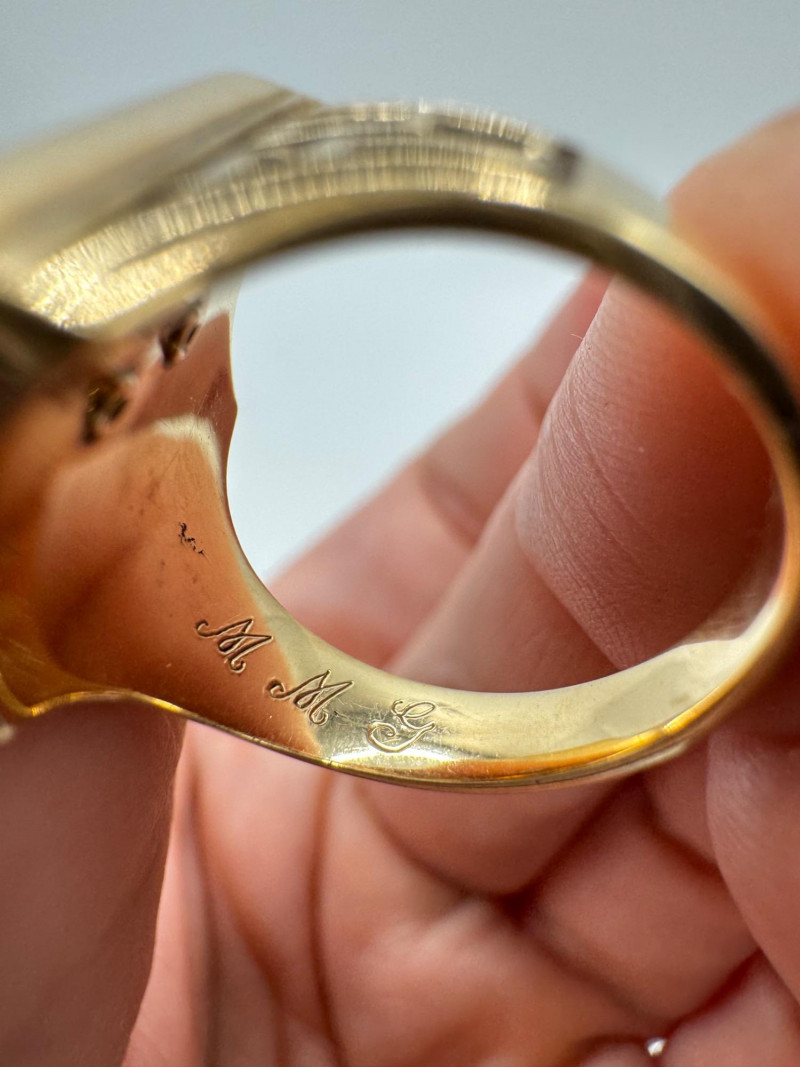 14K Gold Class Ring w/ Enamel Crest & Initials “M.M.G.”, 7.23g.