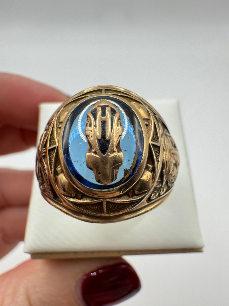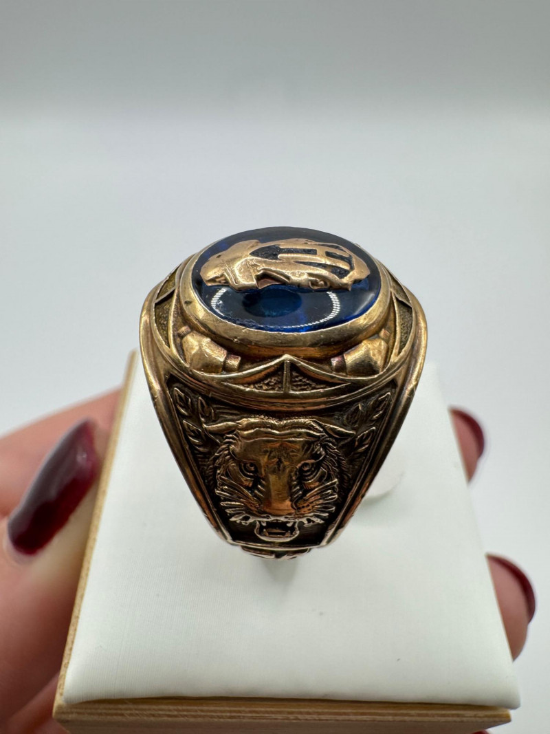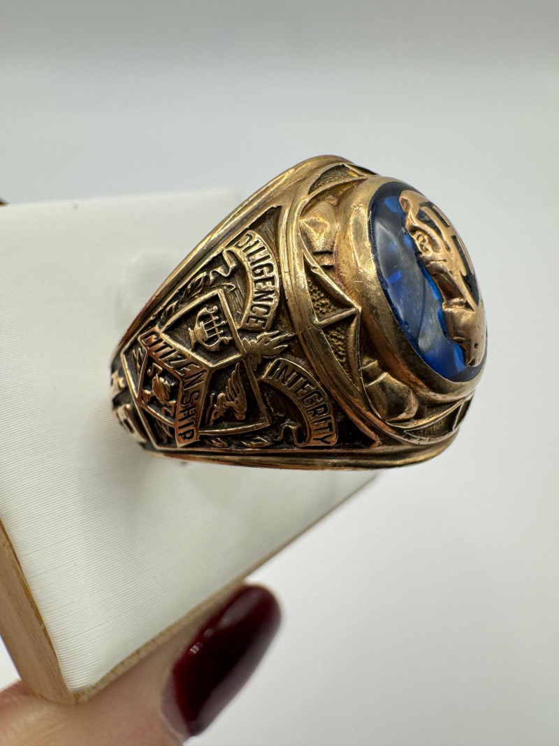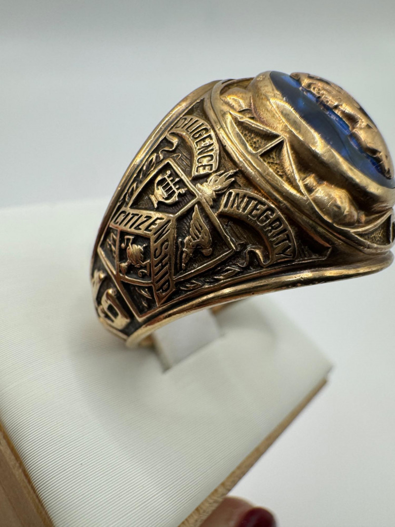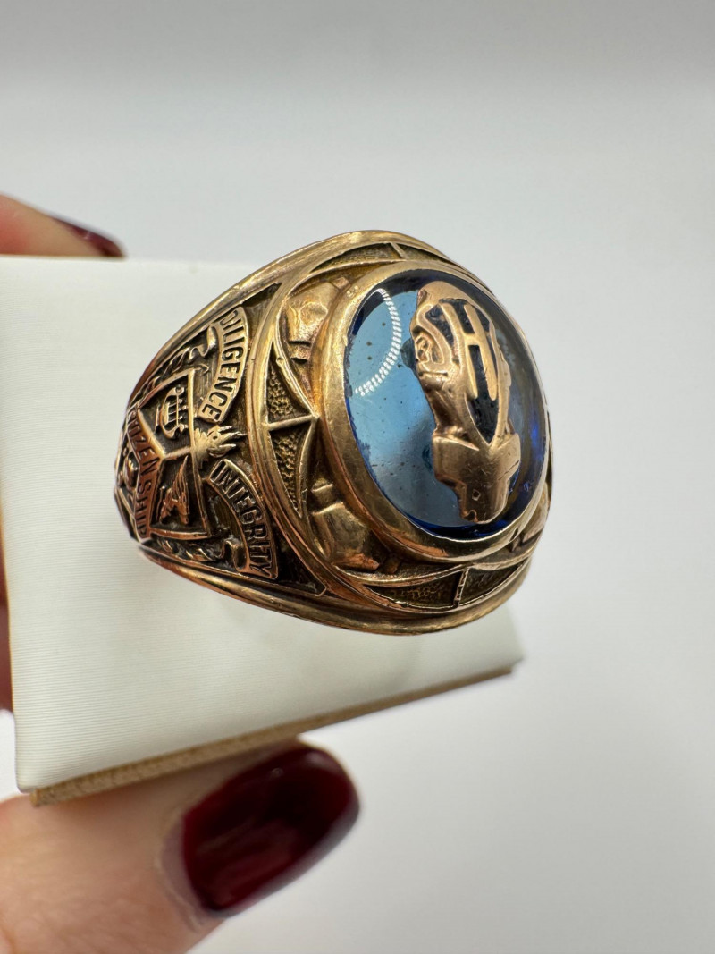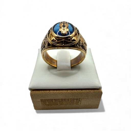 10K Gold Balfour Class Ring w/ Blue Topaz Stone, Size 10, 12g.
