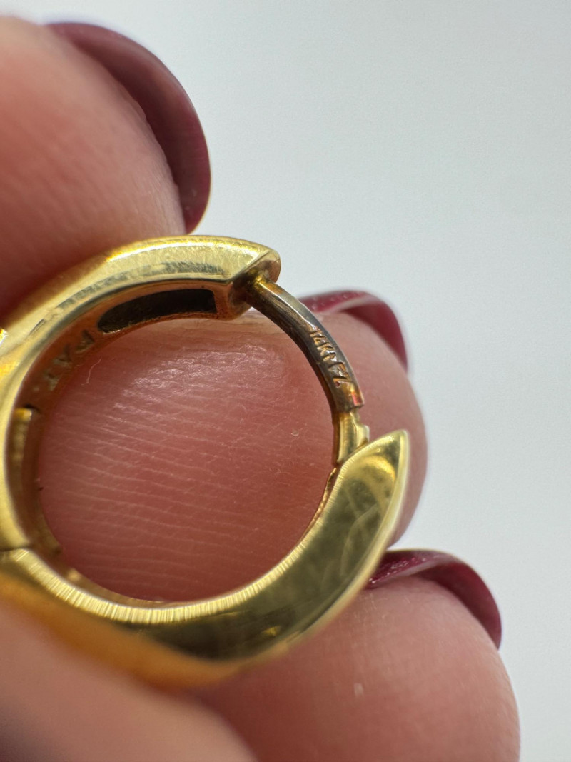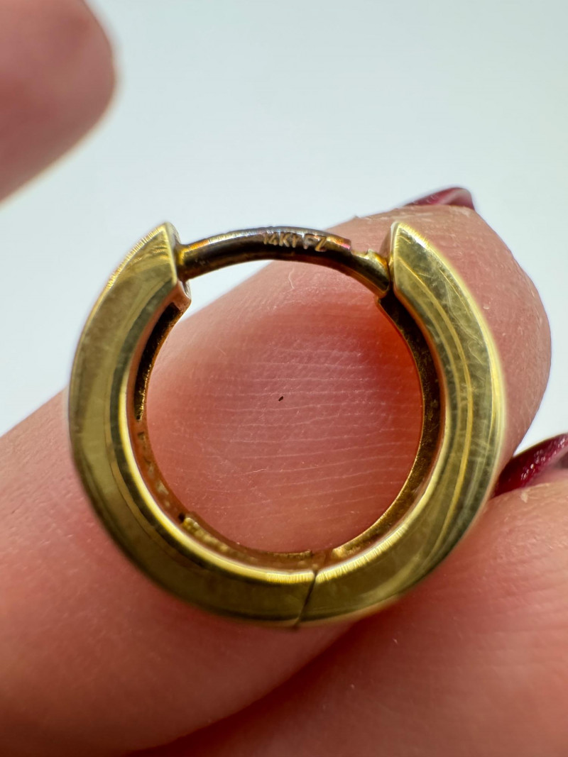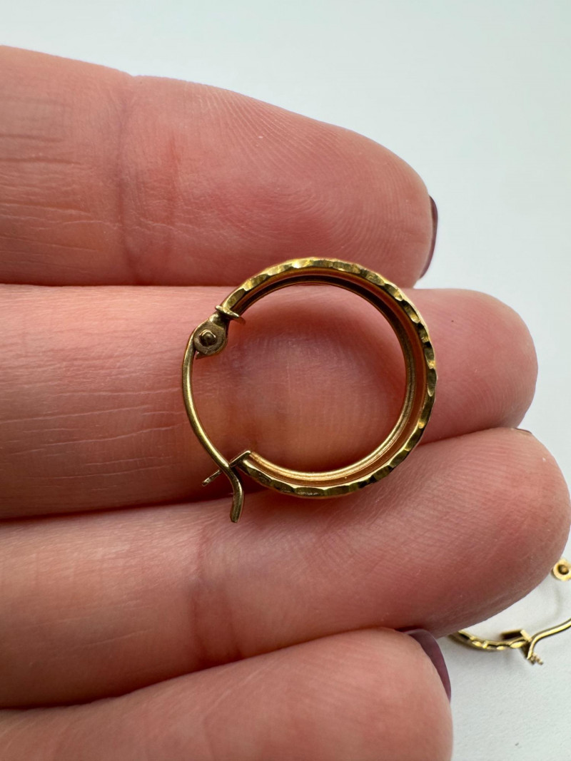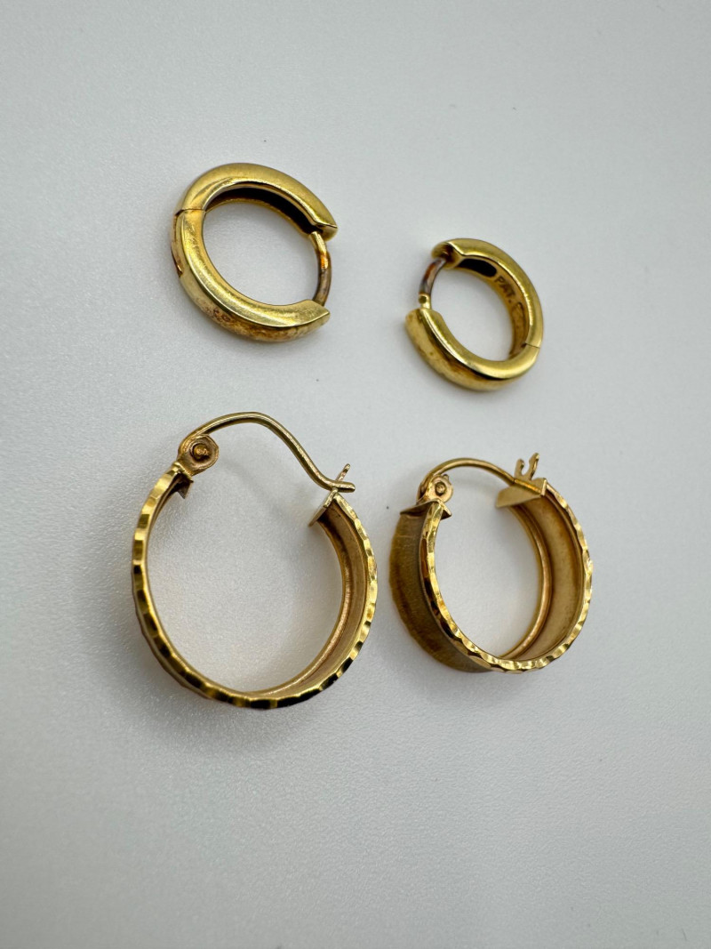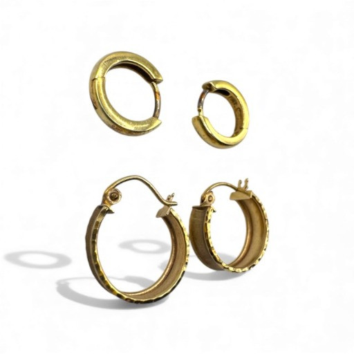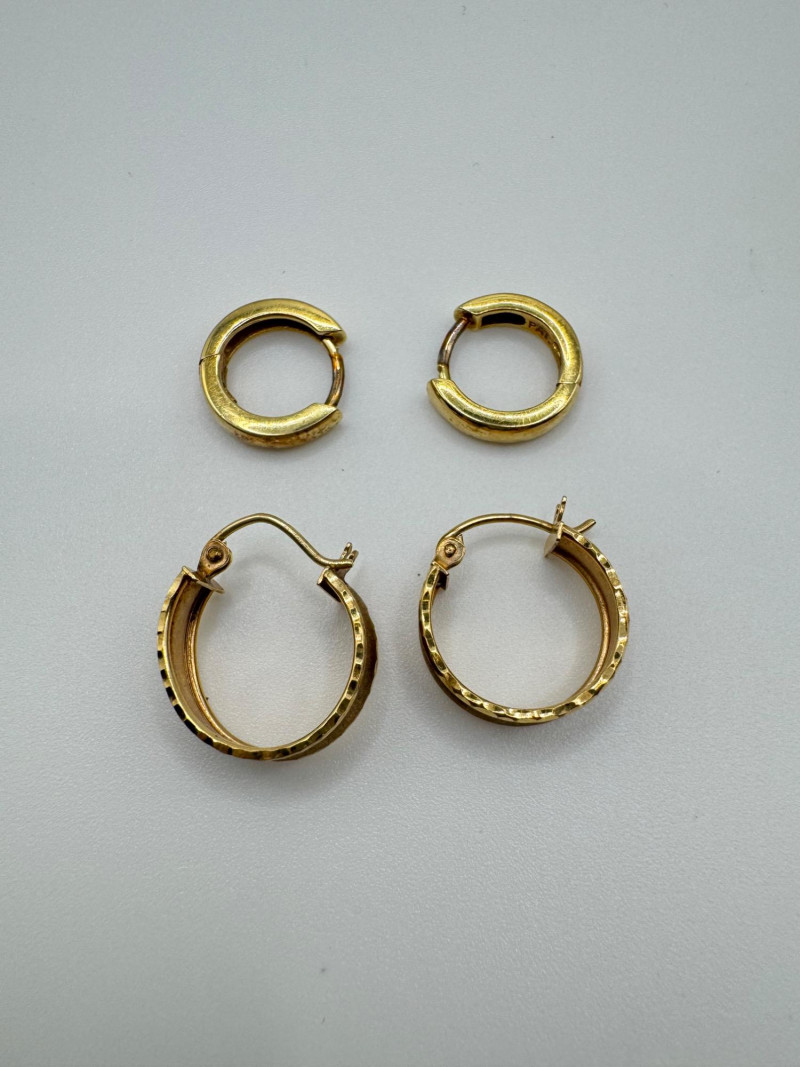 2 Gold Hoop Earrings – 14K & 10K, Textured & Smooth Styles, 3.57g.