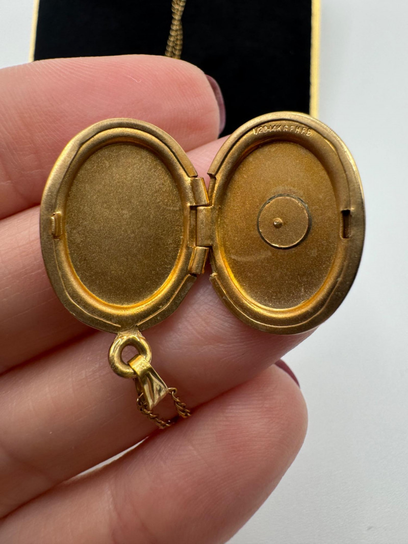 1/20 14K Gold-Filled Locket Necklace w/ Diamond Accent. General Disclaimer for This Auction: Select precious metal pieces have been tested and are individually marked. All diamonds have been tested. Other stones (e.g., rubies, sapphires, etc.) have NOT been examined by a professional jeweler. These item details were provided by the jewelry owner. By bidding, you agree to purchase the items as is, with no guarantees regarding metal purity, gemstone authenticity, or content. No refunds will be issued on these factors.