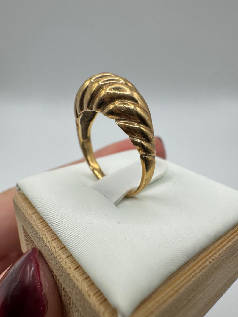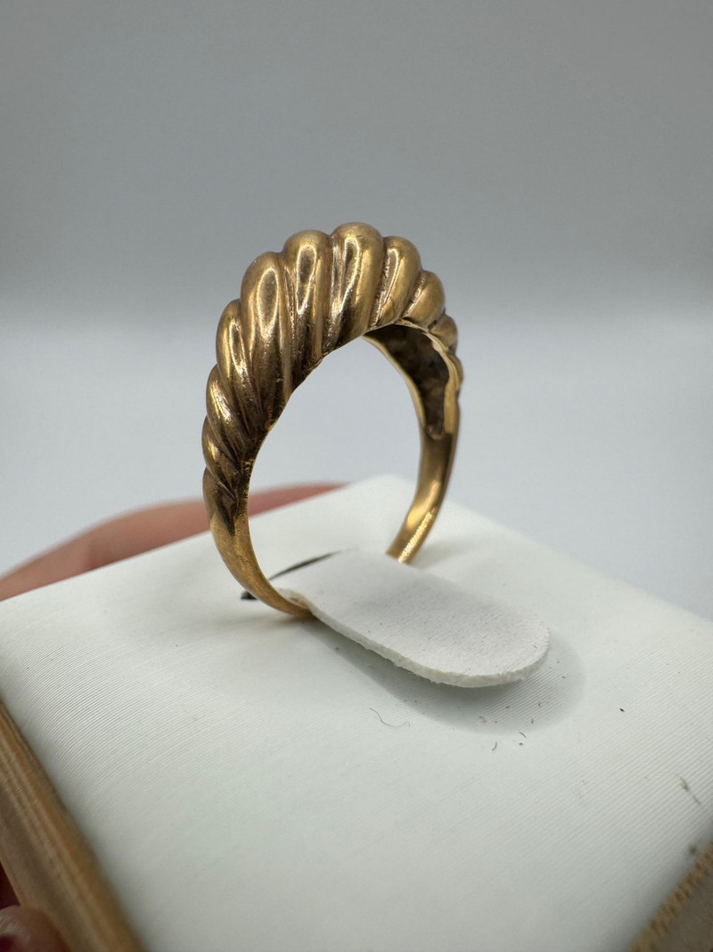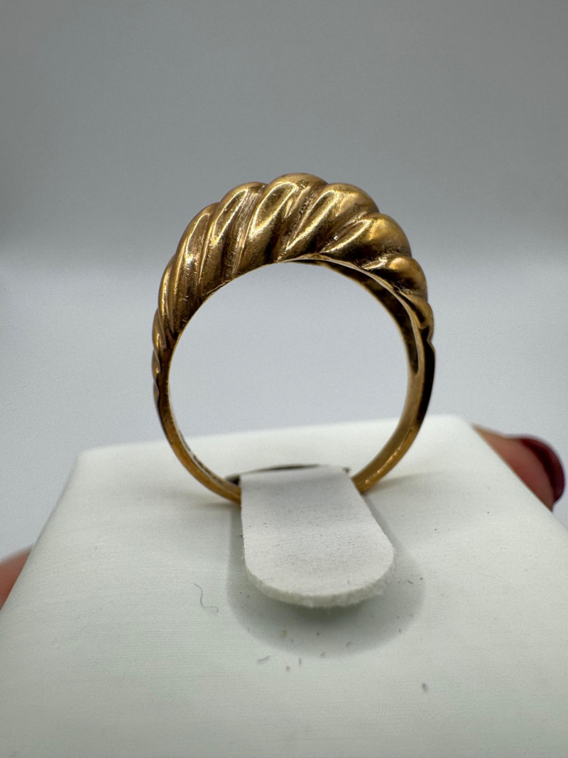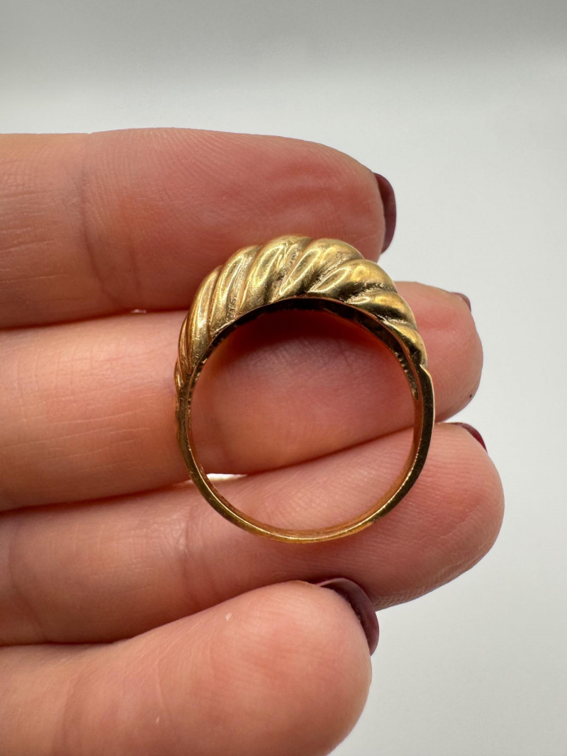 14K Gold Domed Ribbed Ring – Approx. 3.17g. General Disclaimer for This Auction: Select precious metal pieces have been tested and are individually marked. All diamonds have been tested. Other stones (e.g., rubies, sapphires, etc.) have NOT been examined by a professional jeweler. These item details were provided by the jewelry owner. By bidding, you agree to purchase the items as is, with no guarantees regarding metal purity, gemstone authenticity, or content. No refunds will be issued on these factors.