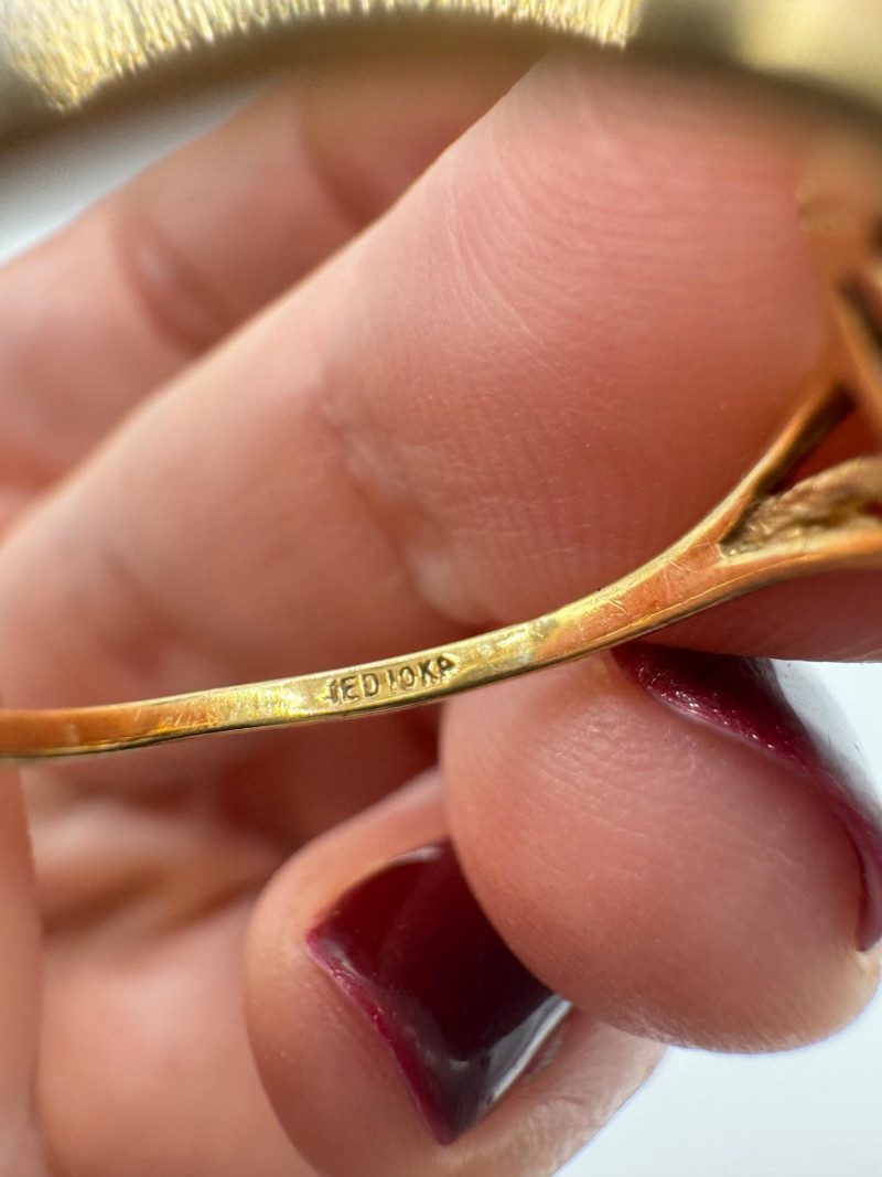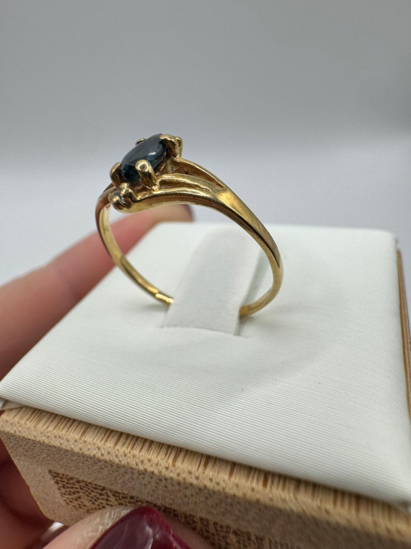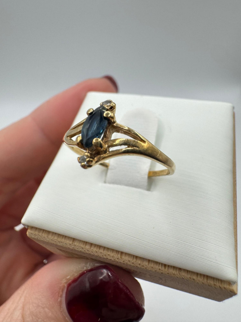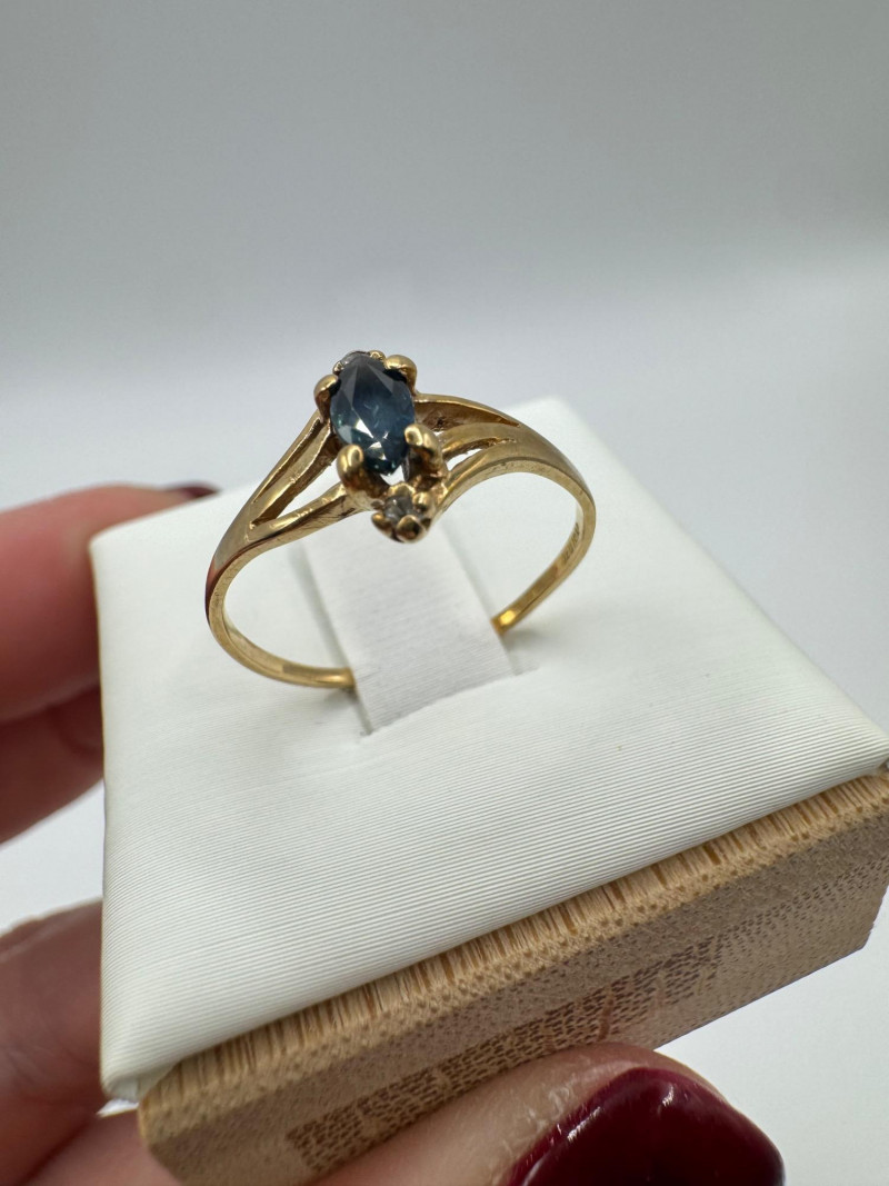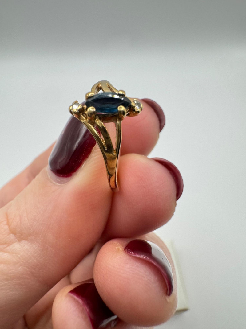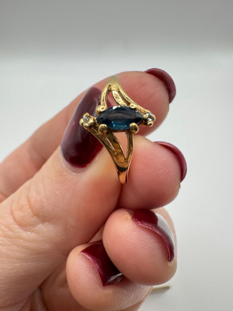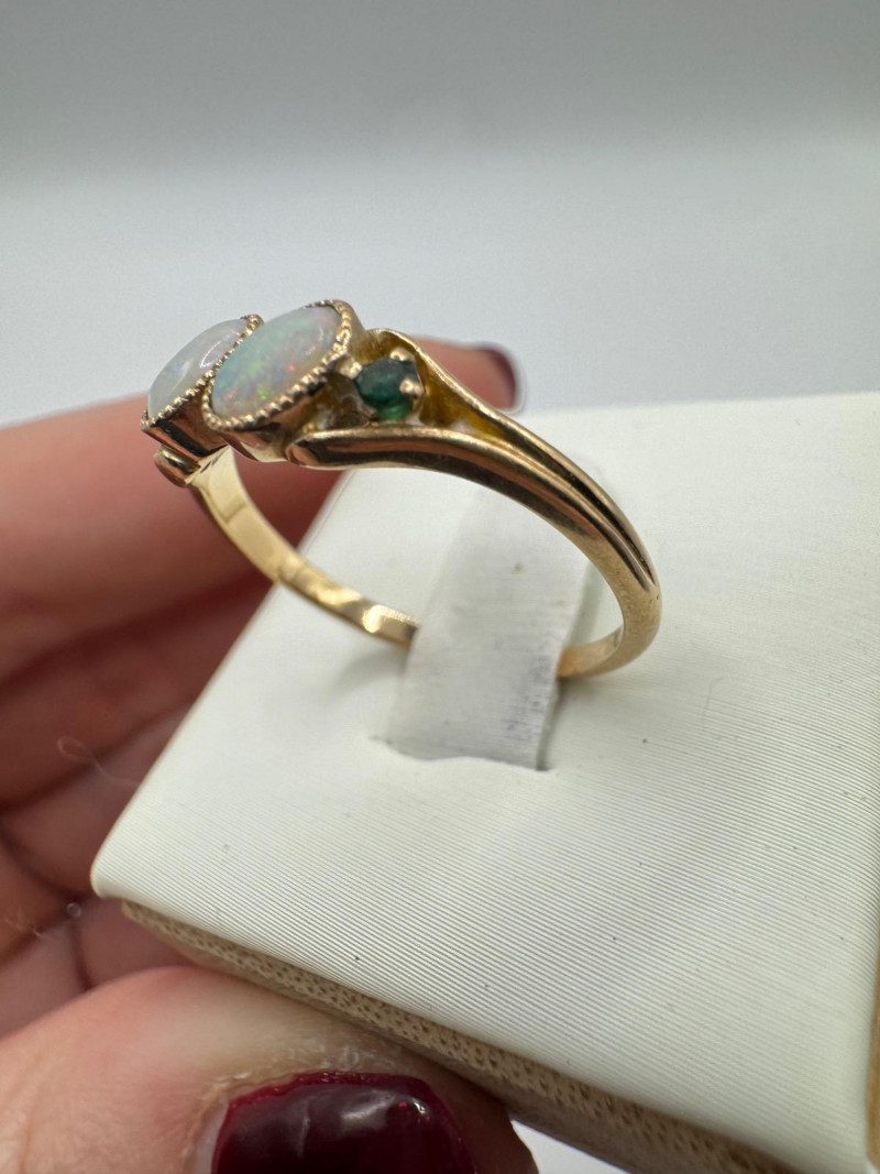 Set of 2 – 10K Gold Rings w/ Topaz, Diamond & Opal Stones, 3.07g. Lot includes two 10K yellow gold rings Blue topaz and diamond ring, size 6, marked 10K Opal and green stone ring, size 7.5, unmarked. Approx. combined weight: 3.07 grams Topaz/diamond ring: 1.17g Opal/green stone ring: 1.9g General Disclaimer for This Auction: Select precious metal pieces have been tested and are individually marked. All diamonds have been tested. Other stones (e.g., rubies, sapphires, etc.) have NOT been examined by a professional jeweler. These item details were provided by the jewelry owner. By bidding, you agree to purchase the items as is, with no guarantees regarding metal purity, gemstone authenticity, or content. No refunds will be issued on these factors.