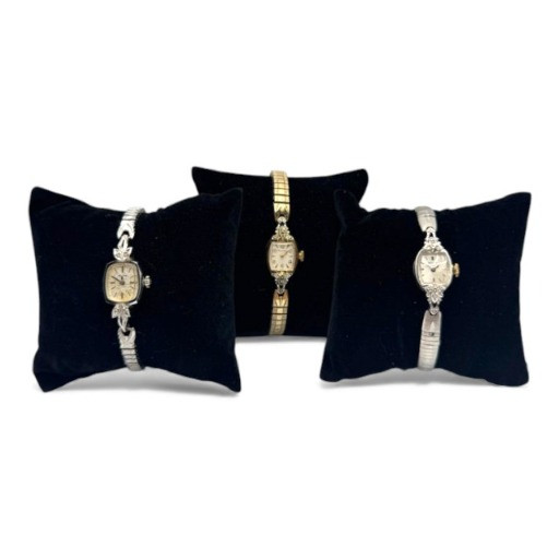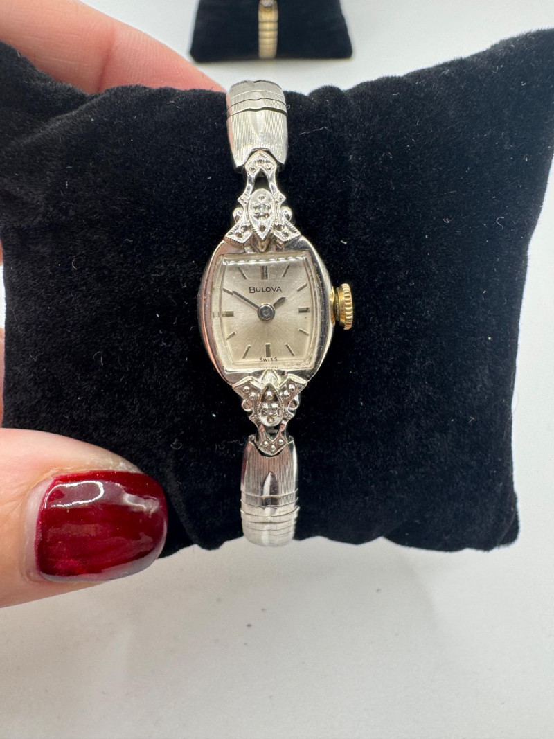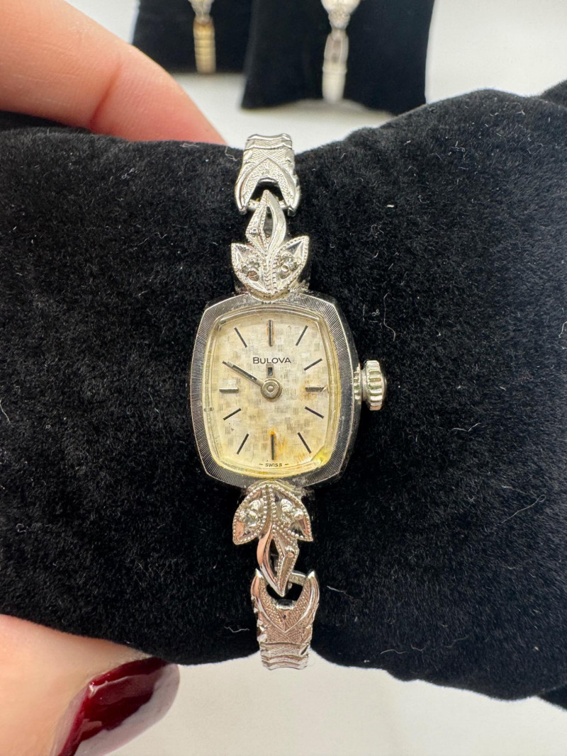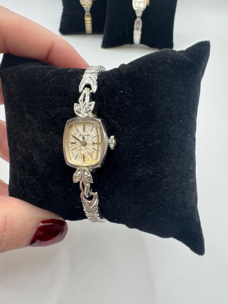 3 Bulova 10K Rolled Gold Plate Watches w/ Diamonds. General Disclaimer for This Auction: Select precious metal pieces have been tested and are individually marked. All diamonds have been tested. Other stones (e.g., rubies, sapphires, etc.) have NOT been examined by a professional jeweler. These item details were provided by the jewelry owner. By bidding, you agree to purchase the items as is, with no guarantees regarding metal purity, gemstone authenticity, or content. No refunds will be issued on these factors.