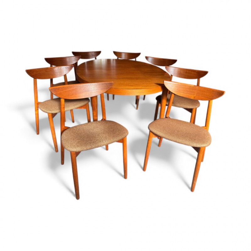 Moreddi Danish Teak Dining Set – Table w/ Leaves & 8 Chairs - $11,000+ Bidding on this lot is an agreement that: (1.) You will have at least 2 capable, able bodied persons to lift and load at a minimum. (2.) You will bring a hand truck and/or any other tools needed to remove this item. If these steps are not followed your item will be forfeit and no refund given.