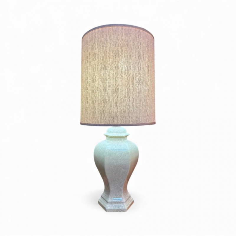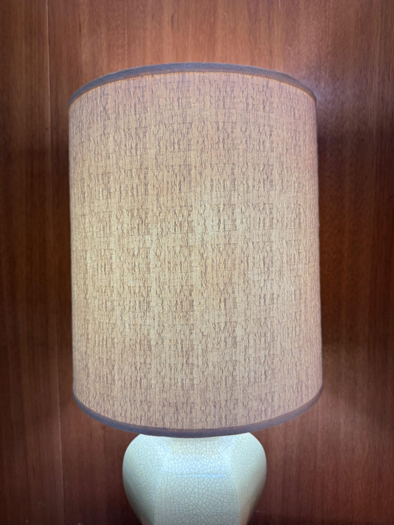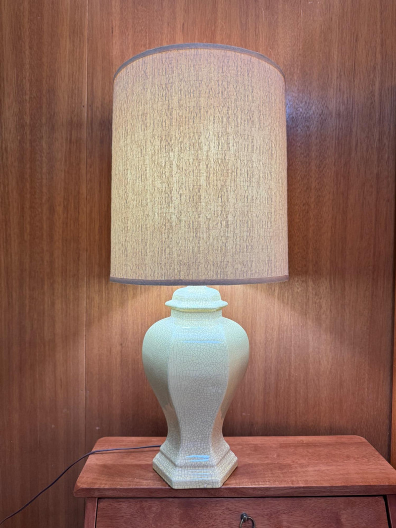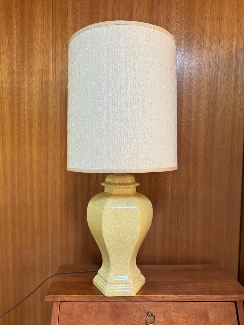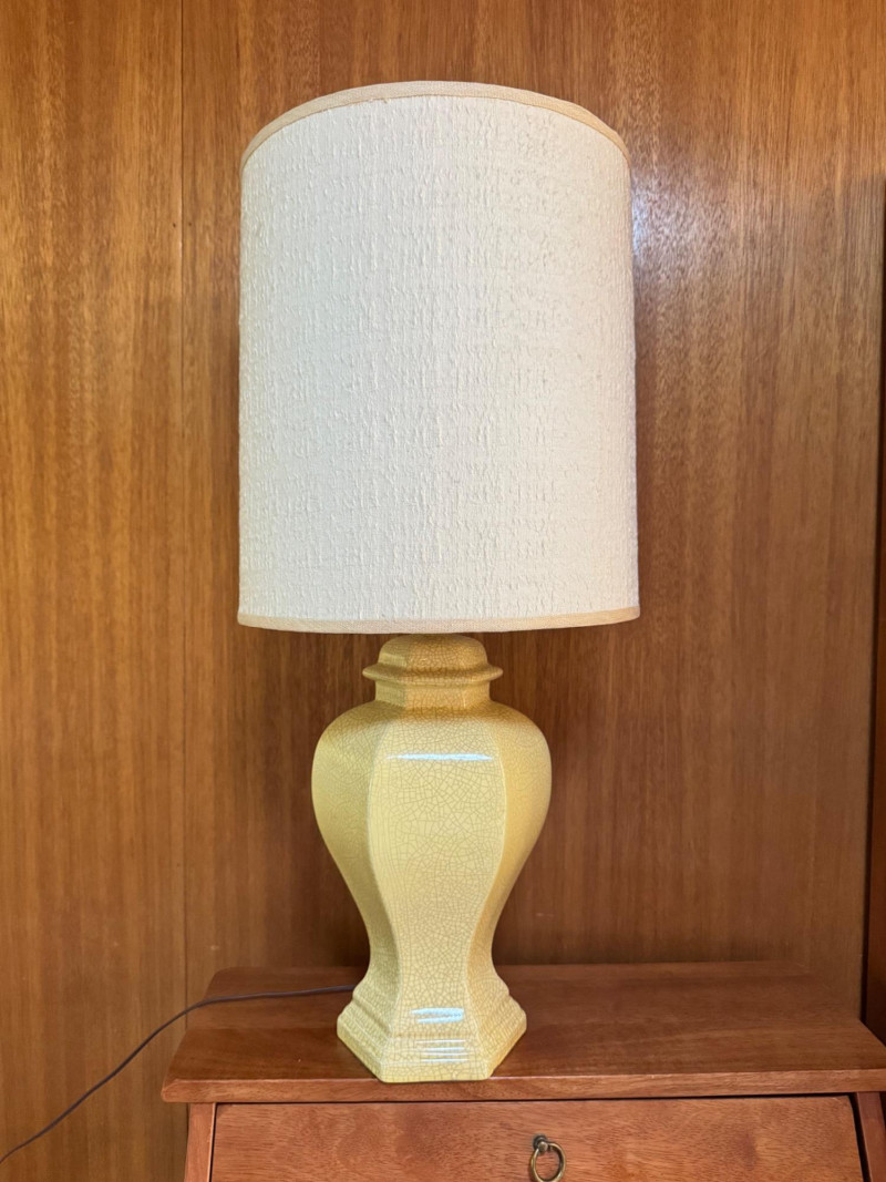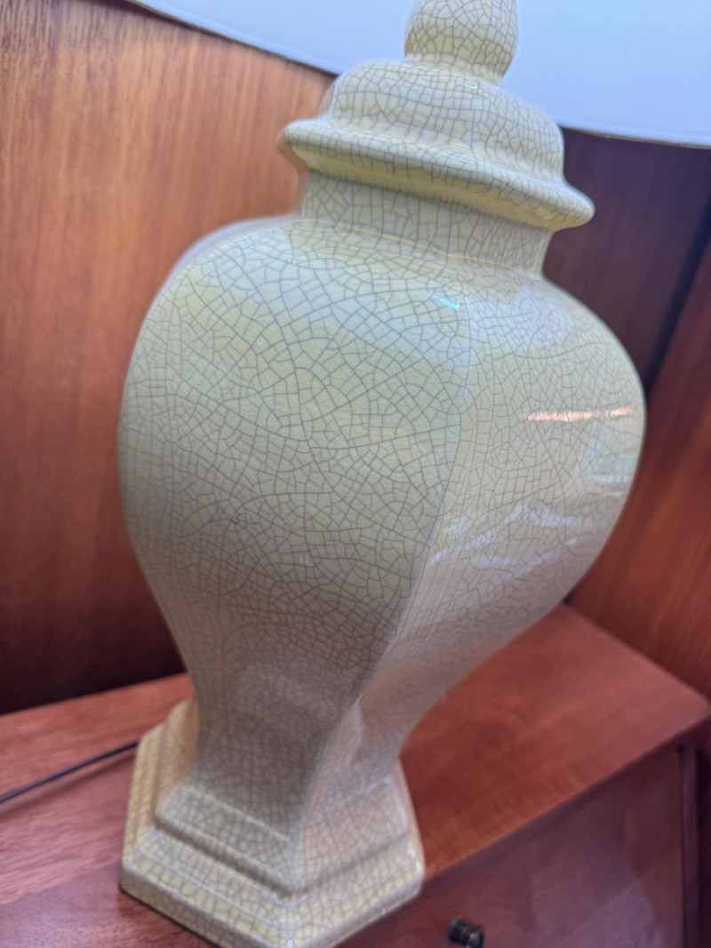 Lot # 2 - Mid Century Hexagonal Yellow Crackle Lamp w/ Cream Shade