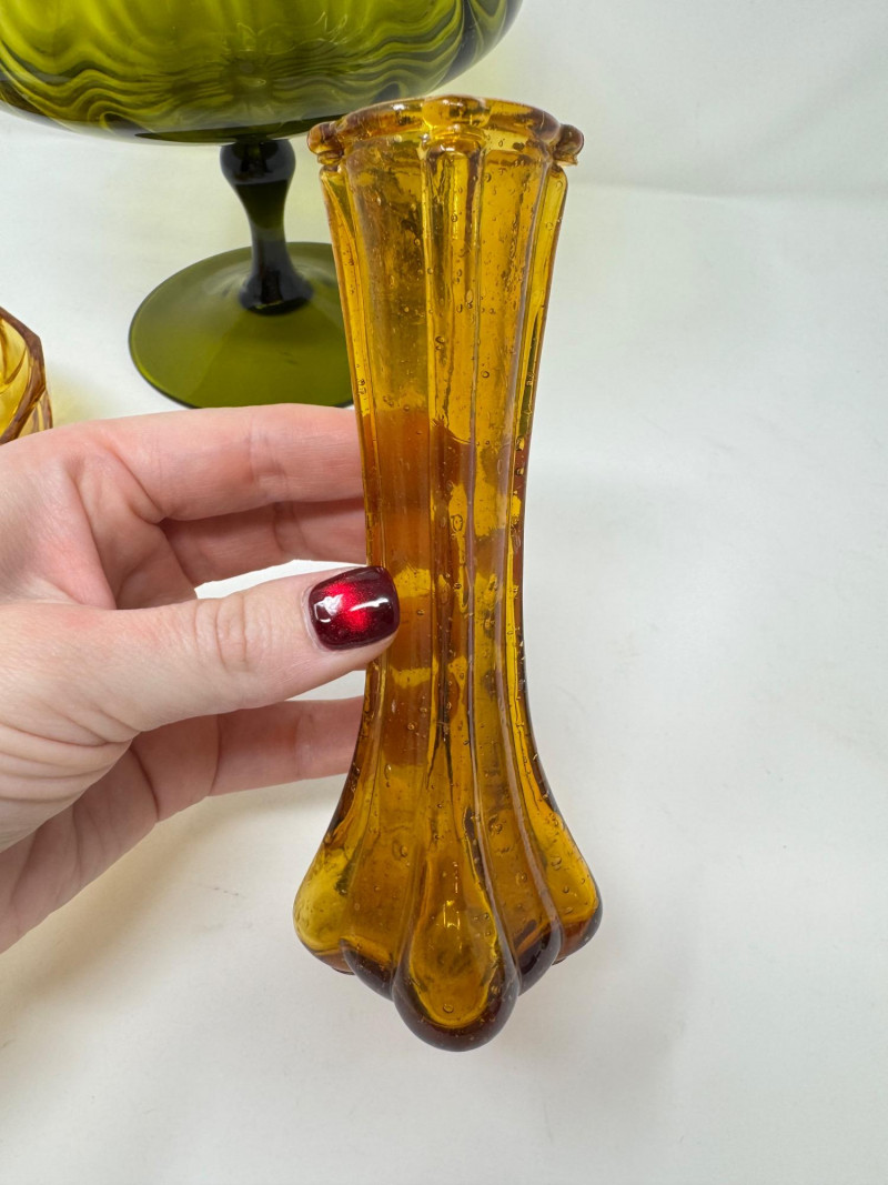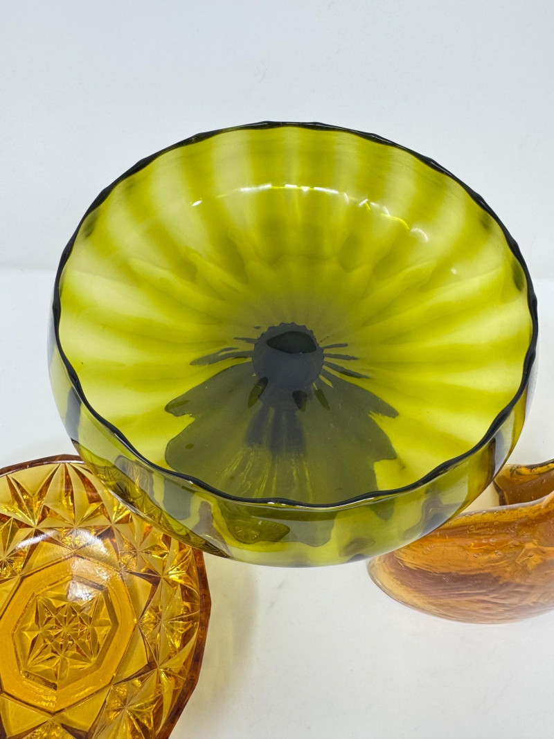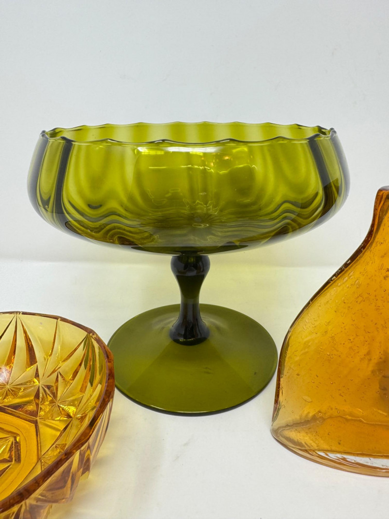 Lot # 23 - Retro Amber & Olive Glass Lot – 5 Pc Vintage Bowls & Vases
