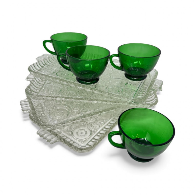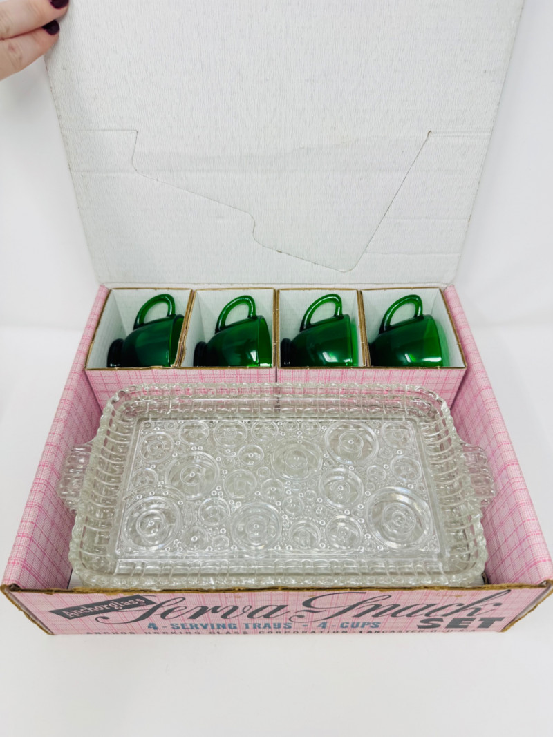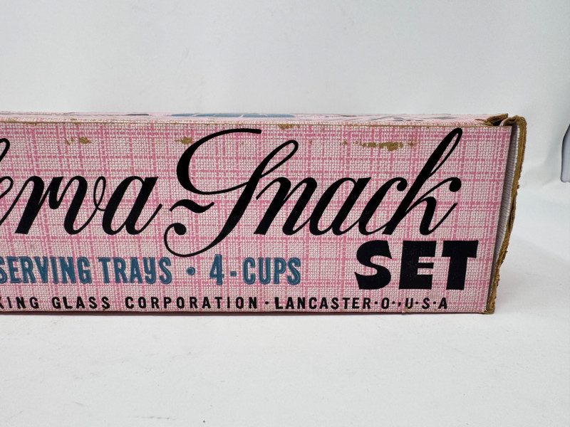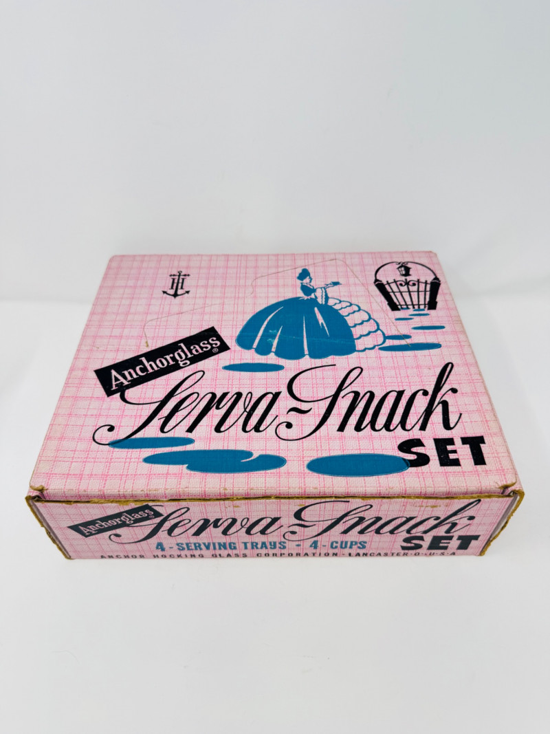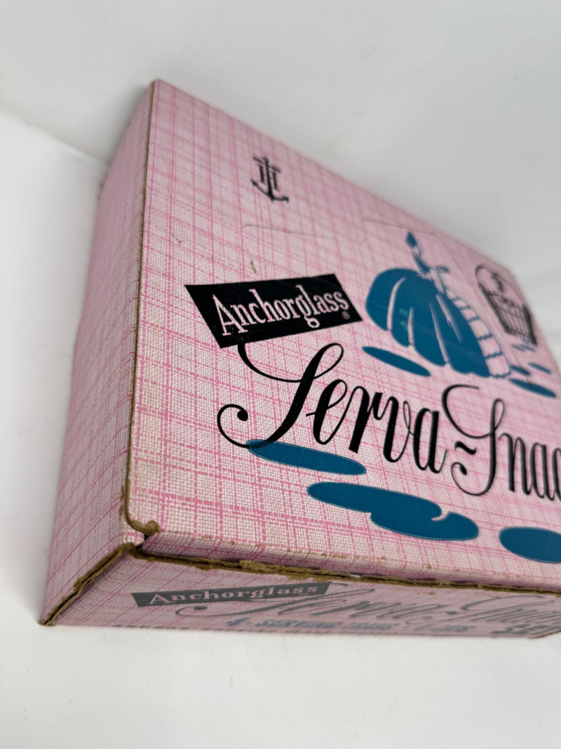 Vintage 1950s Anchor Hocking “Serva-Snack” 8-pc Set Original Box #1.