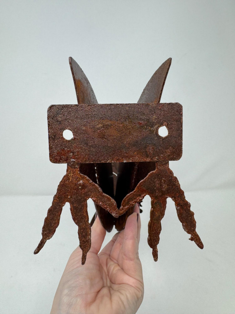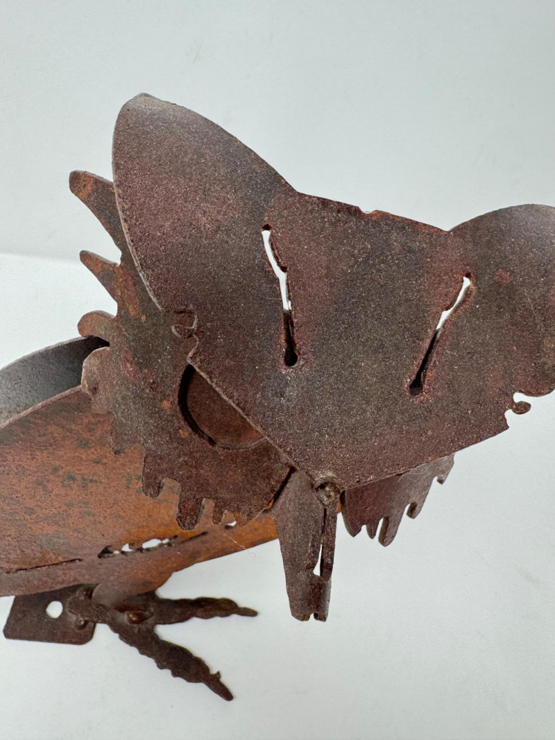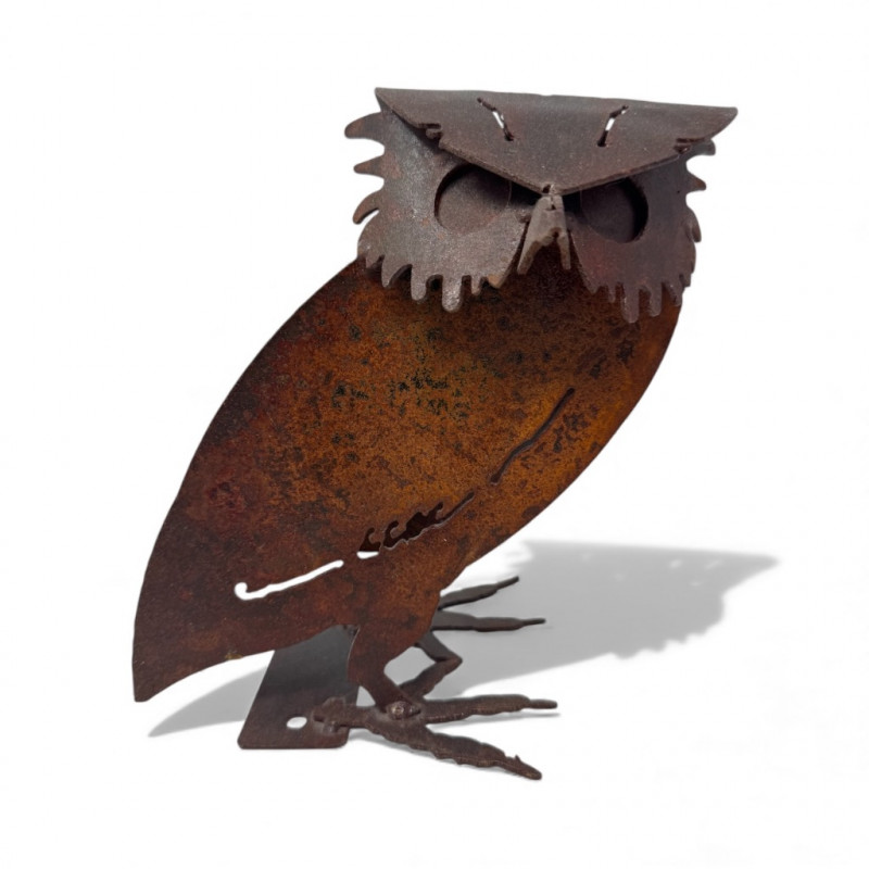 Rustic Metal Owl Sculpture – Cut Steel Art, 8” Tall.