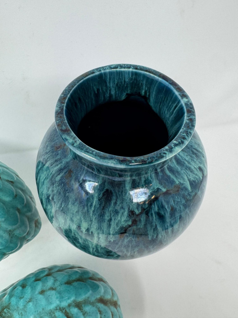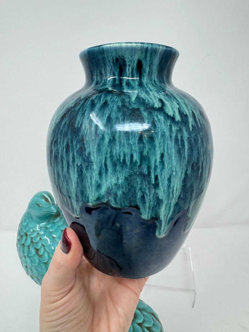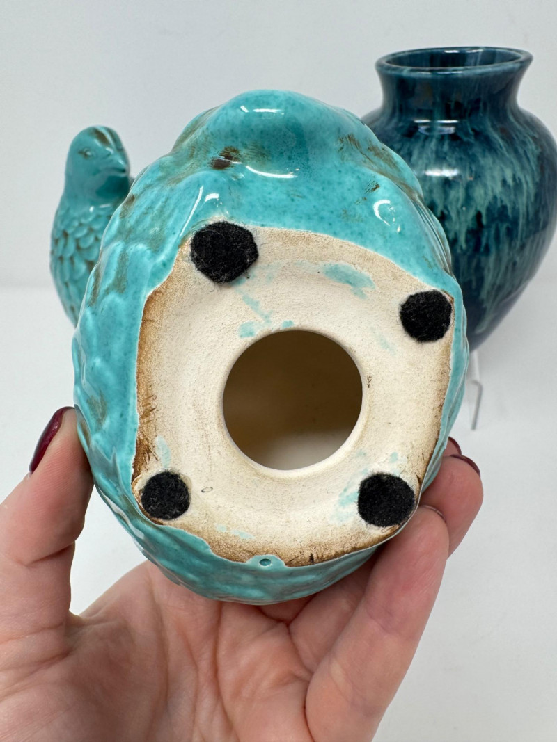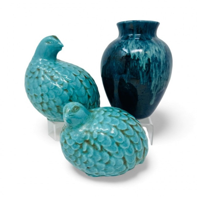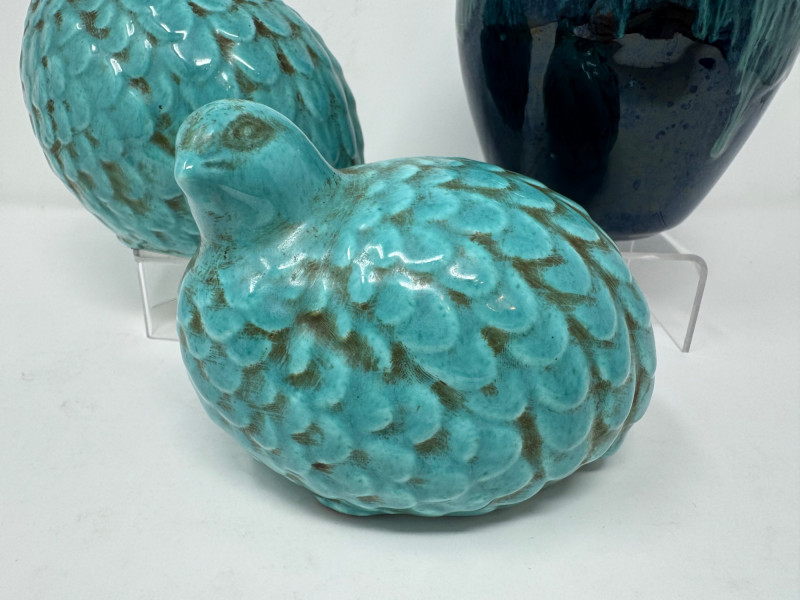 Lot # 33 - Set of 2 Vintage Quail Figures & Drip Glaze Pottery Vase