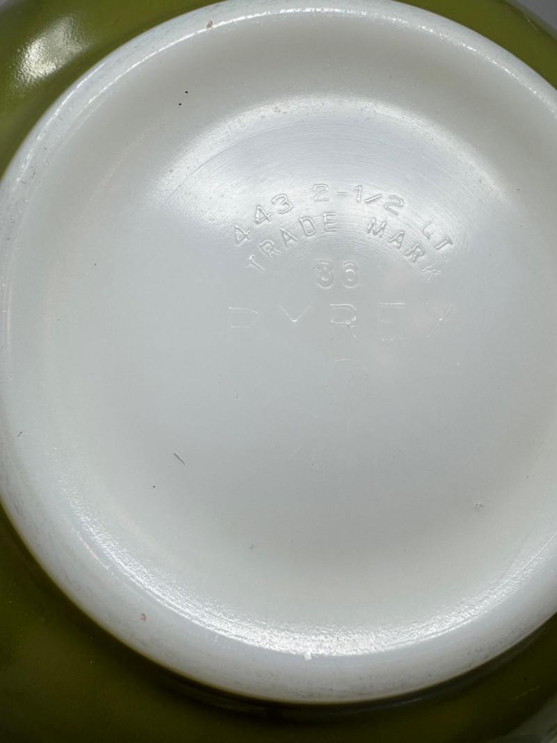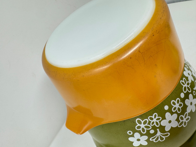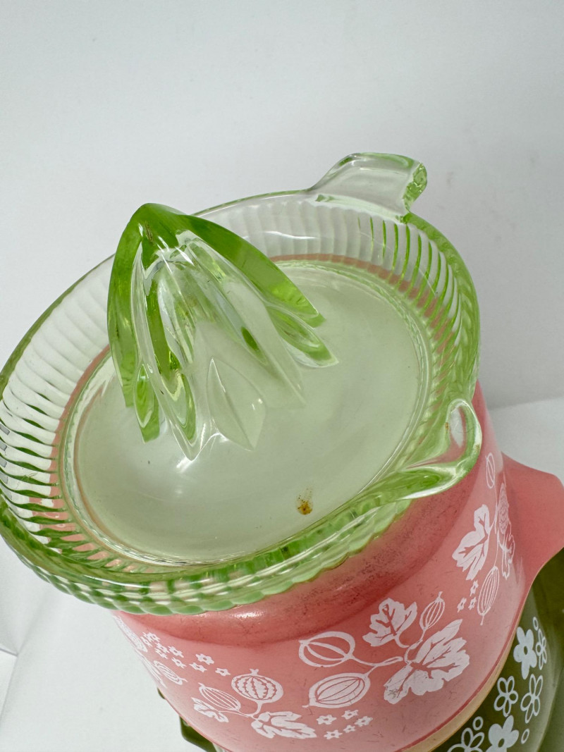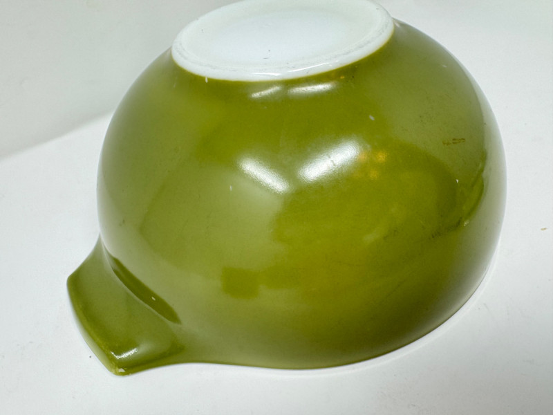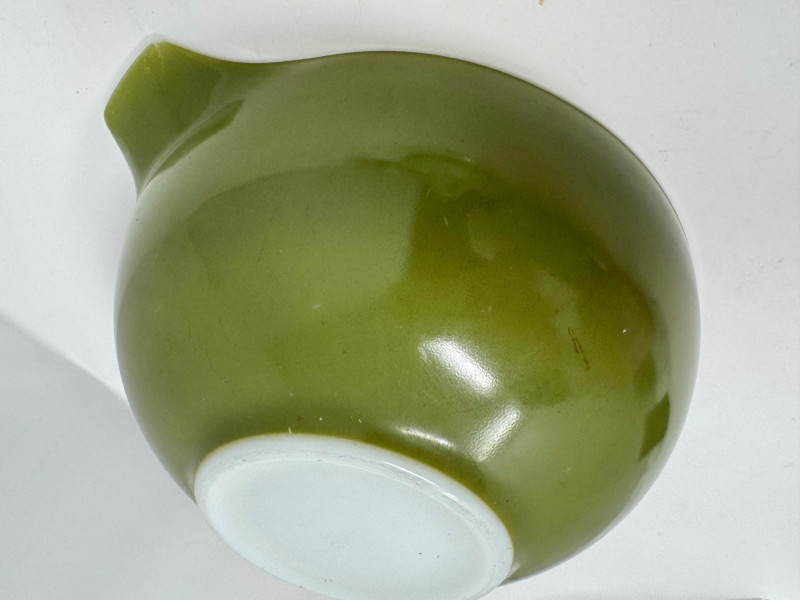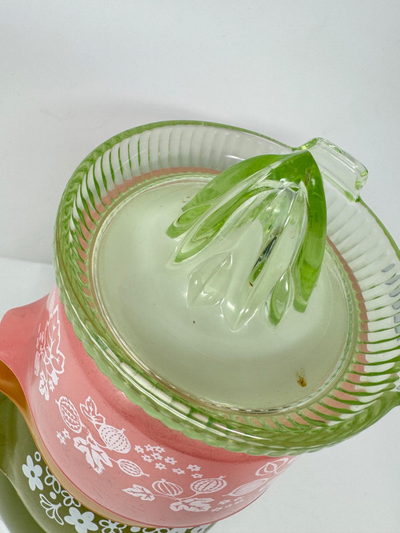 Lot # 36 - Vintage Pyrex Mixing Bowls & Green Glass Juicer – 5 Pc Lot