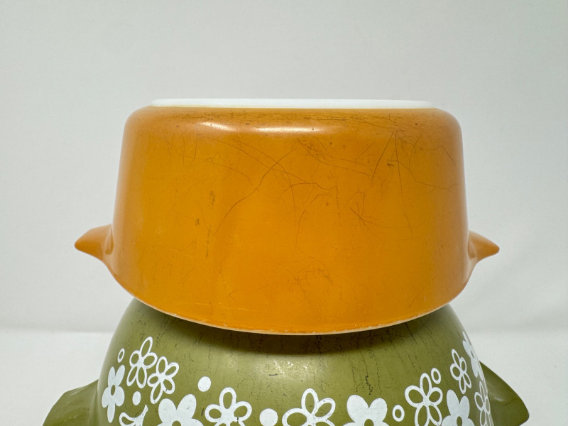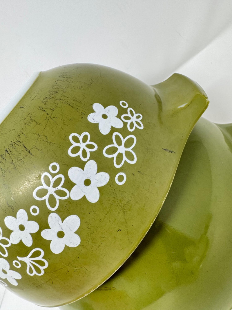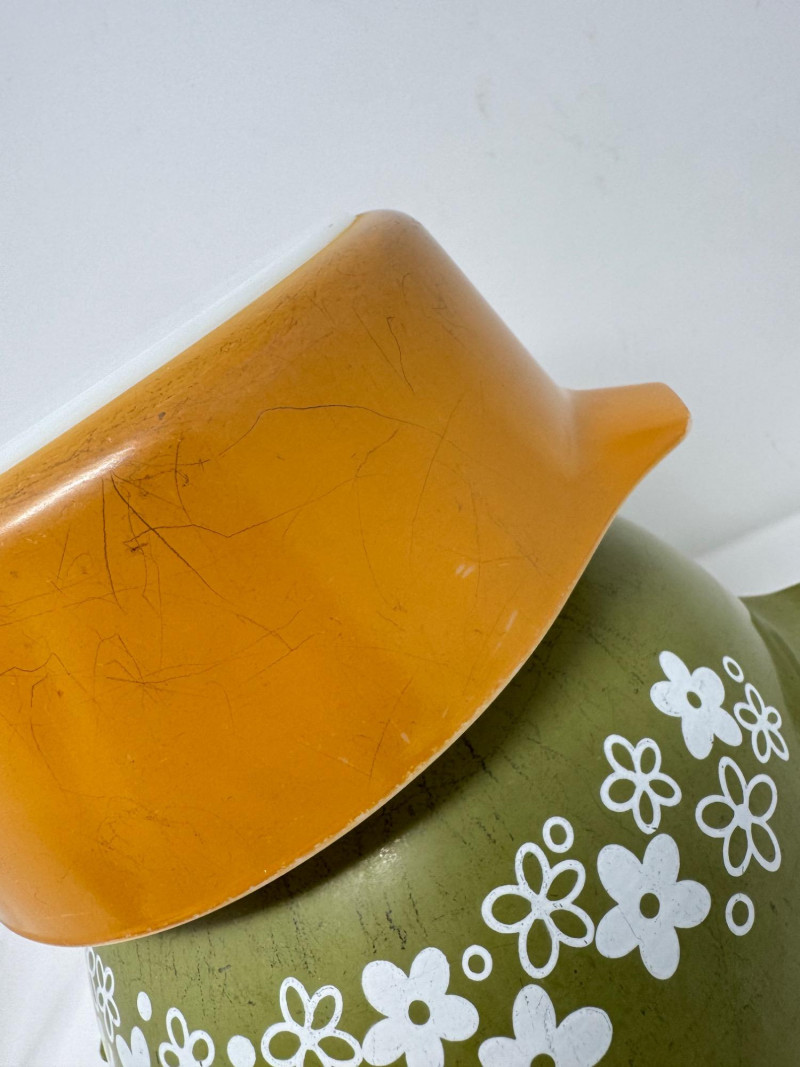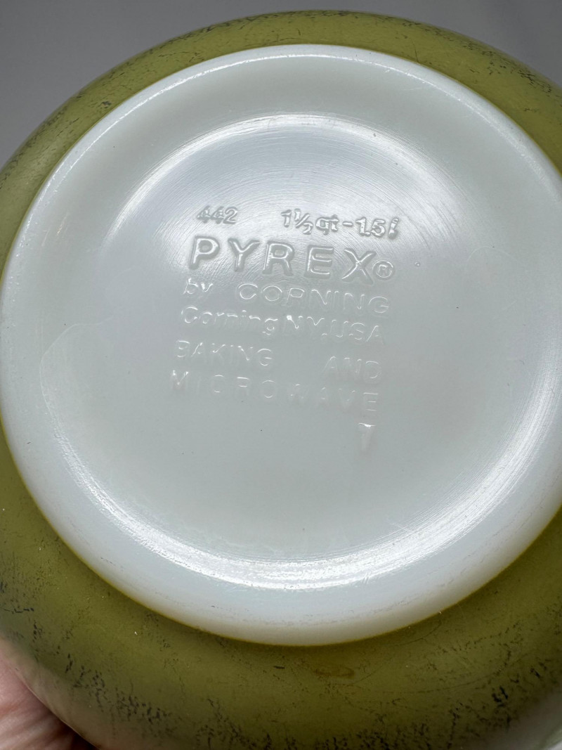 Vintage Pyrex Mixing Bowls & Green Glass Juicer – 5 Pc Lot.
