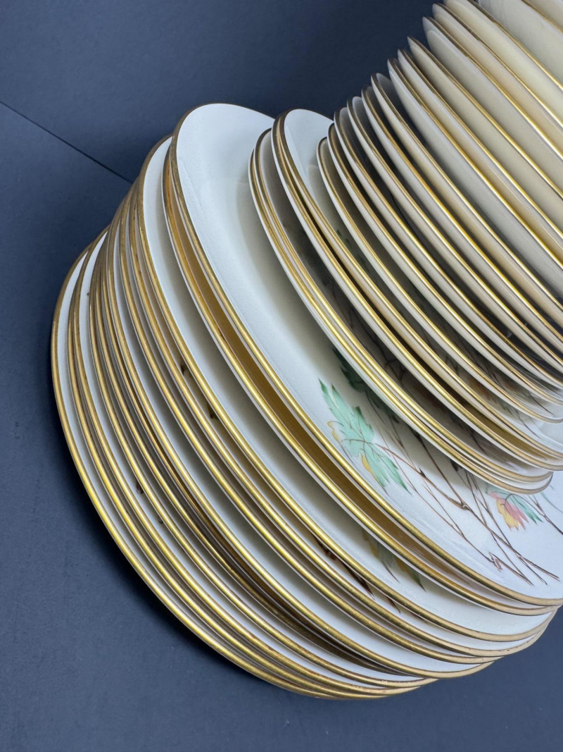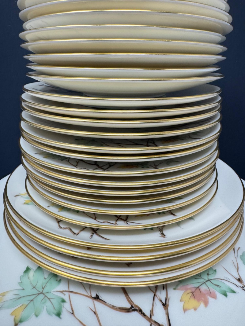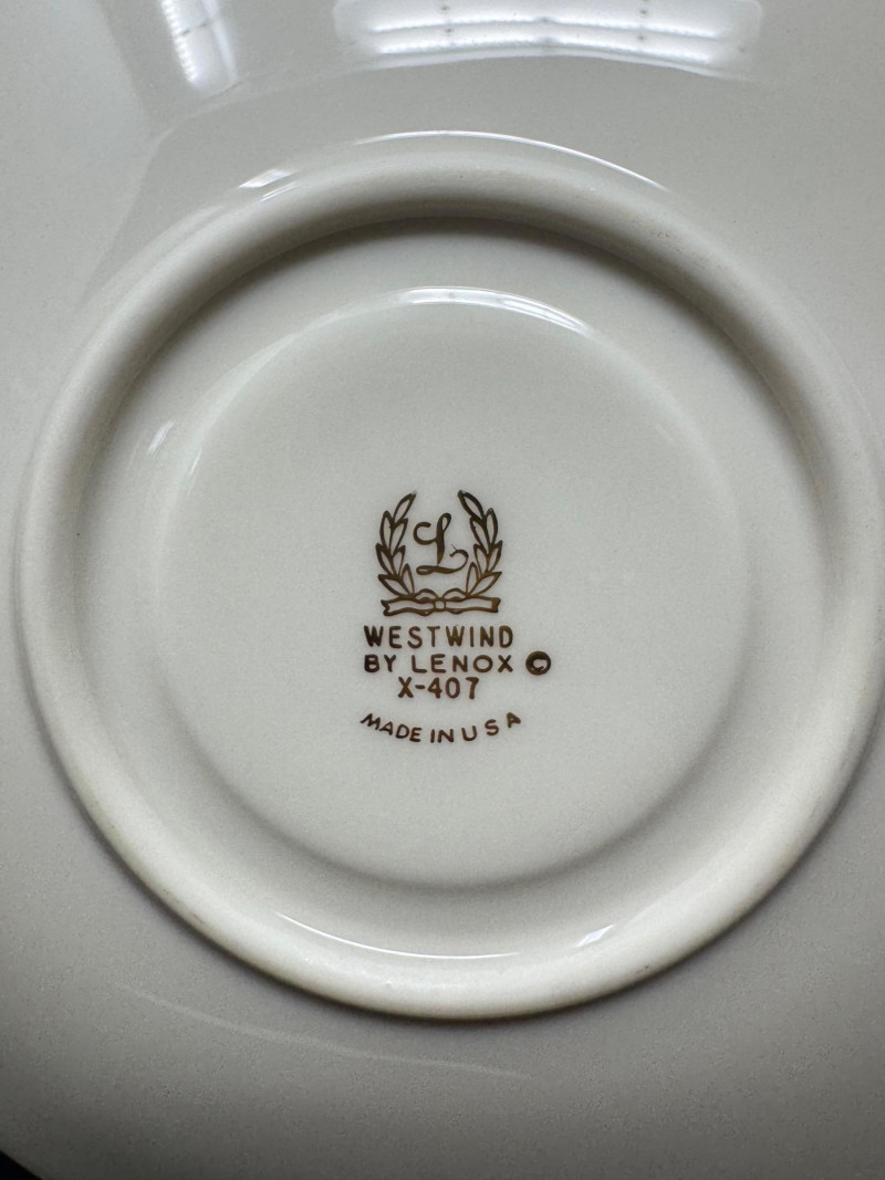 Lenox Westwind X-407 China Set – 40 Pieces, Made in USA. Total 40-piece Lenox “Westwind” fine china set, pattern X-407 Includes: 12 dinner plates 12 dessert plates 12 teacup saucers 4 small appetizer plates
