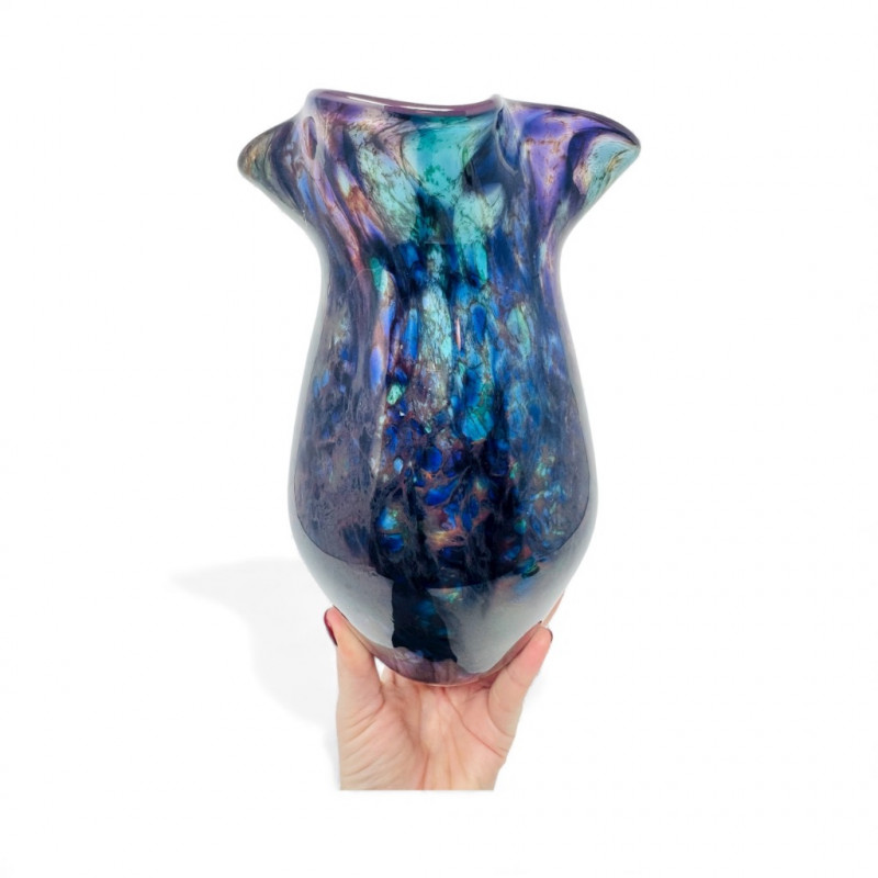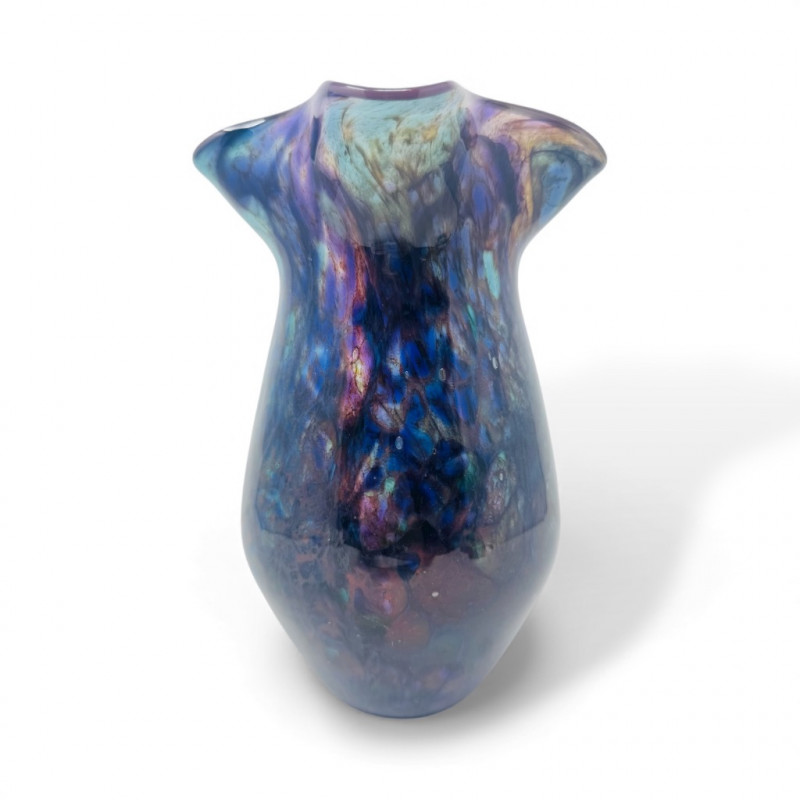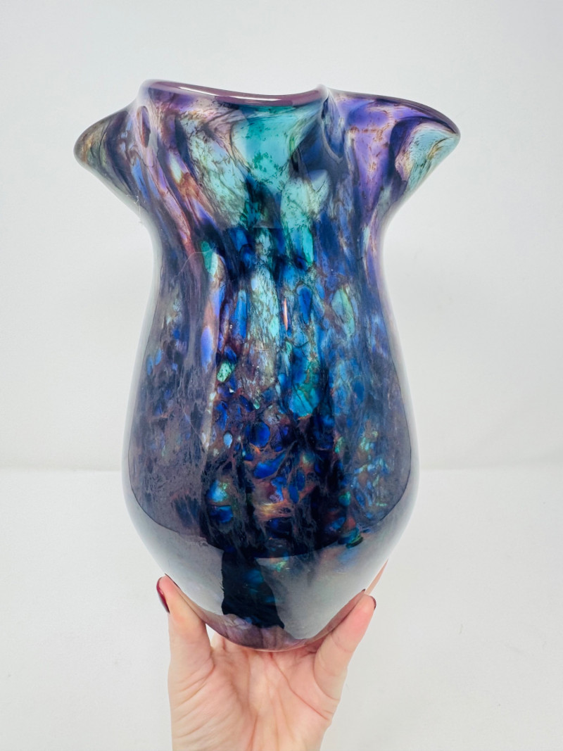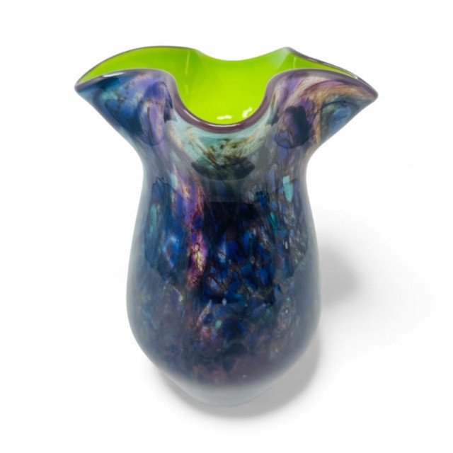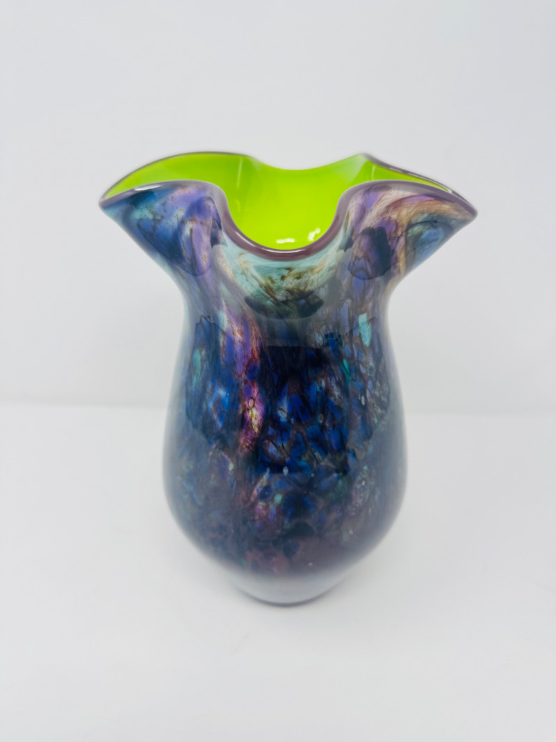Hand-Blown Iridescent Art Glass Vase w/ Lime Interior.