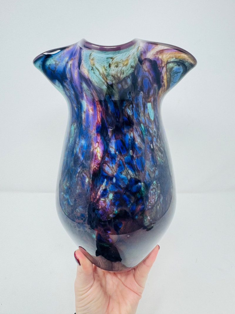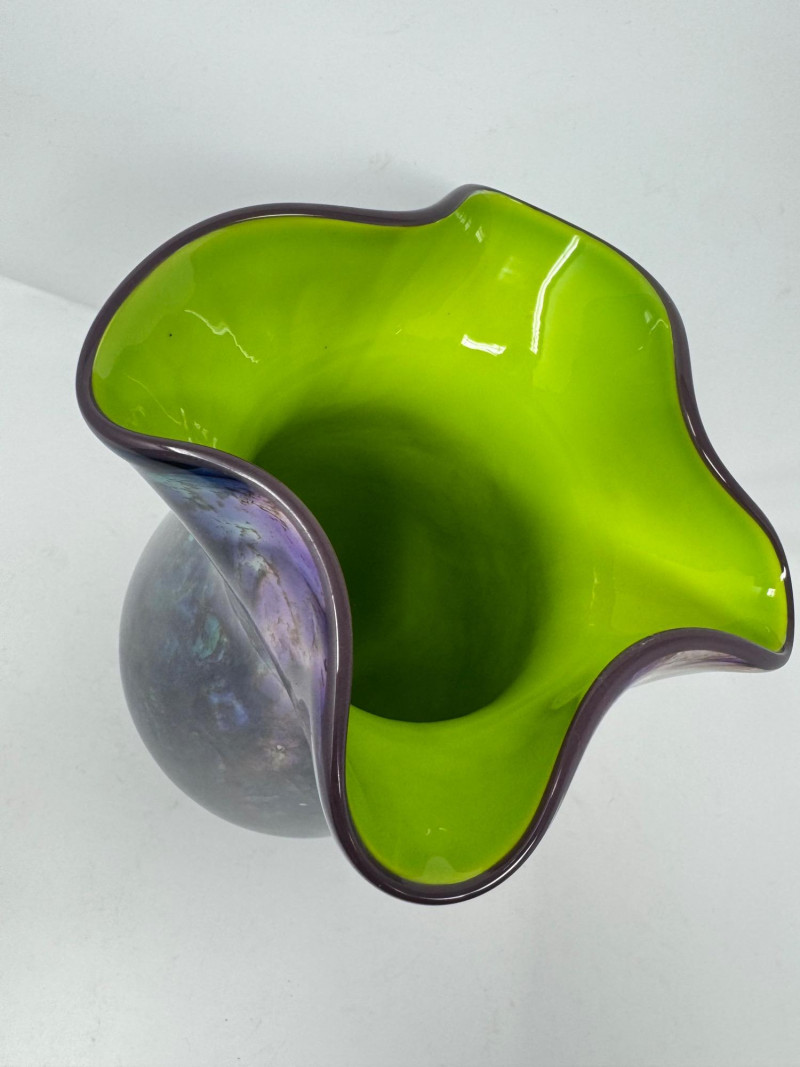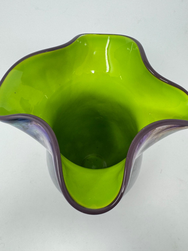 Lot # 45 - Hand-Blown Iridescent Art Glass Vase w/ Lime Interior