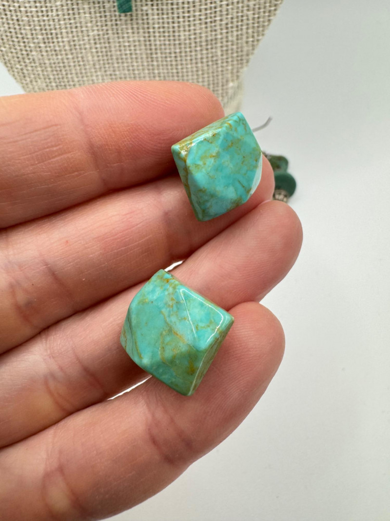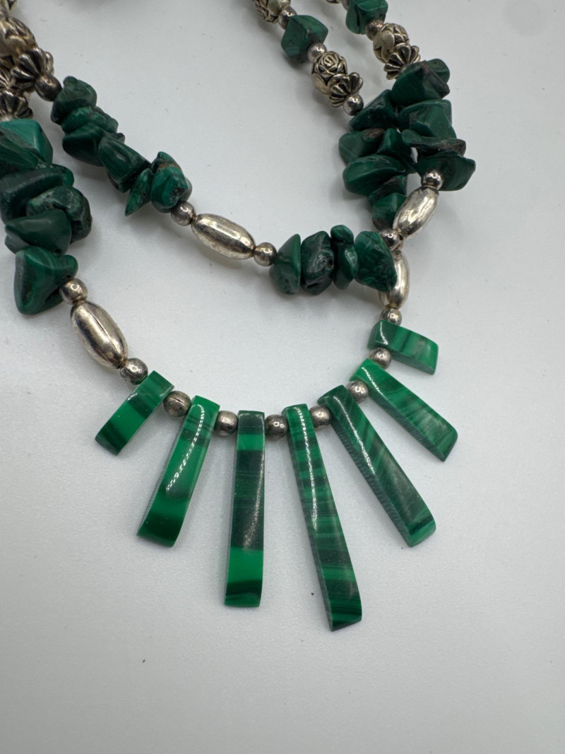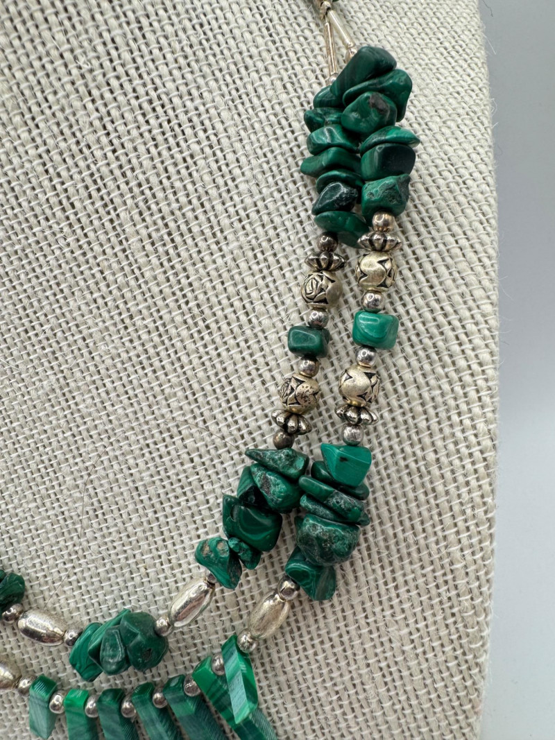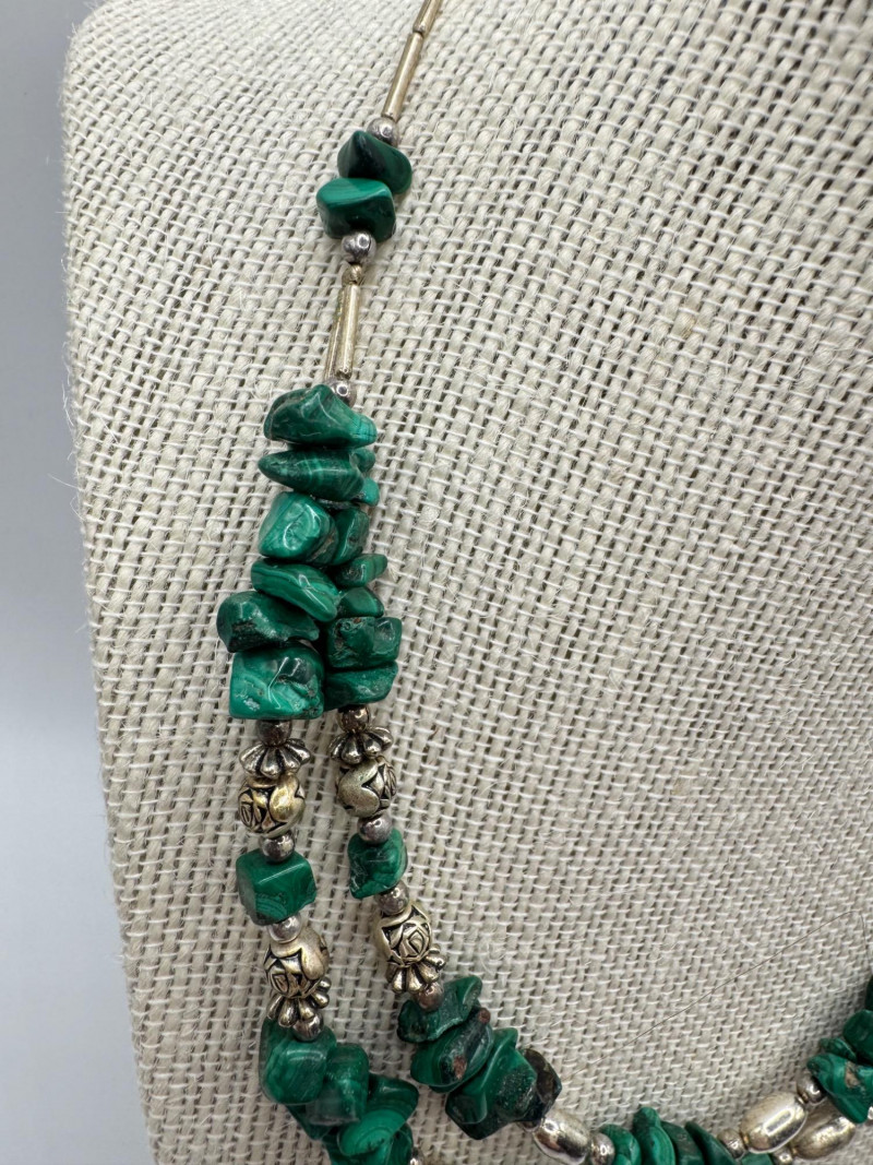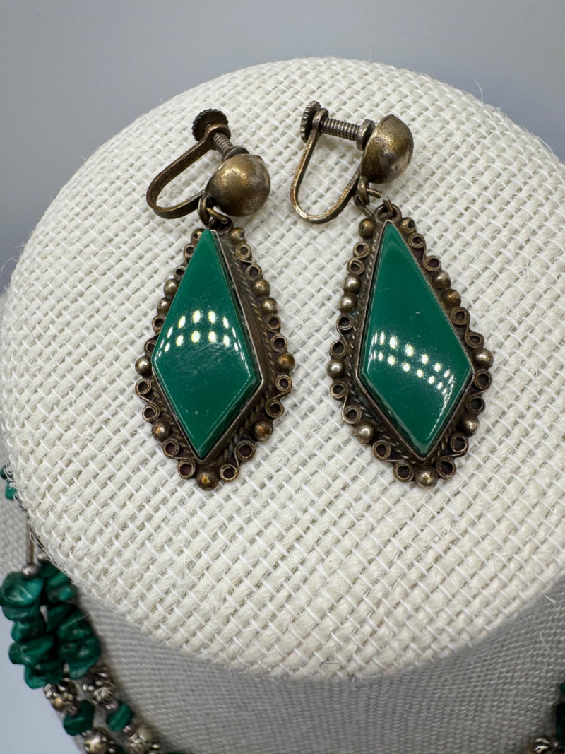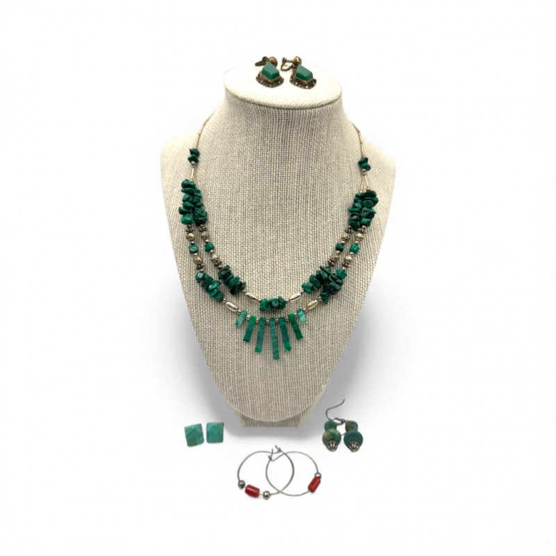 Green Lapis Necklace & Mixed Stone Earrings – Possible Silver Beads.