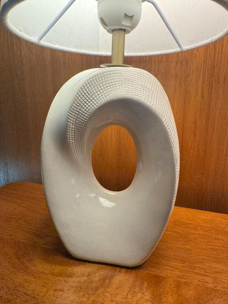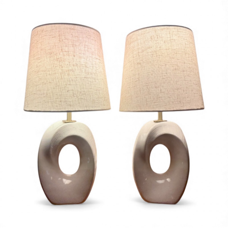 Pair of Mini Sculptural Ceramic Table Lamps – White Textured Form.