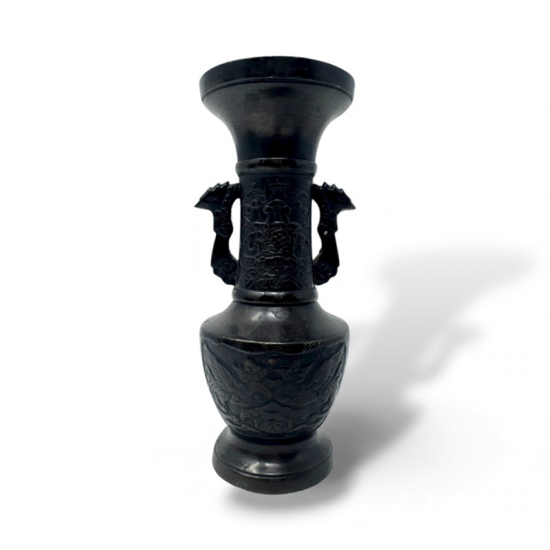 Ornate Metal Vase w/ Dragon Handles – Heavy Cast Design.
