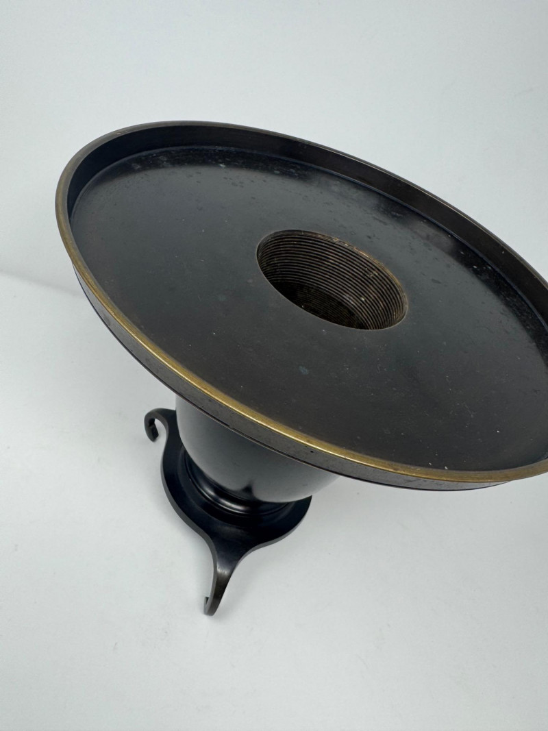 Pair of Metal Ikebana Usubata Style Vases – Bird & Sun Design.