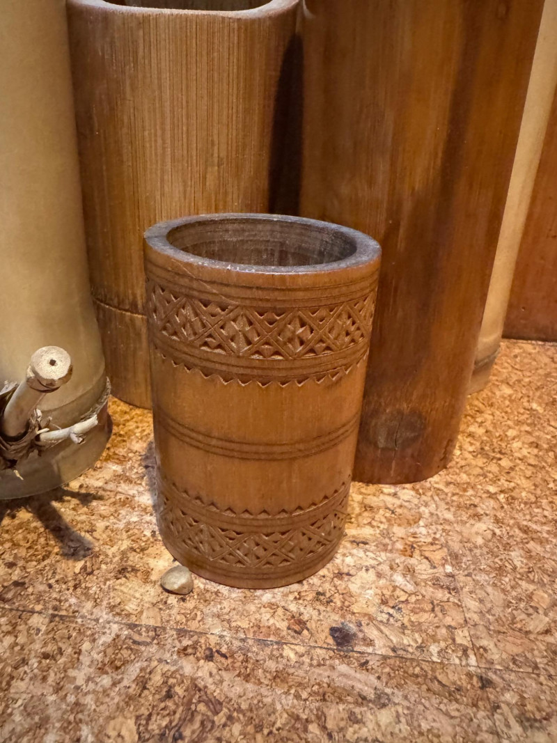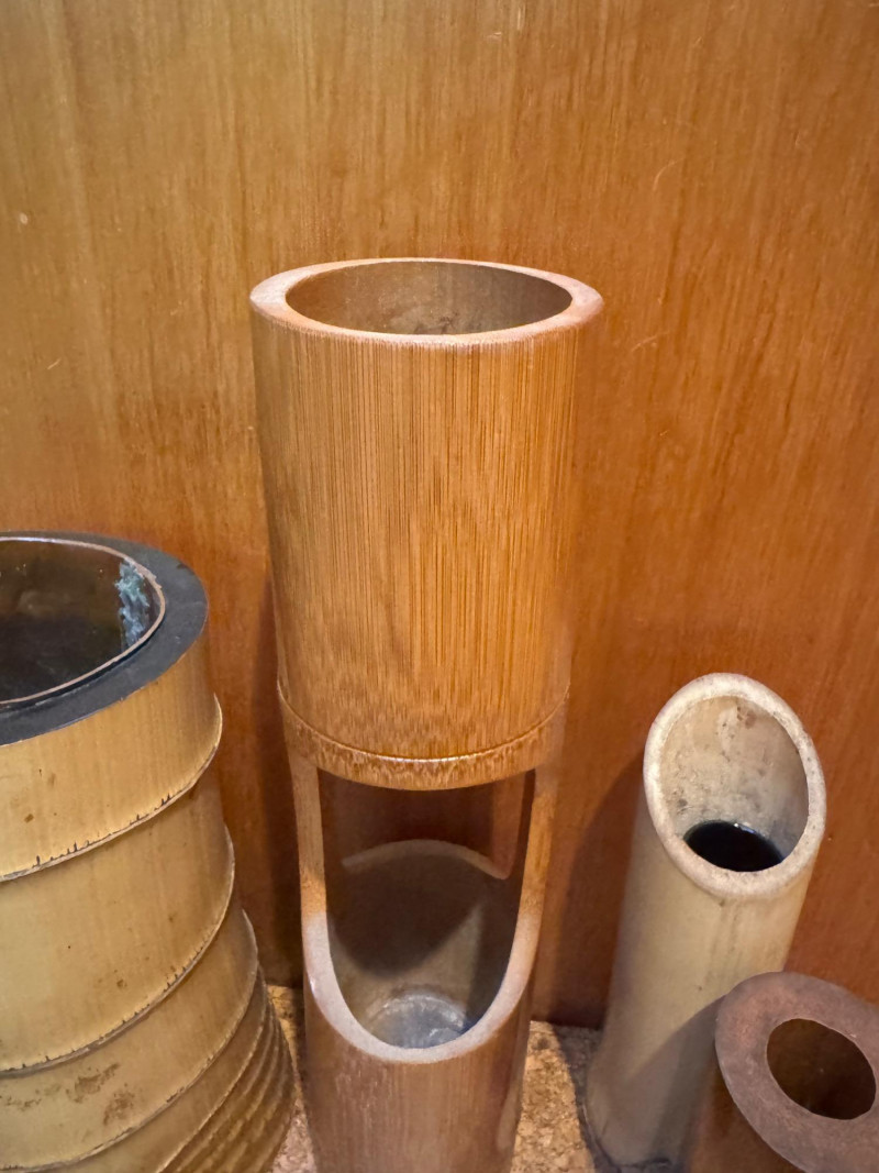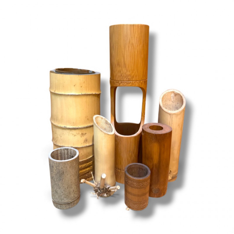 Lot # 57 - 7 Handcrafted Bamboo Vases – Natural Grain, Carved & Hollow Designs